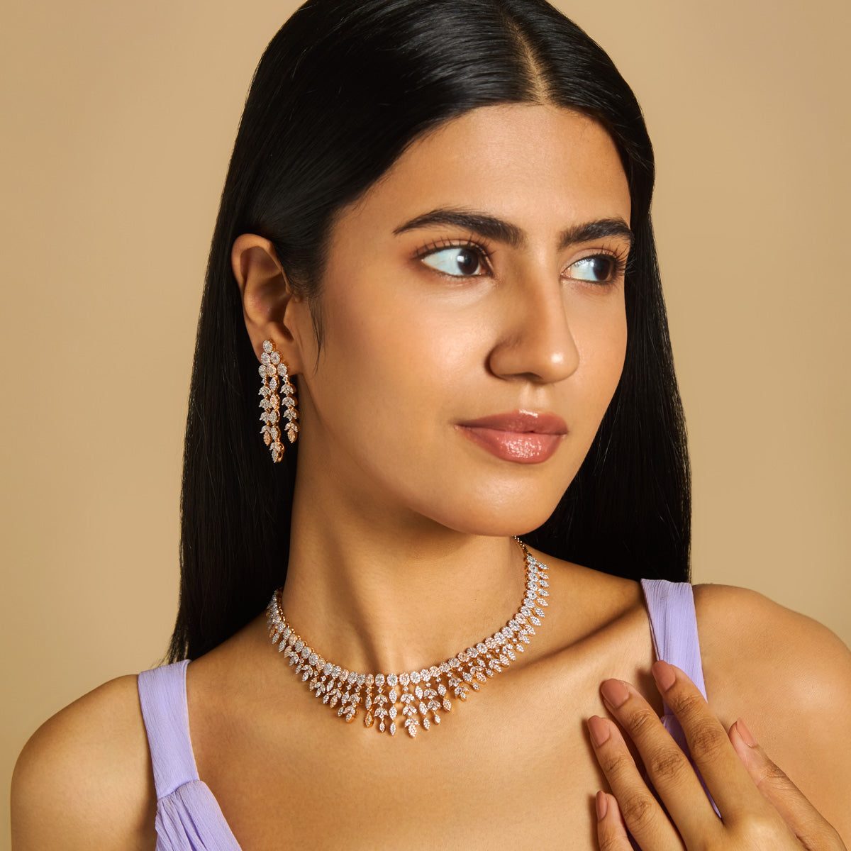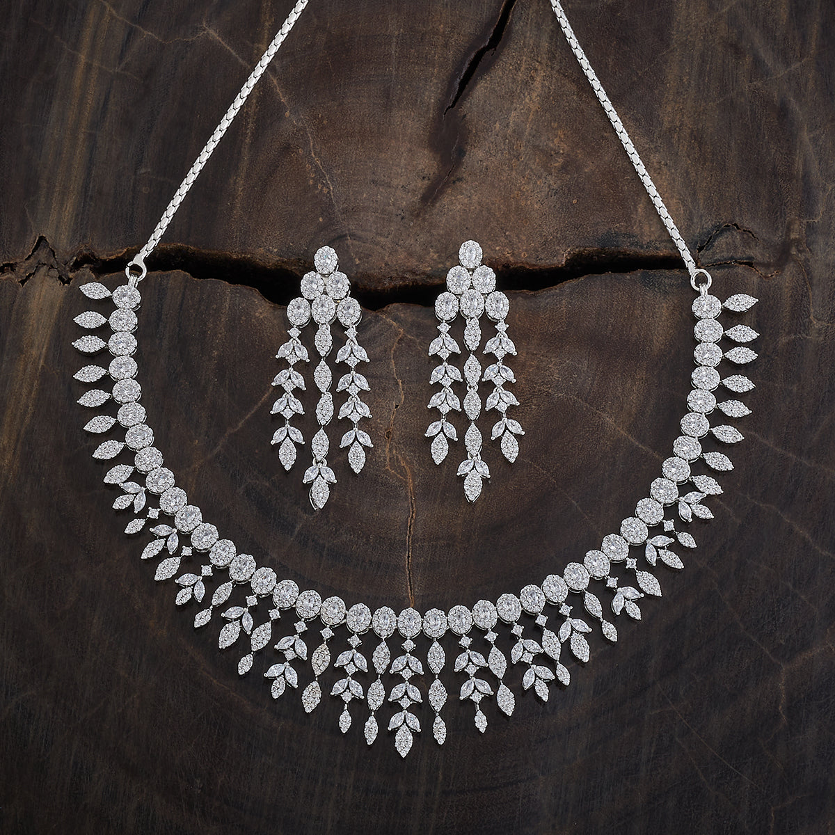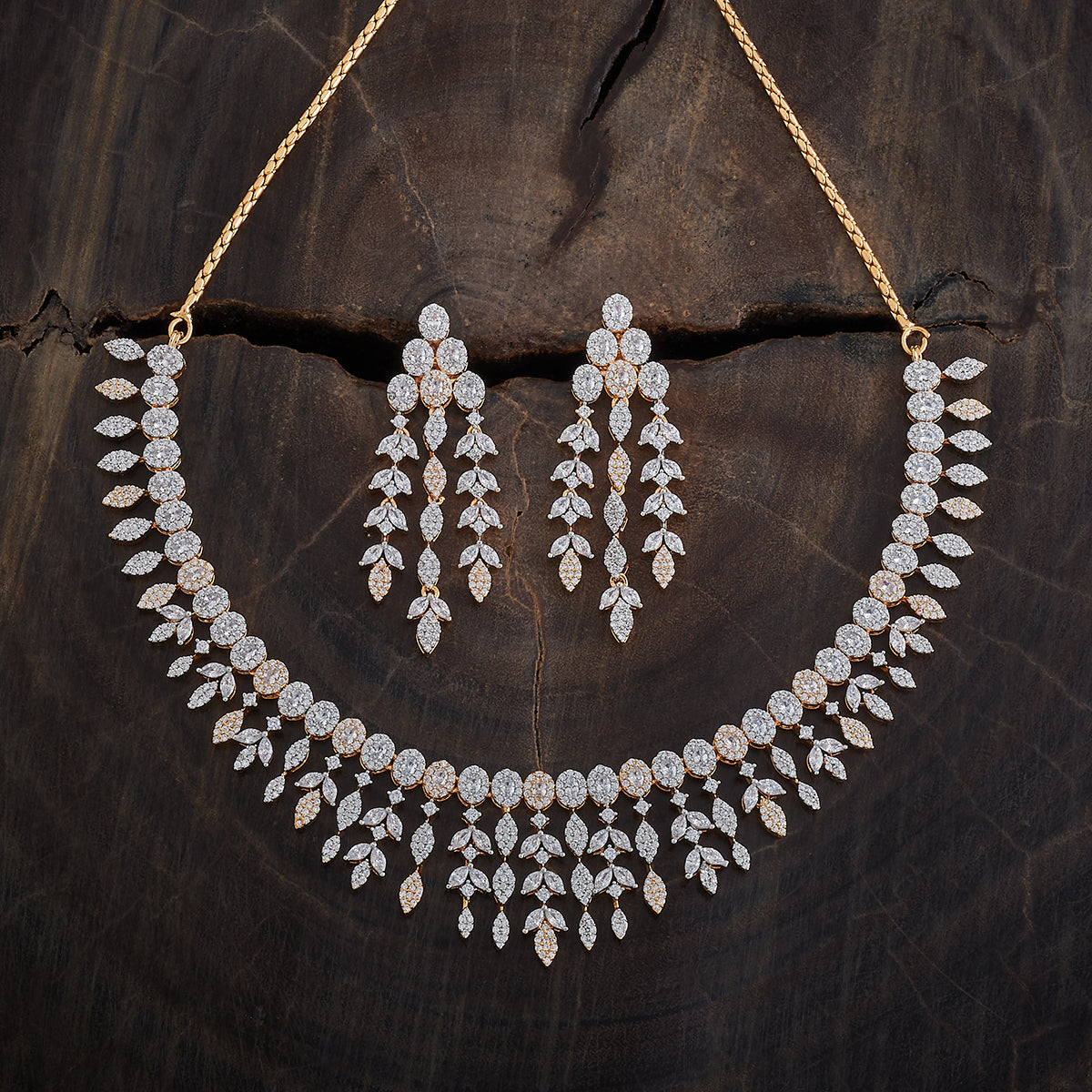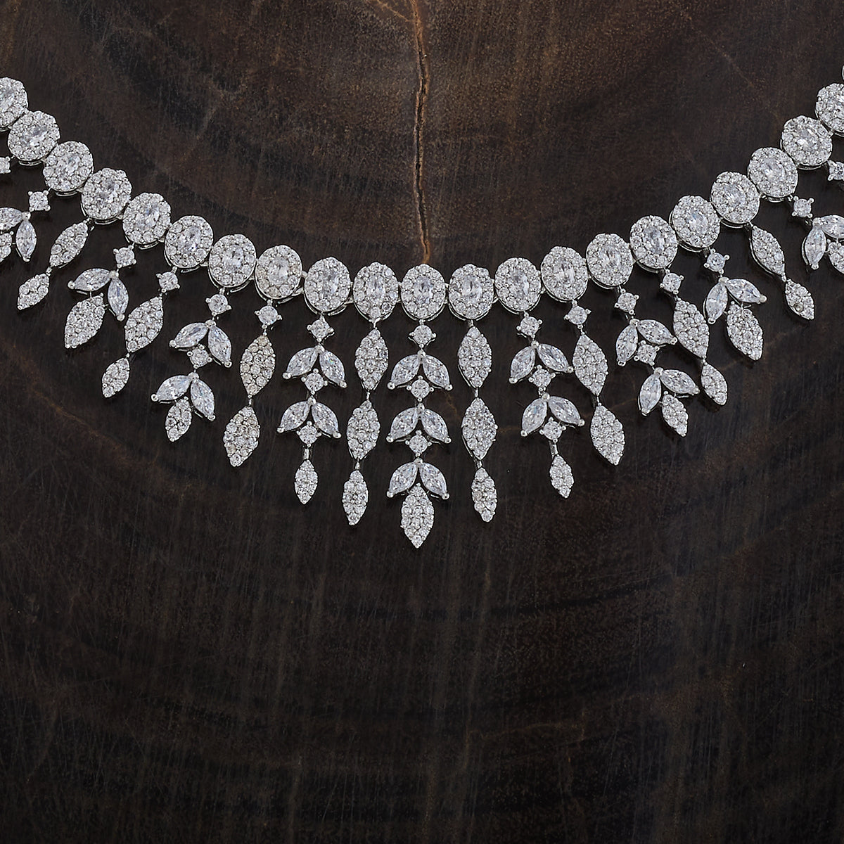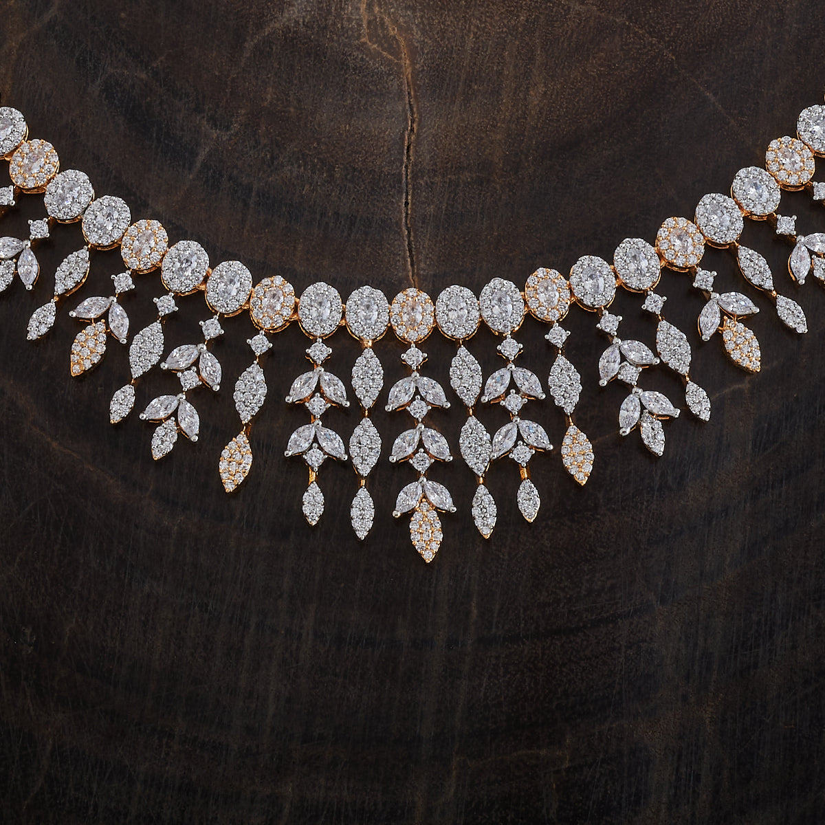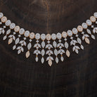 This zircon necklace with white stone colour is perfect for adding a touch of sparkle to any occasion! Pair it with a glamorous evening gown or a chic saree to make a statement. It also shines beautifully with classic black or jewel tones like deep blue or emerald green. Keep your hairstyle sleek to highlight the necklace's dazzling charm.