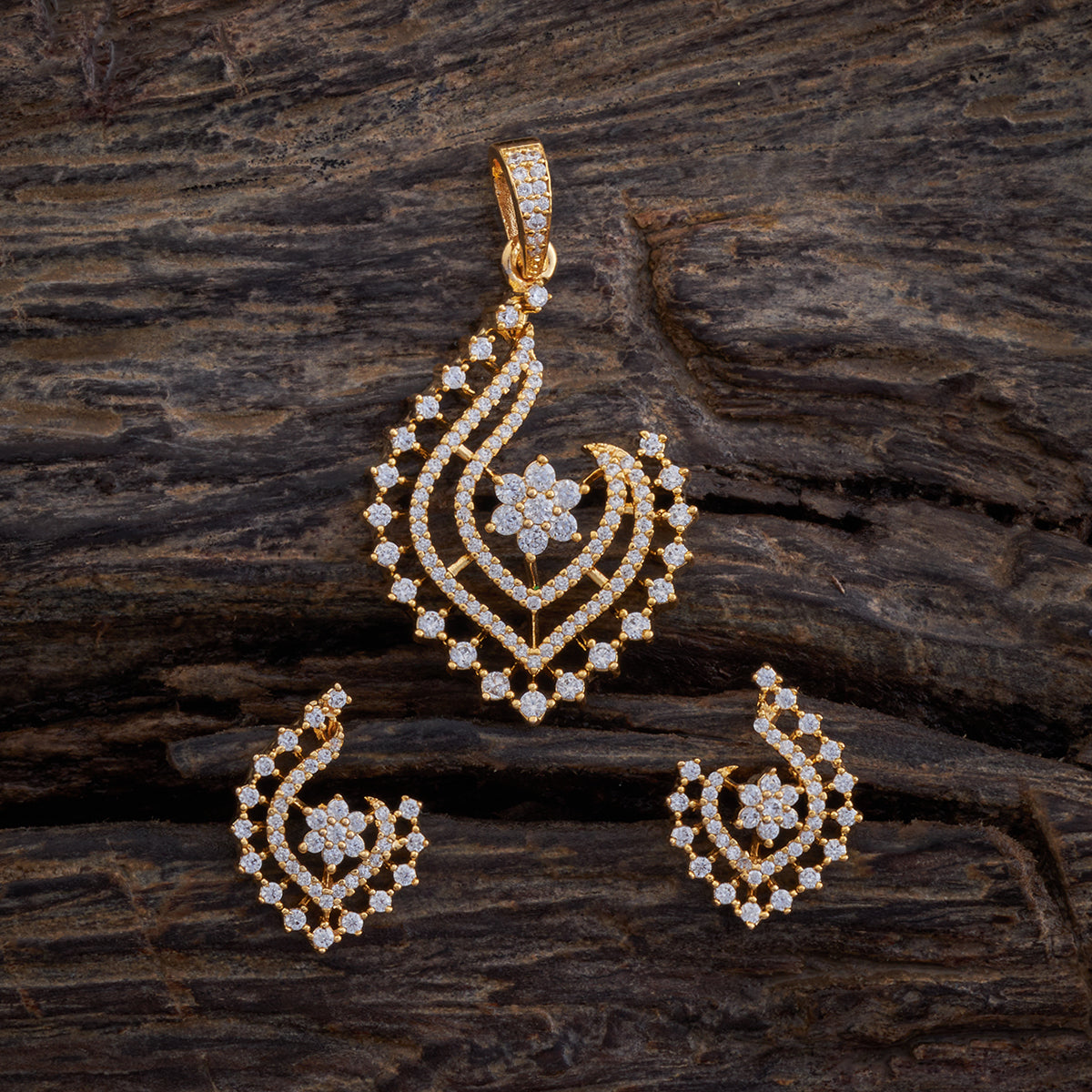 Trendy Gold Polished White Zircon Pendant Set