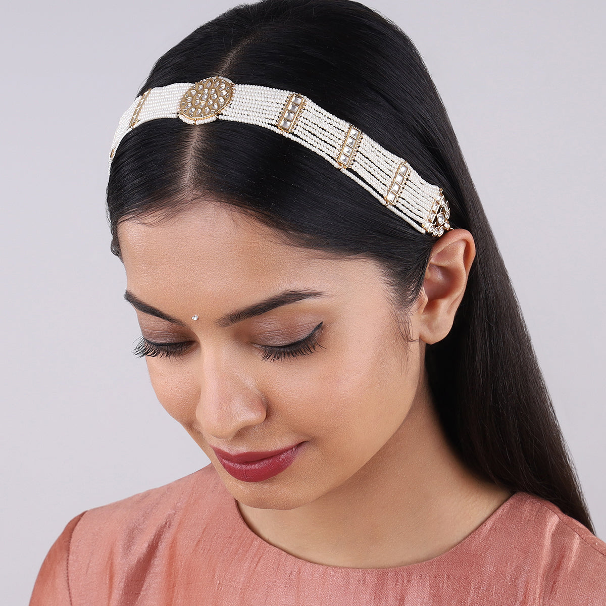 Wear this beautiful white kundan stone tikka on your special day. Just wear it on a simple hairstyle, and you will see how the look changes. The round-shaped kundan tikka is in fashion now. This heavy kundan tikka will glam up your look and makes you confident. Grab one for you today. It’s time to accessorize with our charming Maang Tikka this bridal season. Charm your wedding style with this finely designed maang tikka to add the final touches for a quintessential bridal style.