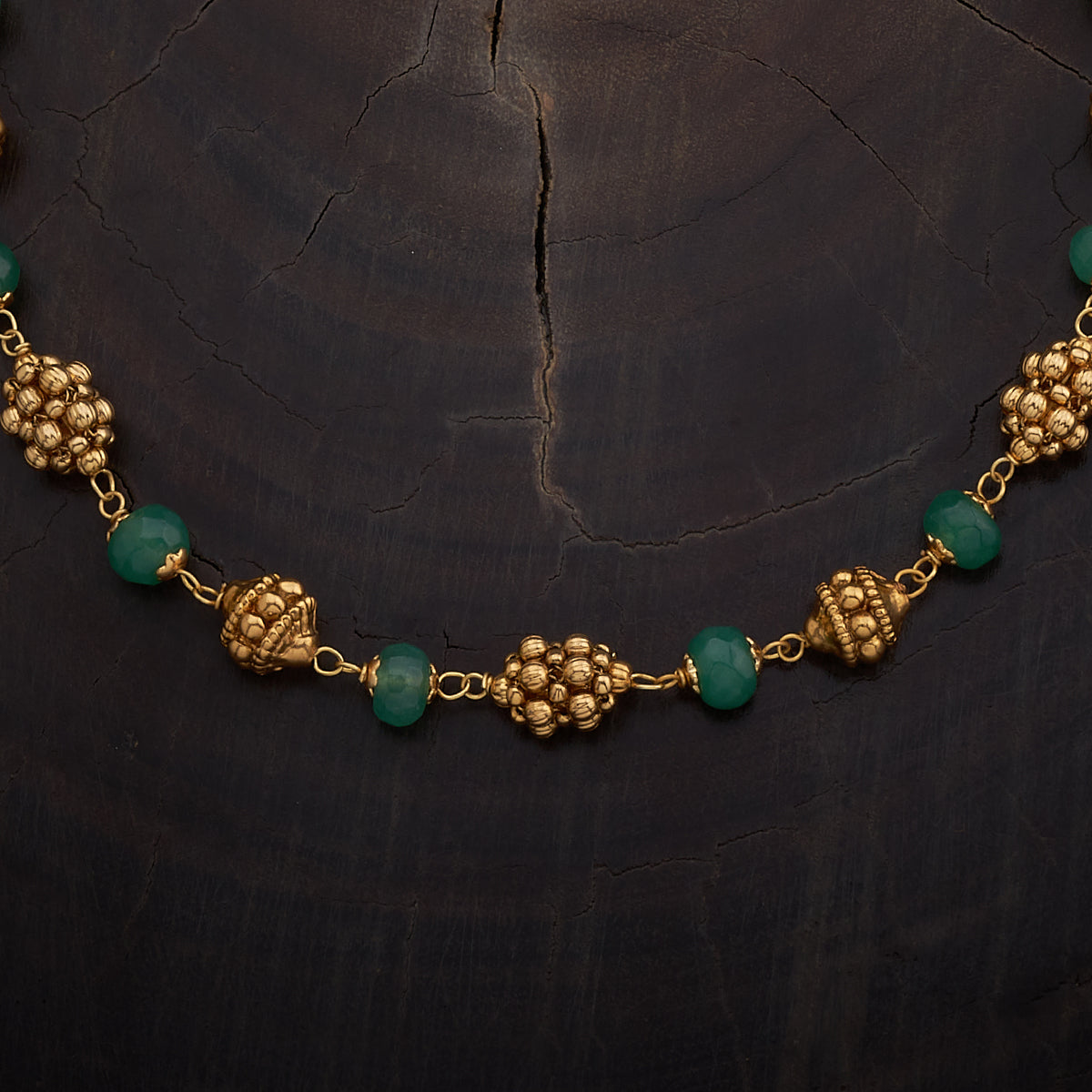 Our gorgeous antique chain to add a touch of elegance to your ensemble. It is exquisitely detailed and has a classic elegance about it. Adorned with mesmerising stones, it adds a regal touch to any attire. It looks stunning in radiant polish and goes well with traditional attire. Increase your style factor with ease.