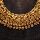 Kushal’s antique necklace features a stunning choker necklace style in a classic gold polish. The necklace, crafted from a lightweight copper alloy for comfortable wear, adjusts with a convenient thread closure. Dazzling jhumka earrings with secure push-back closures complete the set. Infused with a vintage charm, this set enhances your everyday charm and adds a touch of sophistication to any festive wear.