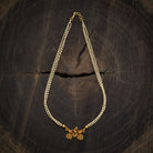 Spice up your Indo-Western look with our antique necklace from Kushal's Antique Jewellery Collection. This short necklace features white beads, ruby synthetic stones, and gold polish, with a charming small temple pendant. Pair it with your modern fusion outfit for a dash of tradition. Wear it and watch your style go from fab to fabulous!