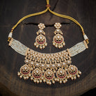If you are tired of wearing the same type of necklace, here is our unique kundan necklace, a captivating jewellery piece that steals the spotlight. This necklace is made of kundan stones, adding a touch of glitter to your neckline. This necklace comes with 3 colour combinations that can match any dress.