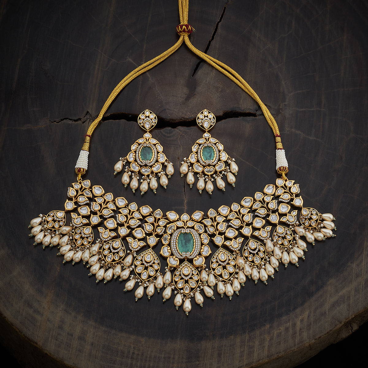 For any party or occasion you wish to attend, this Kushal's fashion jewellery kundan necklace set can be your stylish and unique statement piece. This is your chance to look stunning in this necklace set which comes in mesmerising colour options. If you wear this with any gorgeous dress, you will look amazing at any party.