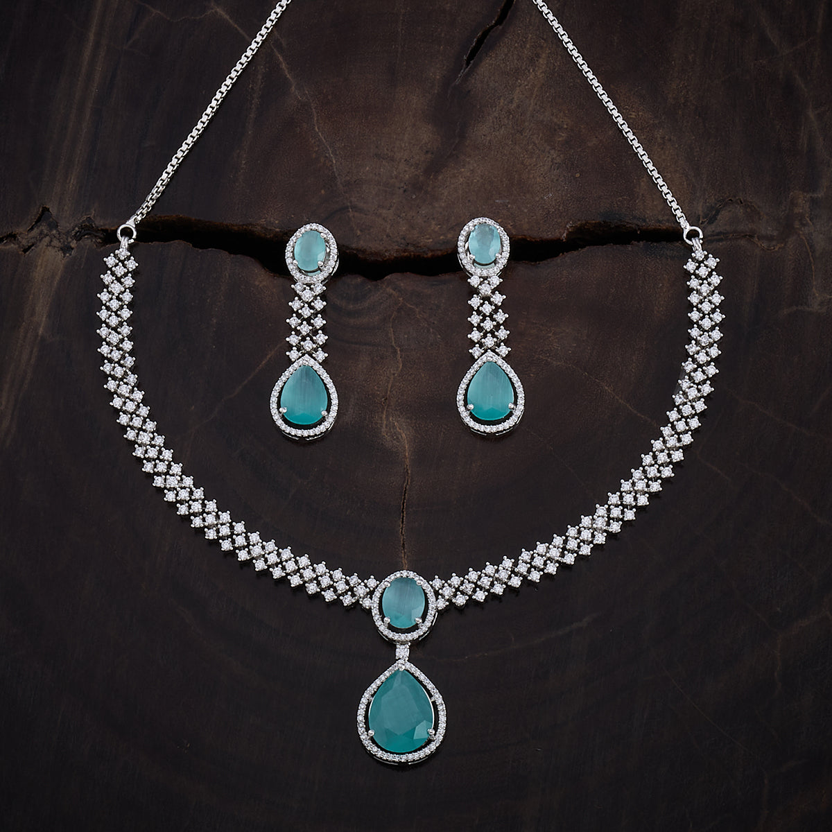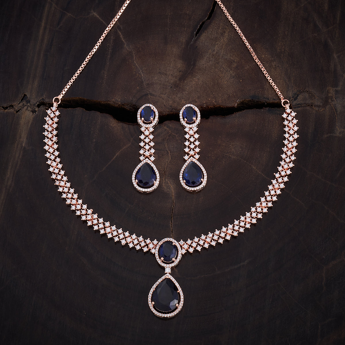 Relish the beauty of a fine zircon necklace from Kushal’s collection. We employ skilled craftsmen to curate these intricate designs and carve the pattern on top-quality copper alloy. You don’t have to worry about the quality with us. Romp up your fashion game with this neckpiece with equally beautiful earrings.