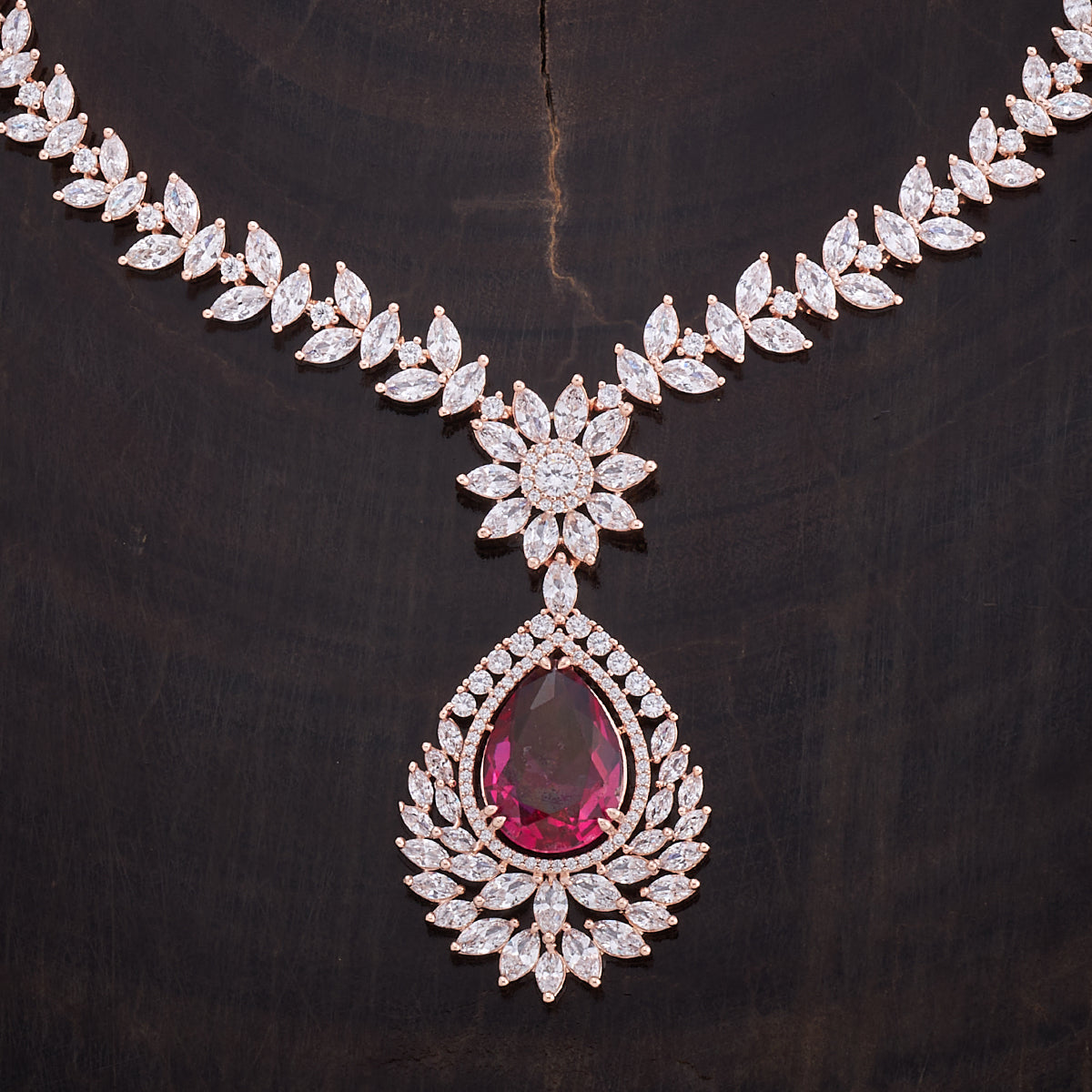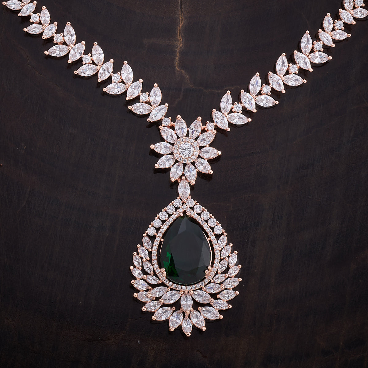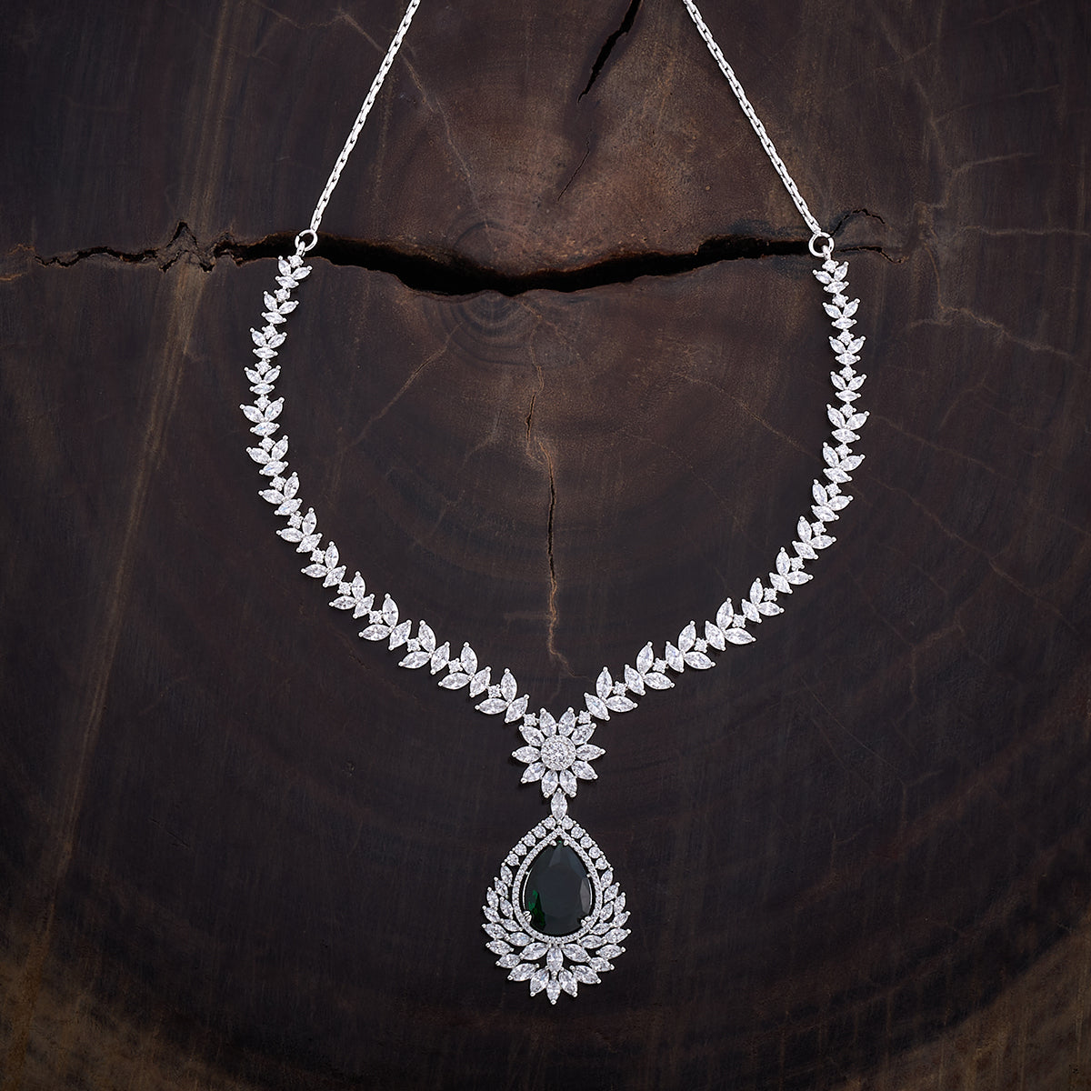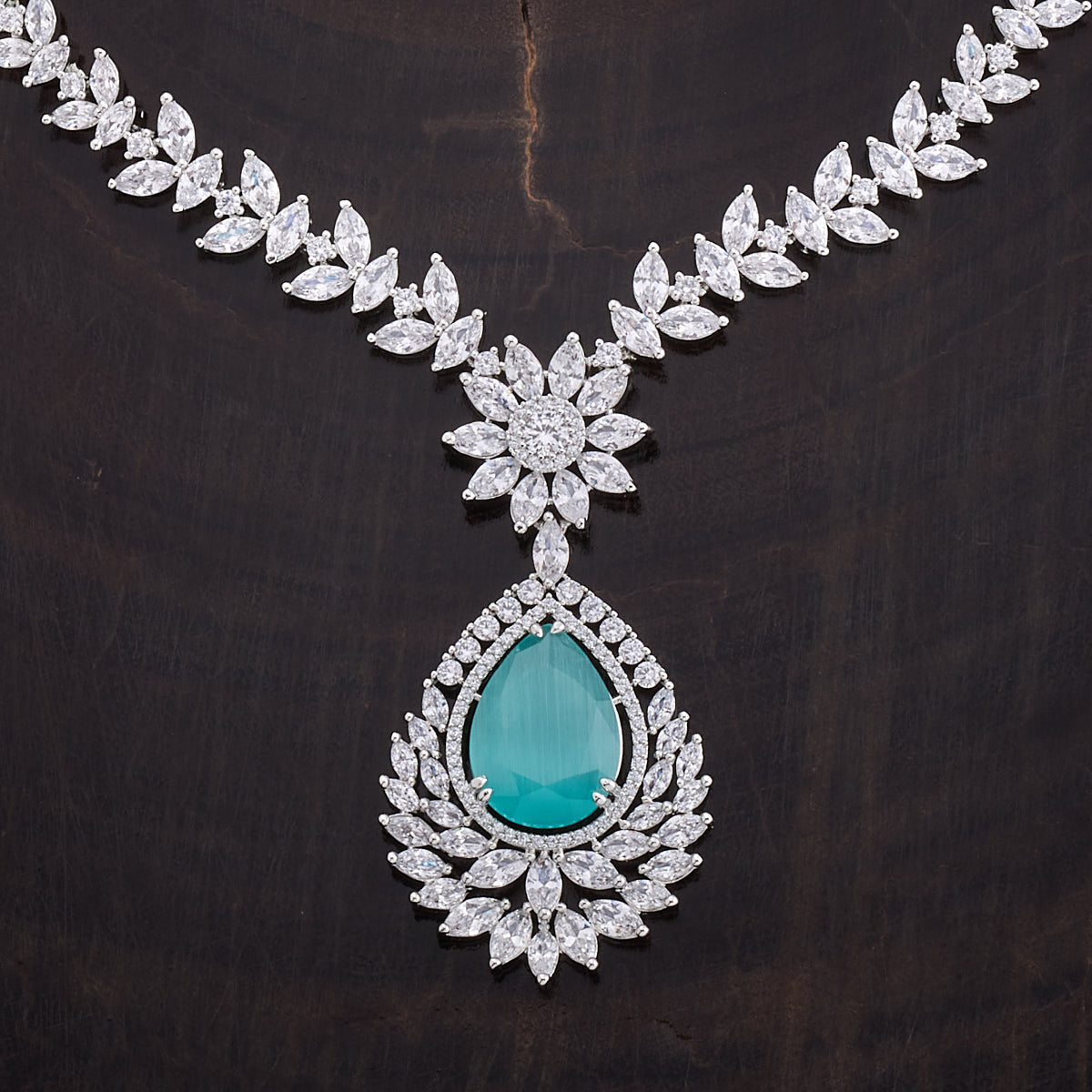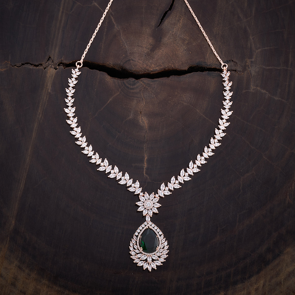 Kushal's Fashion Jewellery Flower Motif Zircon Necklace