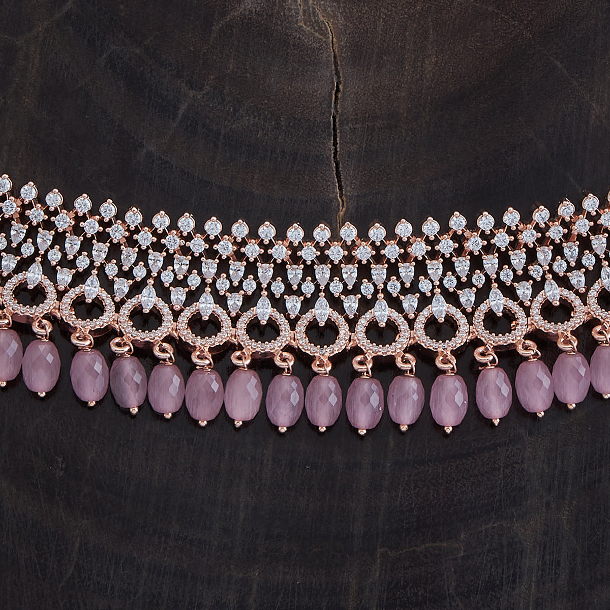 Enhance your ensemble with the exquisite allure of the zircon necklace. Crafted with shimmering zircon stones in four different colour options intricately set in a stunning design, this rose gold-polished necklace exudes elegance and sophistication. Whether worn alone as a statement piece or layered with other necklaces for a trendy look, the zircon necklace is sure to captivate attention and elevate your style to new heights.