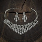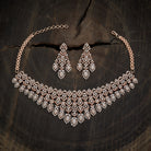 Sparkle like a star in this zirconia necklace set by Kushal's Fashion Jewellery! Available in three stunning finishes: rhodium, gold, and rose gold, it is ideal for elevating your ensemble's elegance. The necklace has a push-back closure, and the earrings match perfectly with it.
