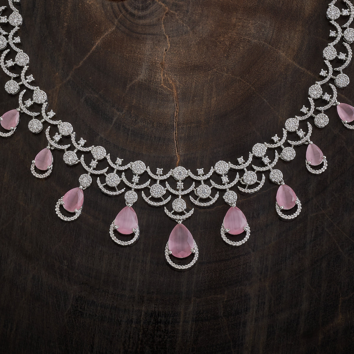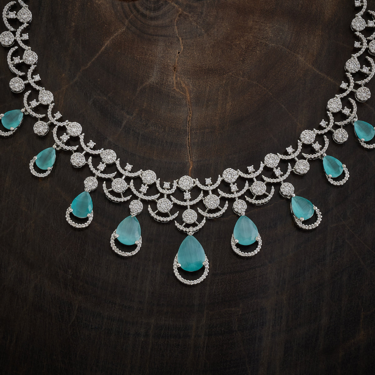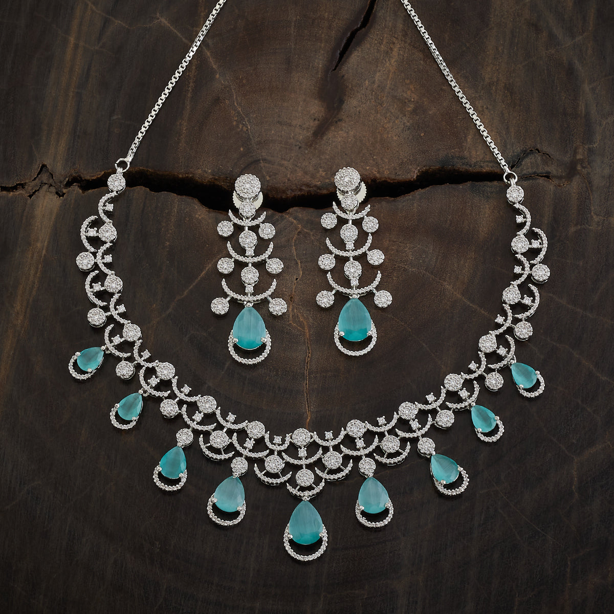 Some evenings call for extra glam, and this is exactly what this zircon necklace offers! It comes with hanging earrings embellished with coloured stones. Choose from unique hues such as mint, pink, ruby, and sapphire. Add this short necklace to your festive jewellery collection to make even a simple kurta set stand out!
