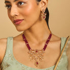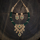 Style Kushal's zircon necklace set with your favourite outfit and make a bold fashion statement. Crafted from copper alloy, this stunning gold-polished necklace set is studded with shimmering zircons available in a green or ruby hue to choose from. This set is completed with a pair of matching earrings that perfectly complement the necklace.