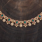 Adorned with florally arranged ruby-green zircons, this elegant zircon necklace is the perfect jewellery for your special day. Crafted with premium copper alloy, these short necklace is complemented with push-back hanging earrings. With an adjustable chain, this majestic short necklace has a comfortable and secure feel all day.