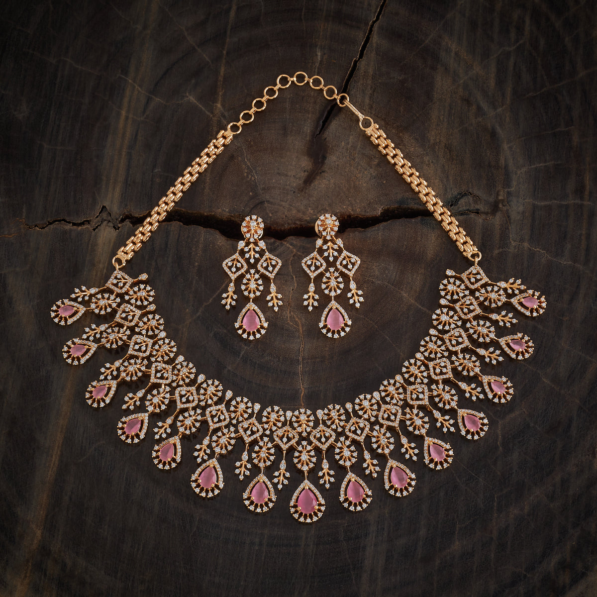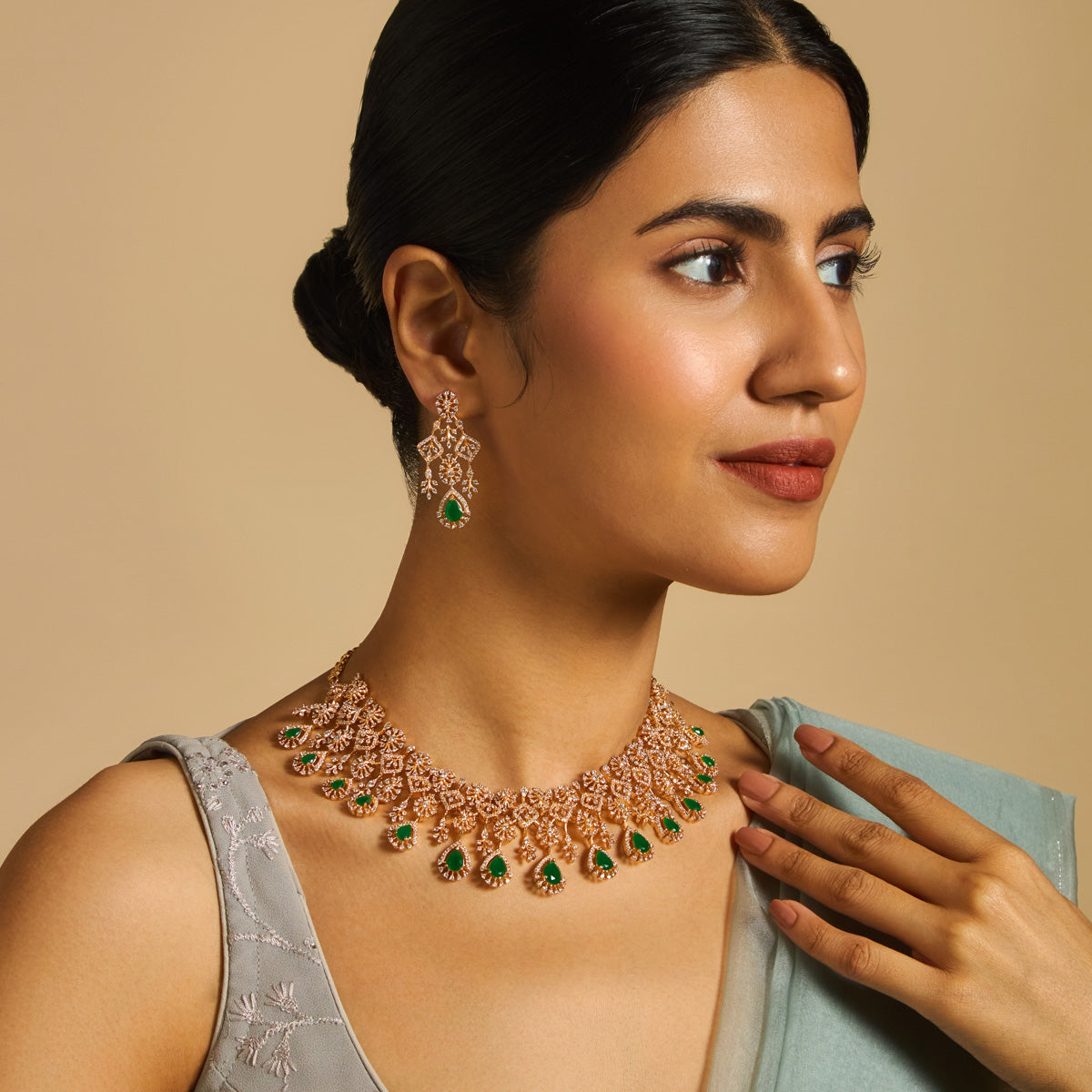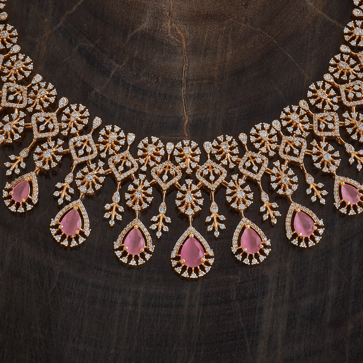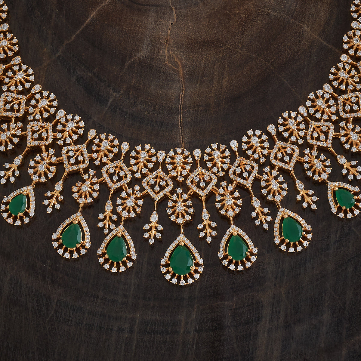 Pair this short zircon necklace set with your favourite Indian outfit for a touch of dazzling elegance! Kushal's Fashion Jewellery presents a stunning short necklace with matching hanging earrings, featuring vibrant green, mint, pink, or ruby zircon stones and finished with a luxurious gold polish. Perfect for enhancing any Indian attire, this set adds a pop of colour and sophisticated sparkle to your look.