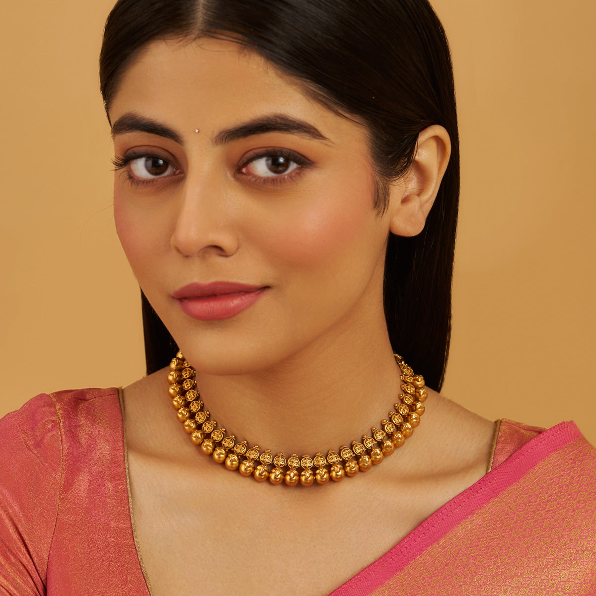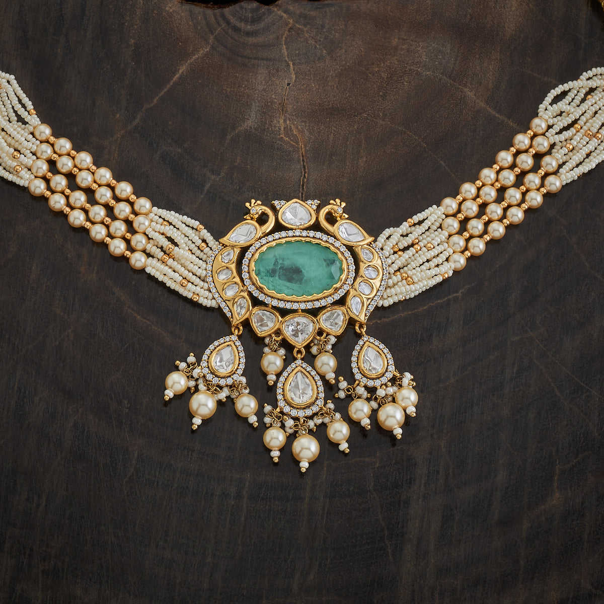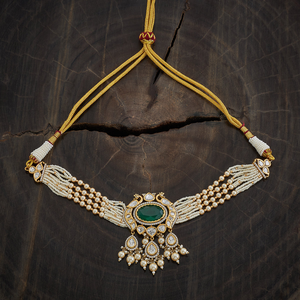 Not sure which short necklace length is right for you? Start by considering the neckline of your clothing. For example, a 16-inch short chain necklace looks stunning with a crew neck or strapless top, while a 14-inch choker-style piece pairs well with deeper cuts. If layering, consider mixing textures or combining a short kundan necklace with longer pendants for a trendy, bohemian look.