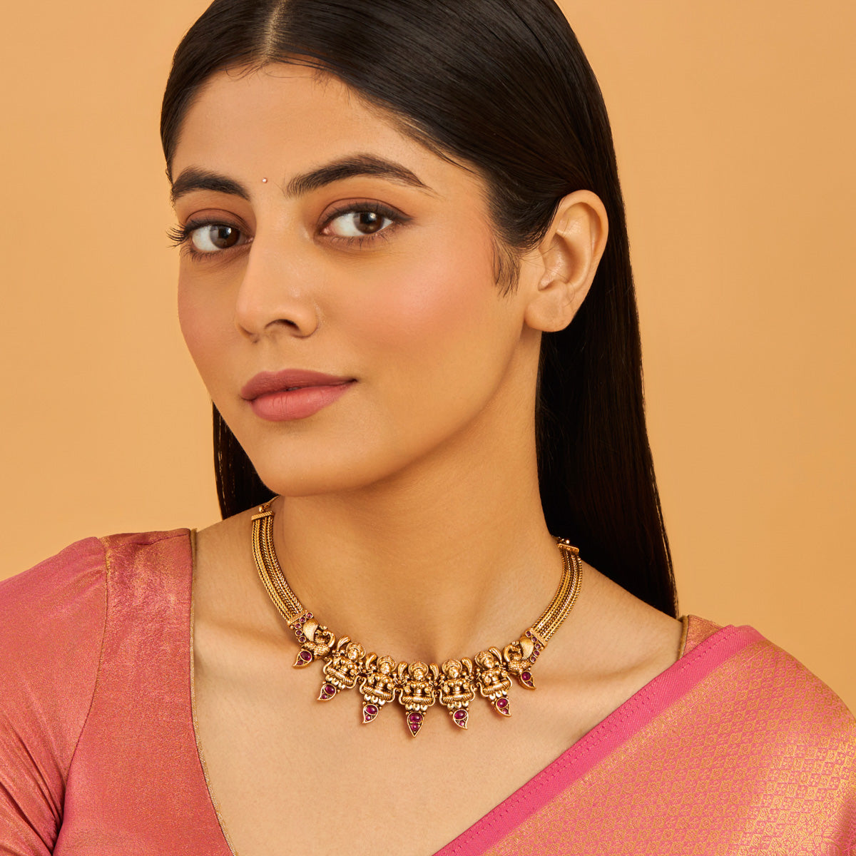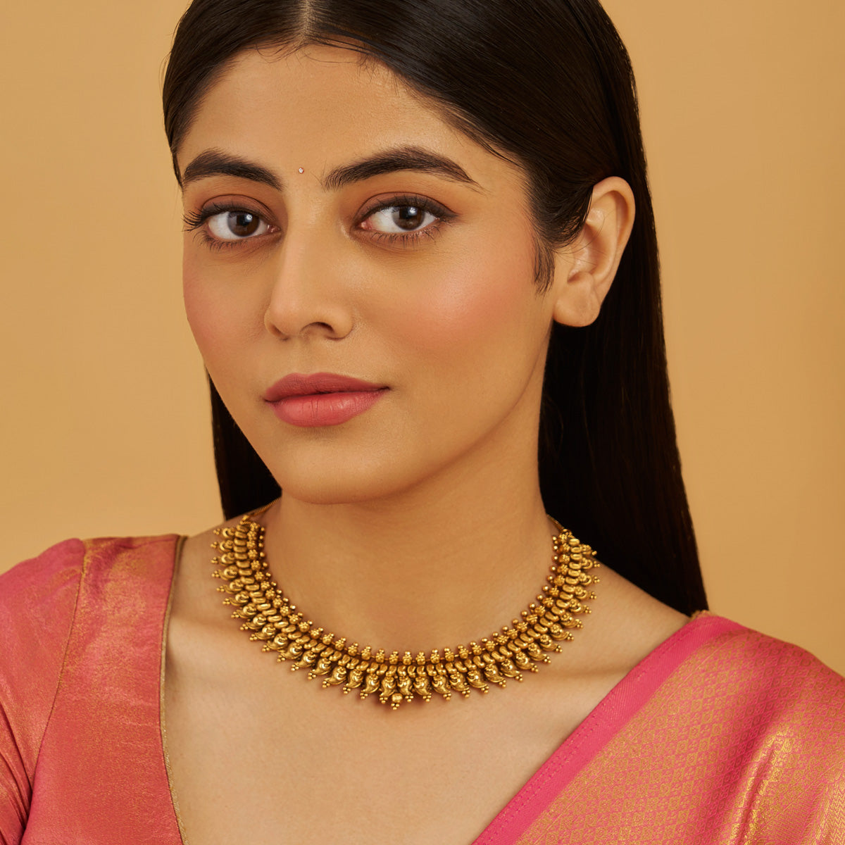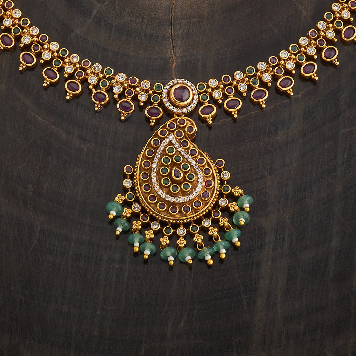 Not sure which short necklace length is right for you? Start by considering the neckline of your clothing. For example, a 16-inch short chain necklace looks stunning with a crew neck or strapless top, while a 14-inch choker-style piece pairs well with deeper cuts. If layering, consider mixing textures or combining a short kundan necklace with longer pendants for a trendy, bohemian look.