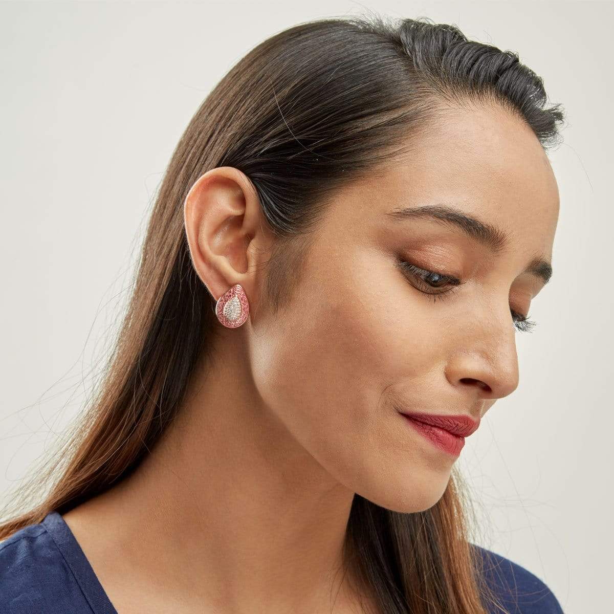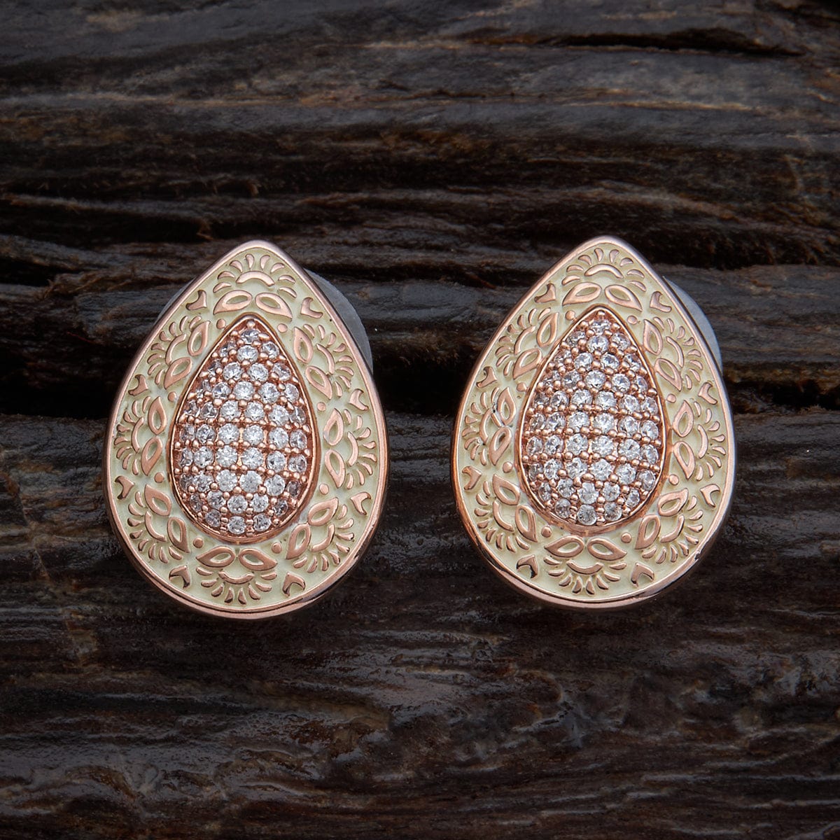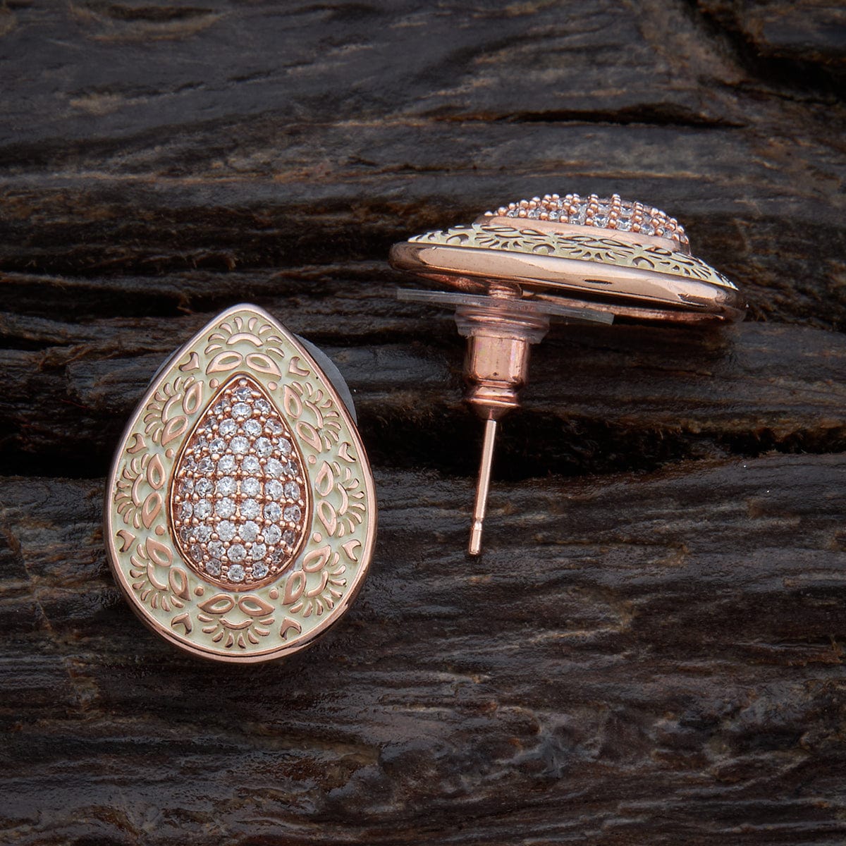 This pair of stud earrings is to be added to your collection. The beautifully carved design and the embellished Zircon stones really make this ornament special. The rose gold plating adds to the charm of the raindrop motif. Match this pair with a formal business suit or any traditional wear and watch these ear studs work their charm.