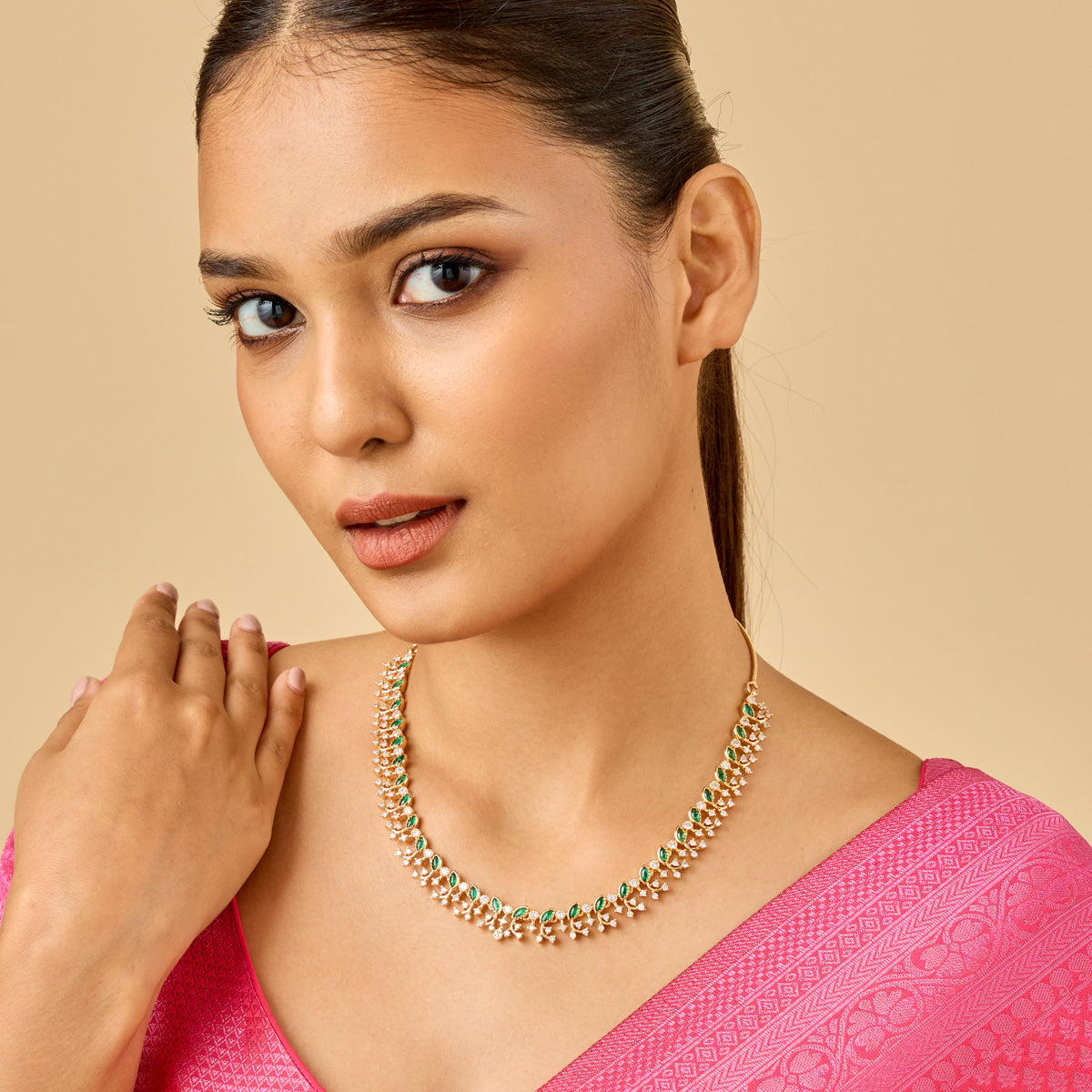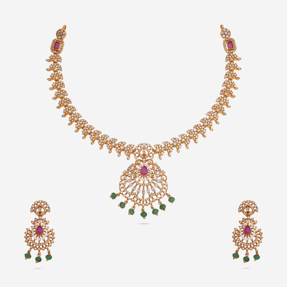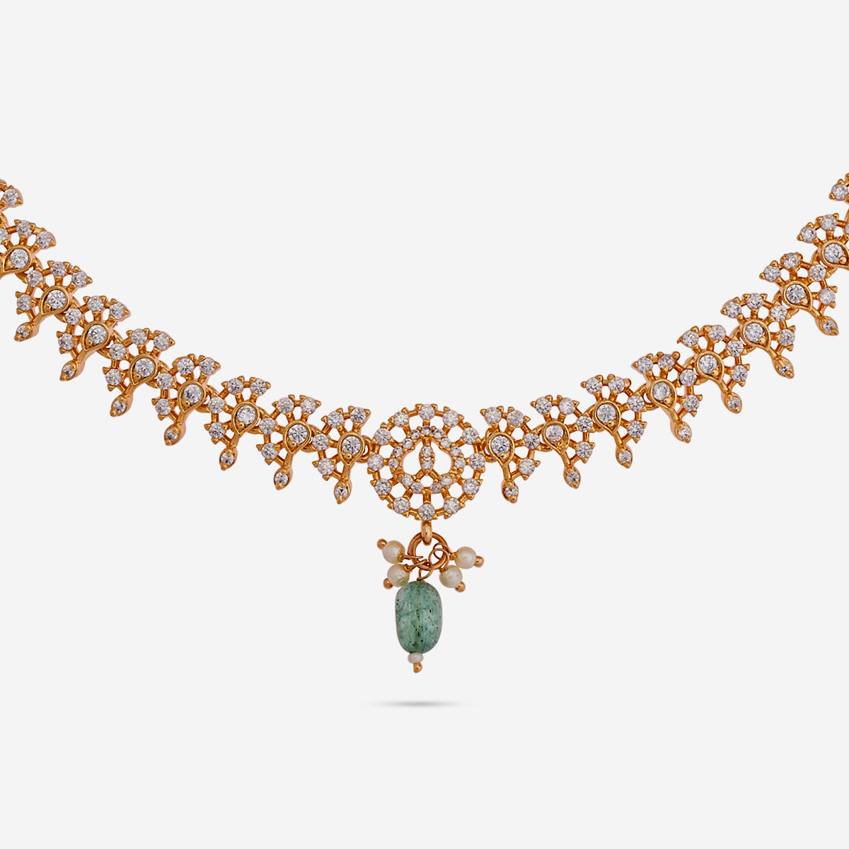 For those who adore grandeur, a zircon long necklace is the ultimate showstopper. These pieces gracefully elongate the neckline and add a luxurious layer of sparkle to your ensemble. Perfect for weddings, festive events, or traditional wear, a zircon long necklace pairs beautifully with both sarees and gowns.