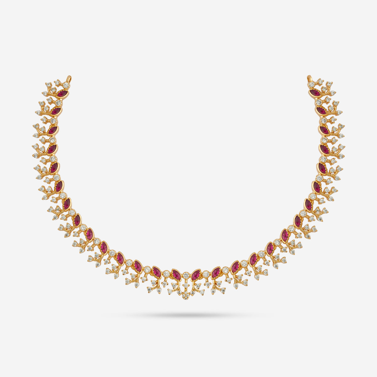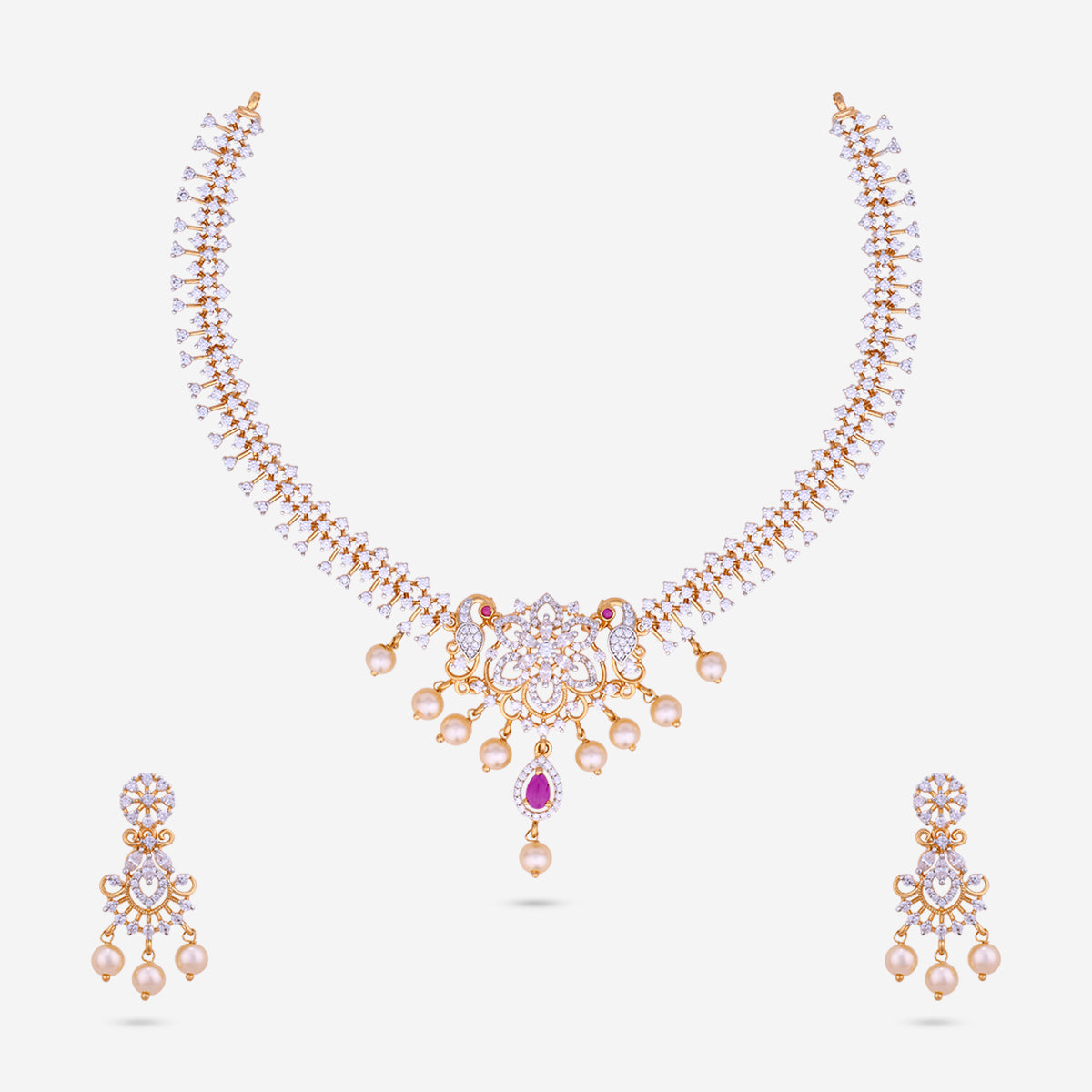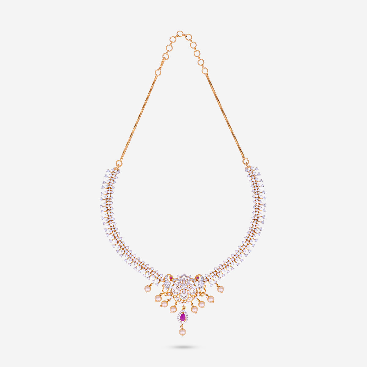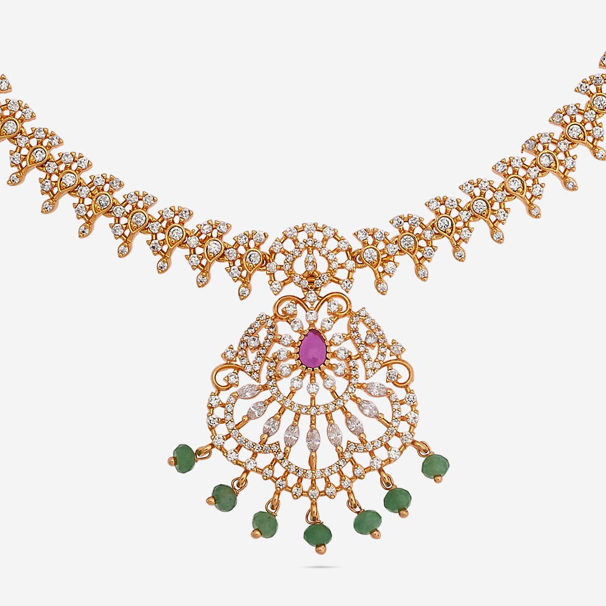 - For a bridal ensemble, go for elaborate zircon necklace designs that sparkle under the lights.