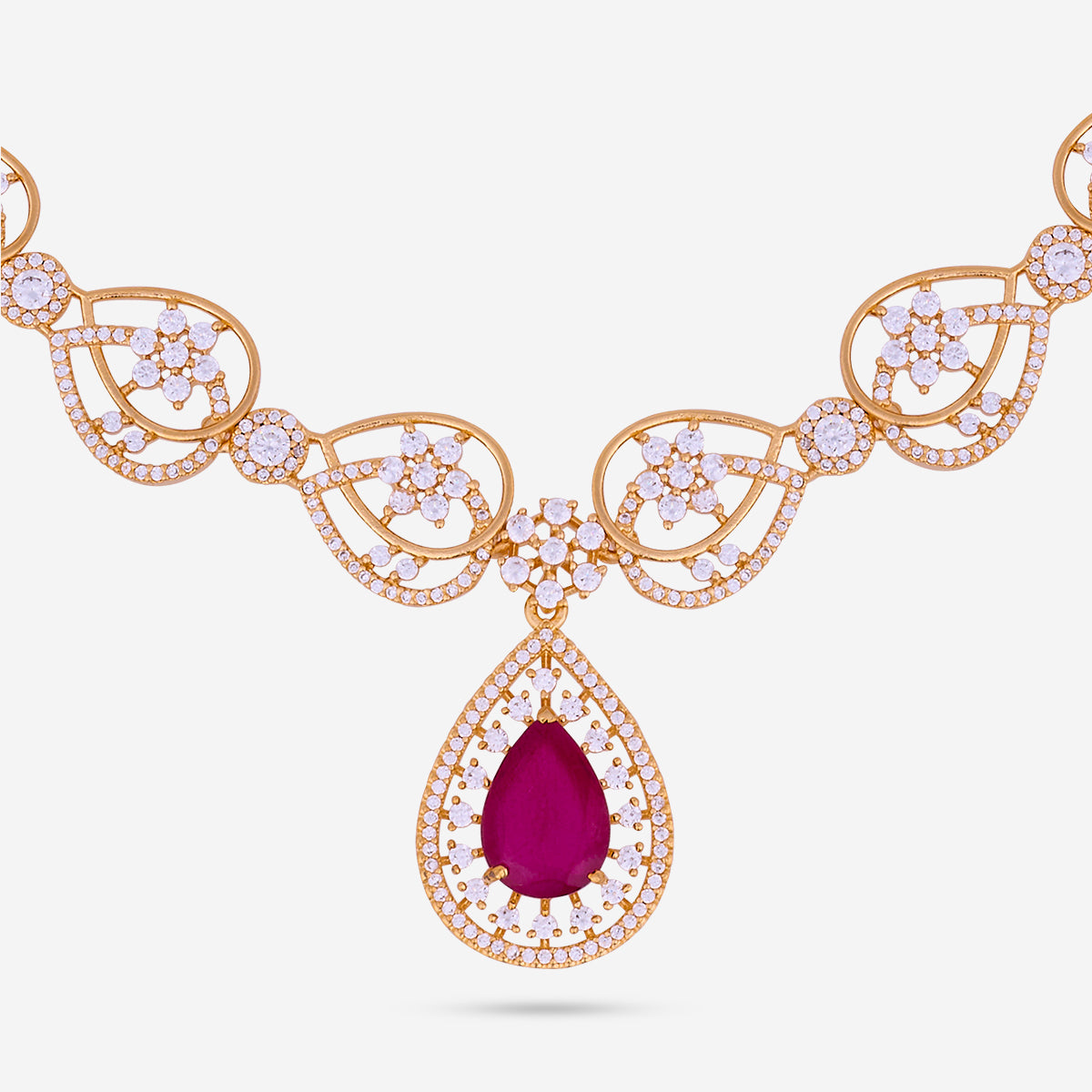 - For a bridal ensemble, go for elaborate zircon necklace designs that sparkle under the lights.