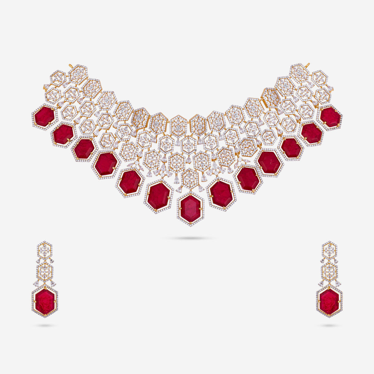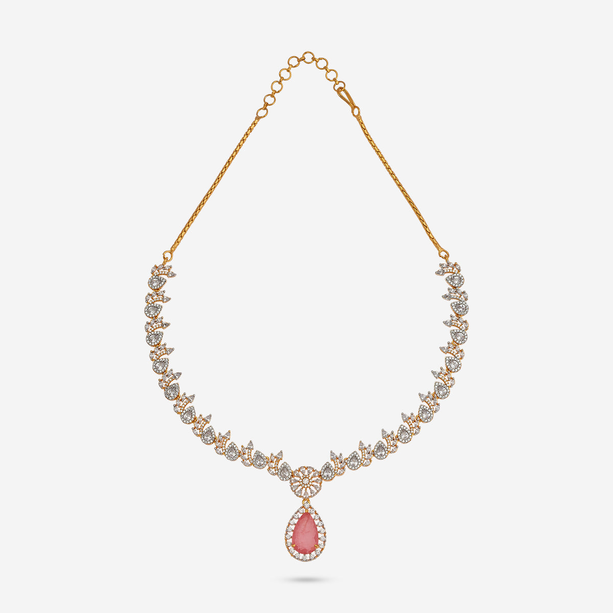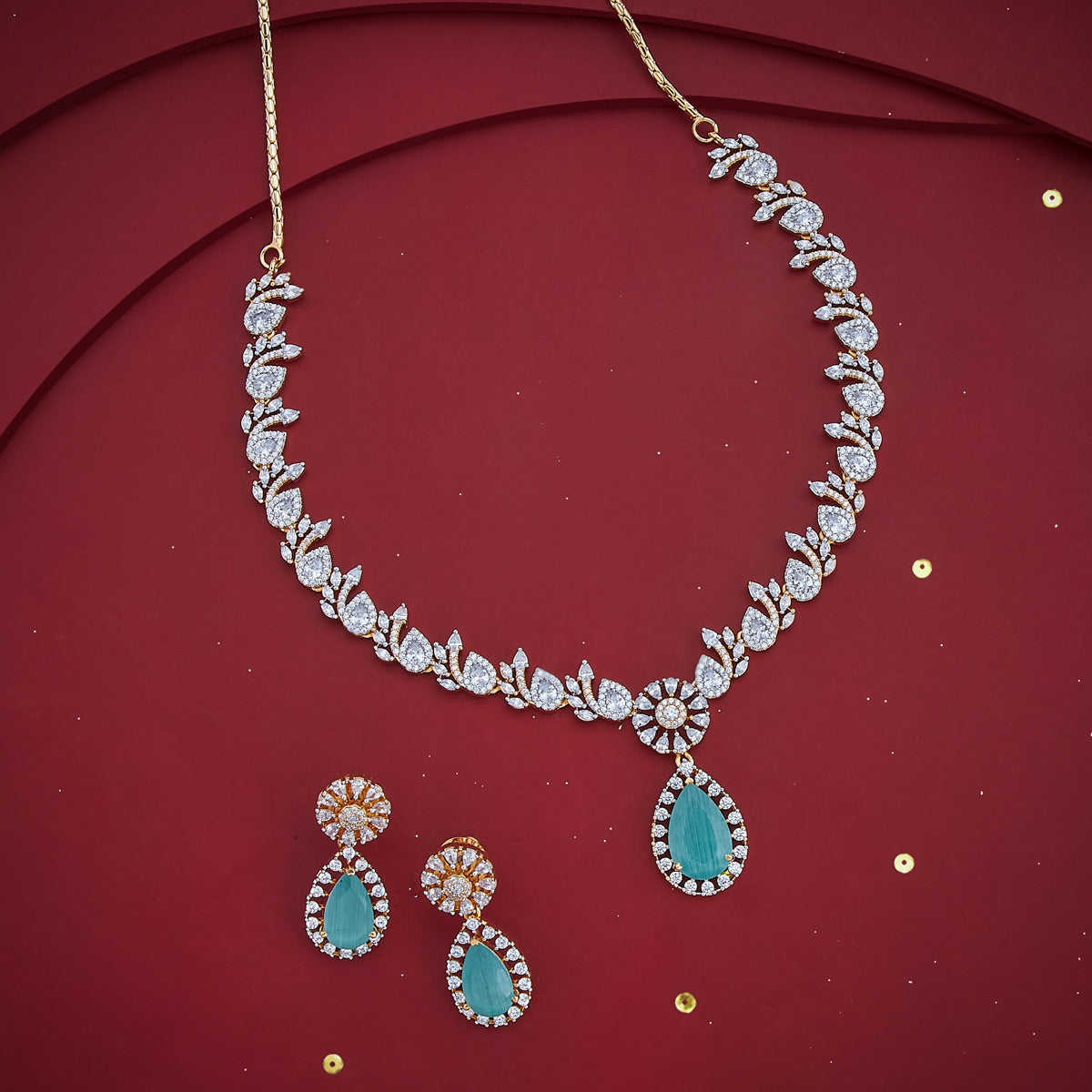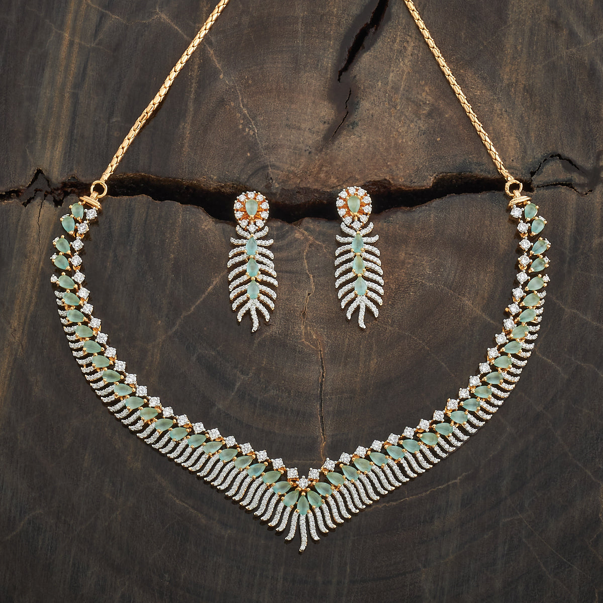 - For a bridal ensemble, go for elaborate zircon necklace designs that sparkle under the lights.