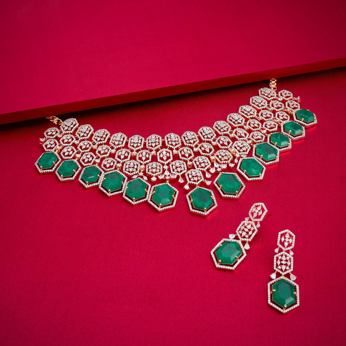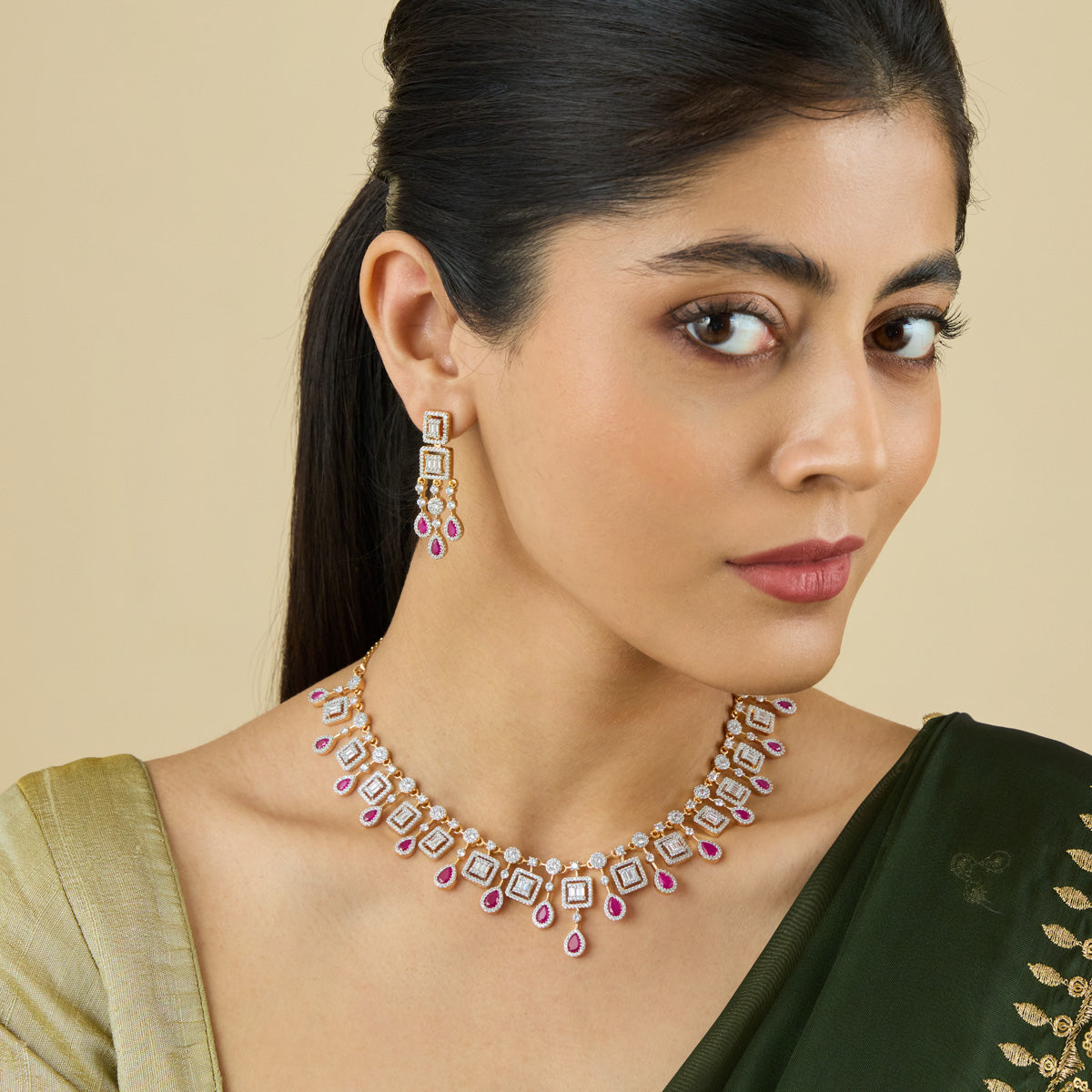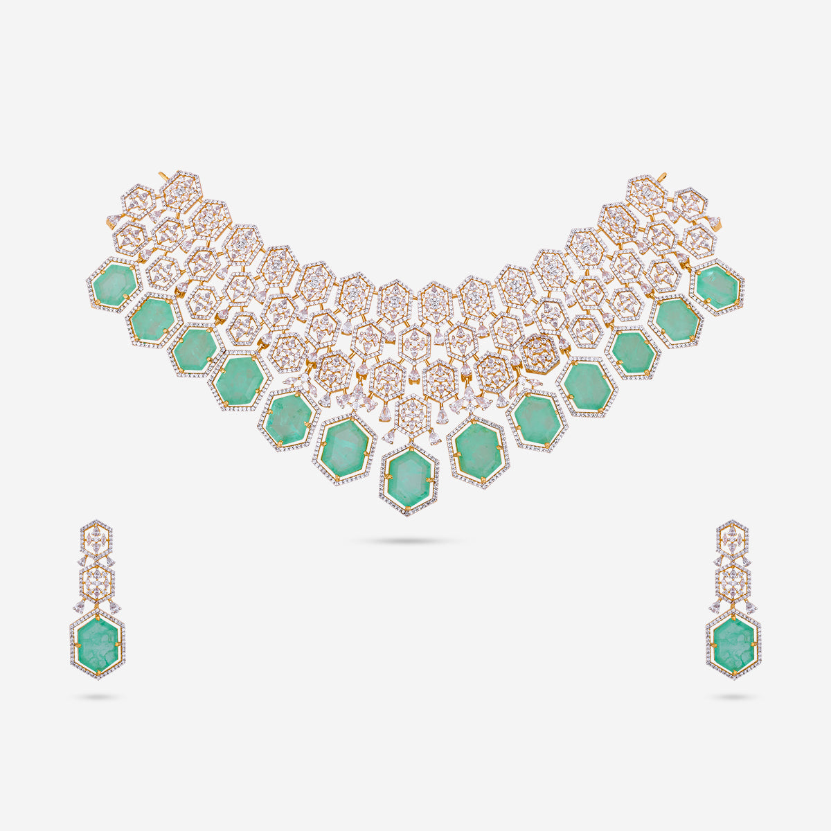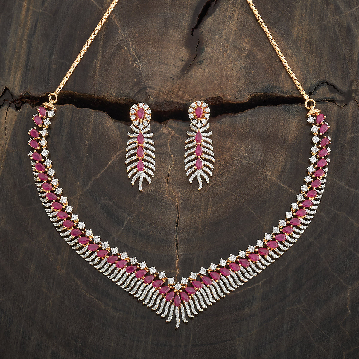 - For a bridal ensemble, go for elaborate zircon necklace designs that sparkle under the lights.