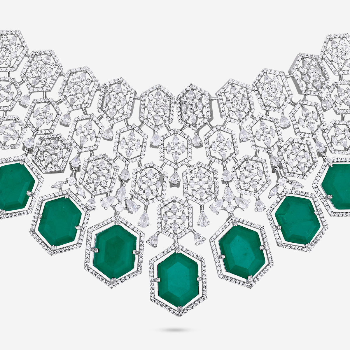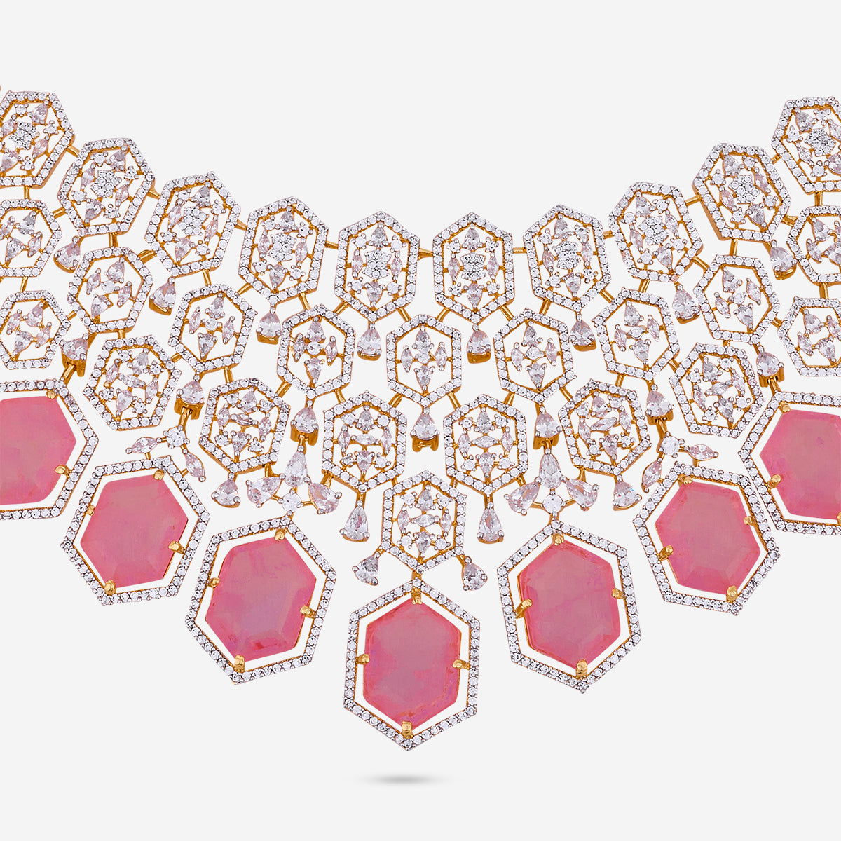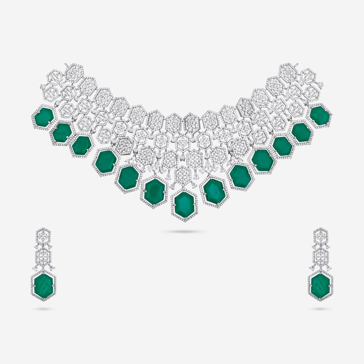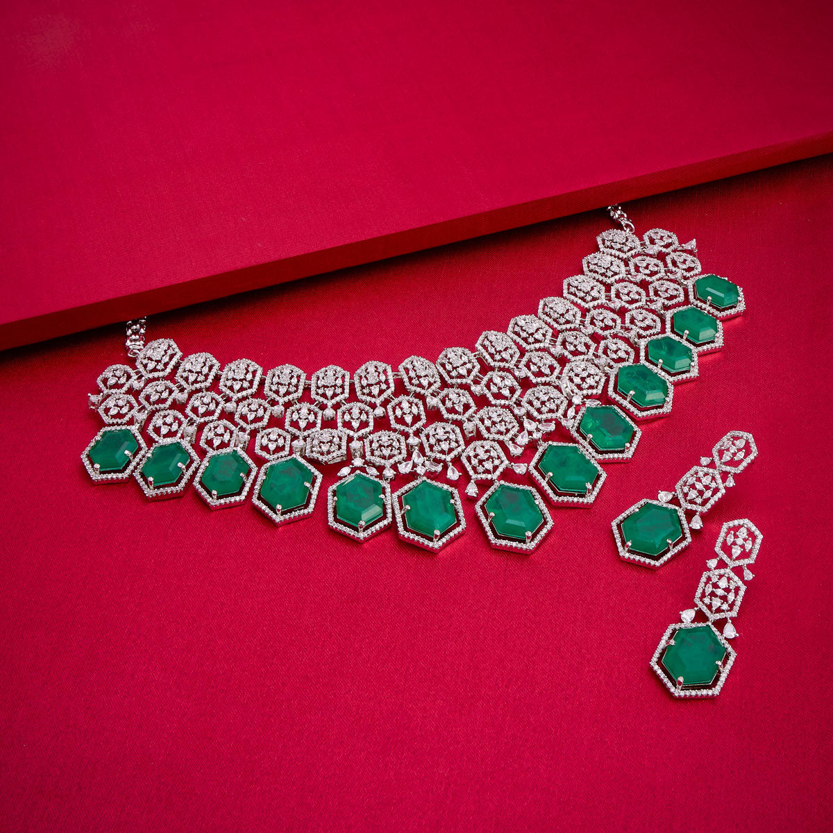 - For a bridal ensemble, go for elaborate zircon necklace designs that sparkle under the lights.