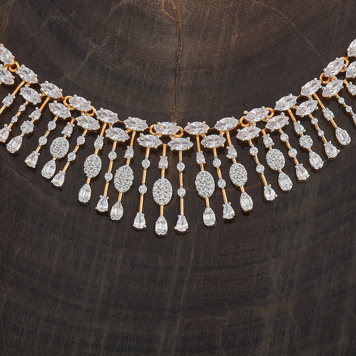 Our zircon long necklace designs come in a variety of patterns — from intricate floral arrangements to geometric marvels — ensuring there’s something for every aesthetic. The elegance of length combined with the brilliance of zircon makes these necklaces an indispensable part of any jewellery wardrobe.
