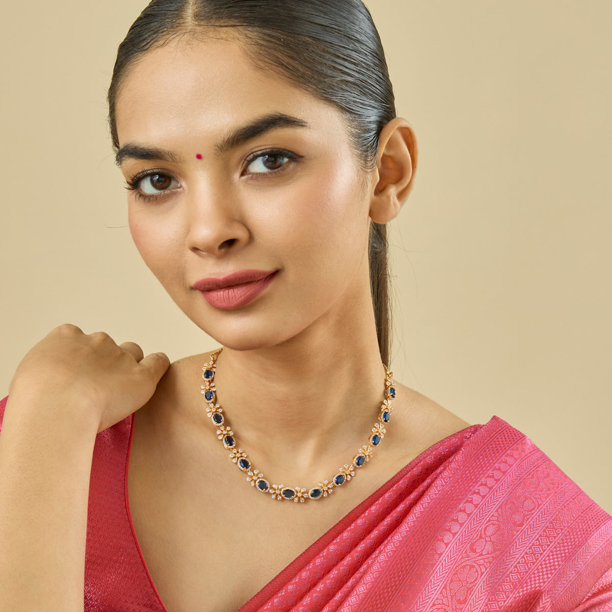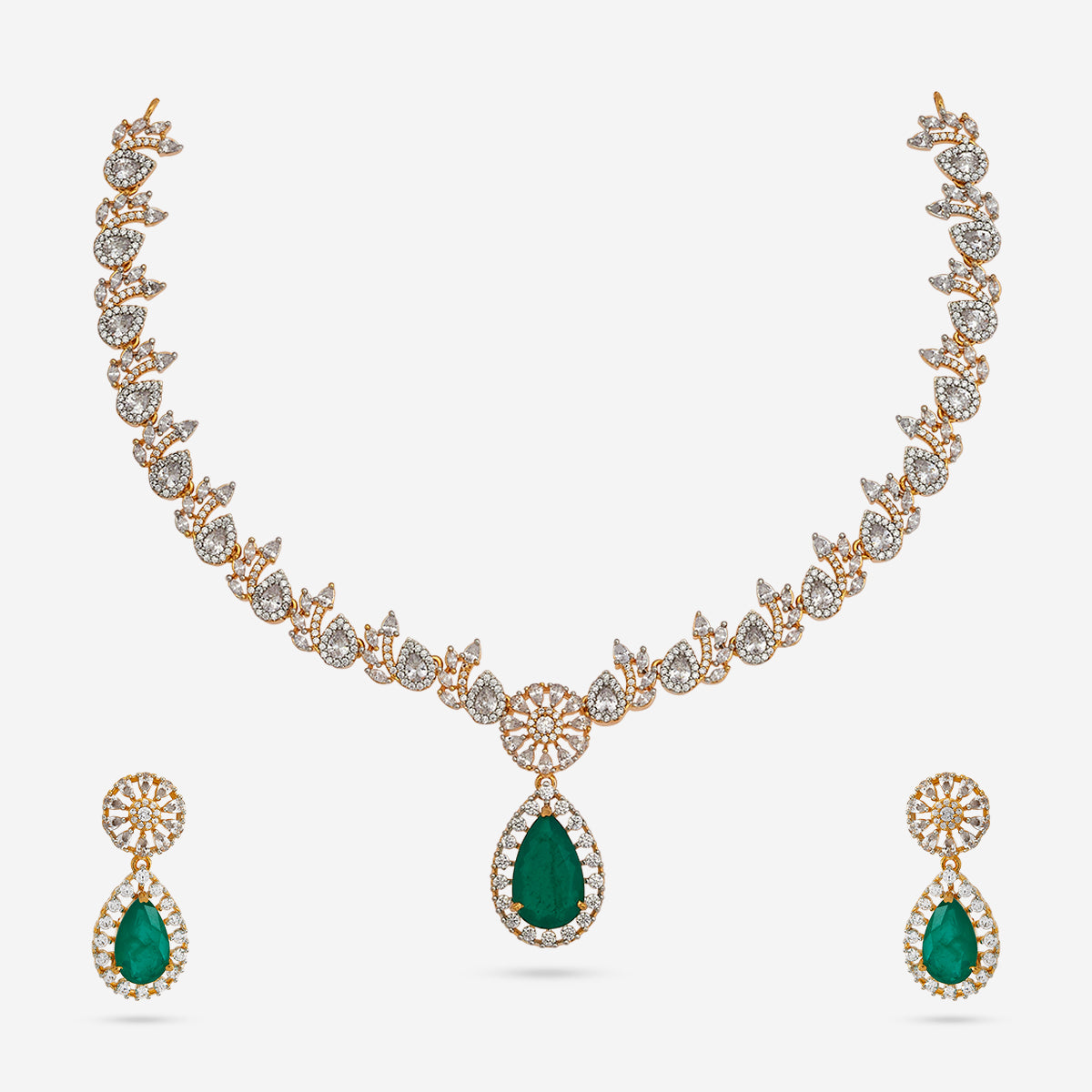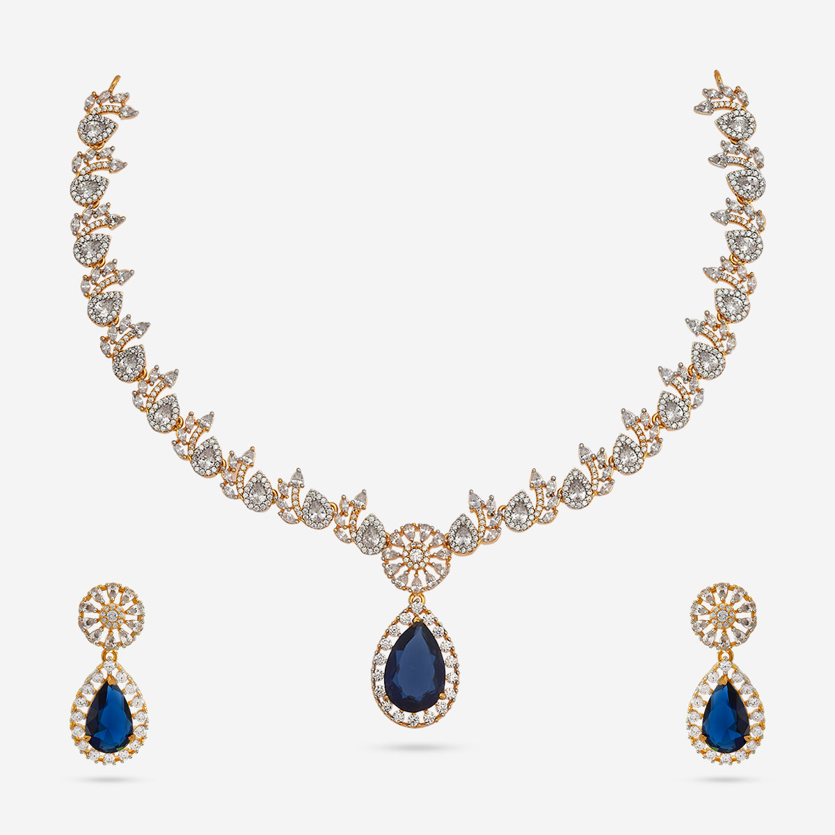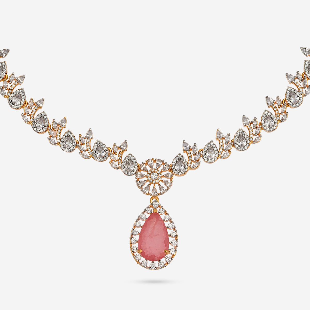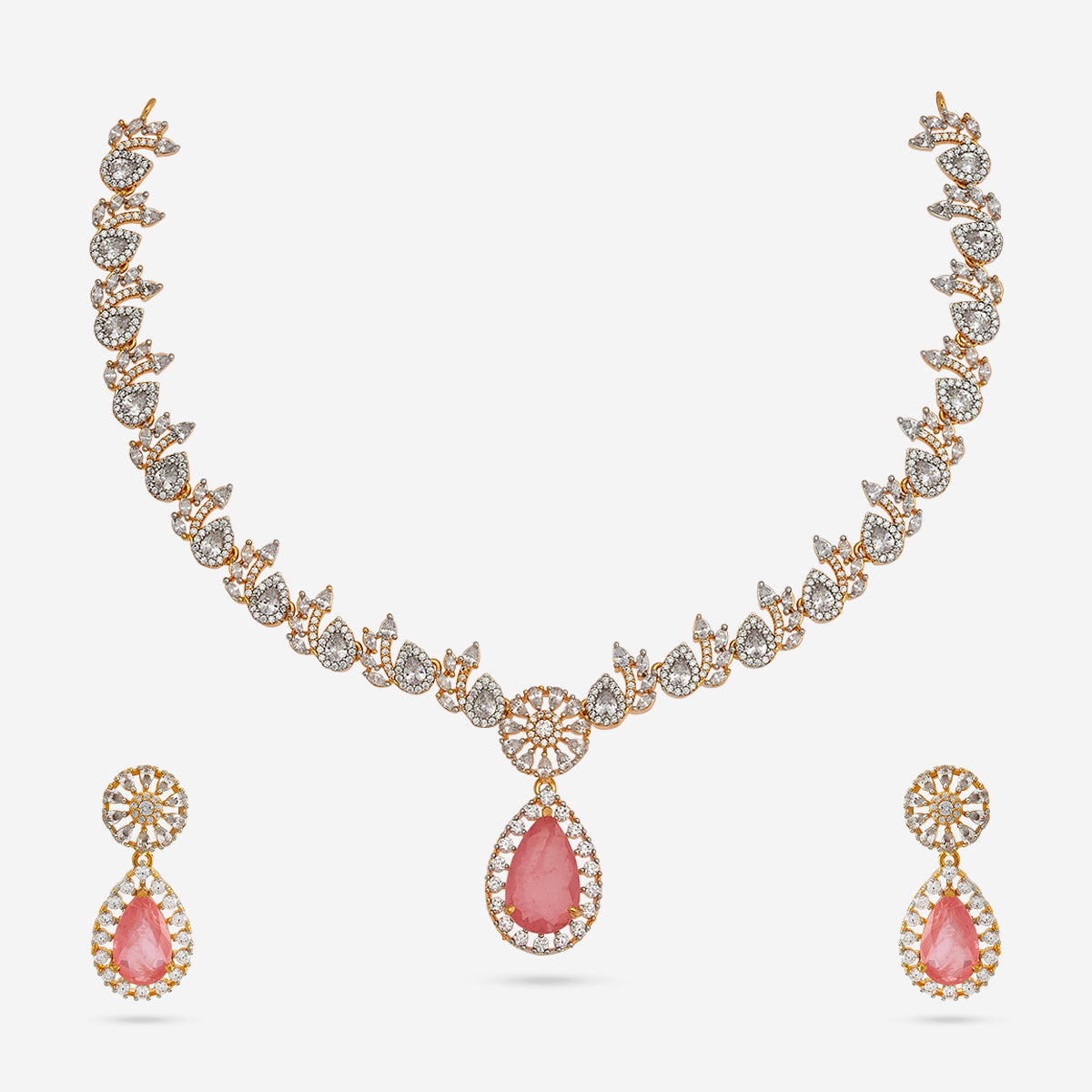 For those who adore grandeur, a zircon long necklace is the ultimate showstopper. These pieces gracefully elongate the neckline and add a luxurious layer of sparkle to your ensemble. Perfect for weddings, festive events, or traditional wear, a zircon long necklace pairs beautifully with both sarees and gowns.