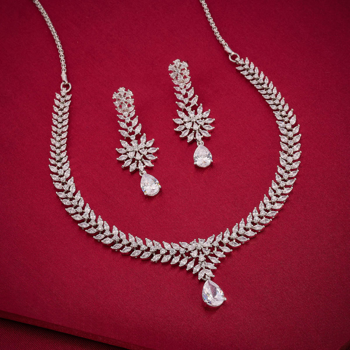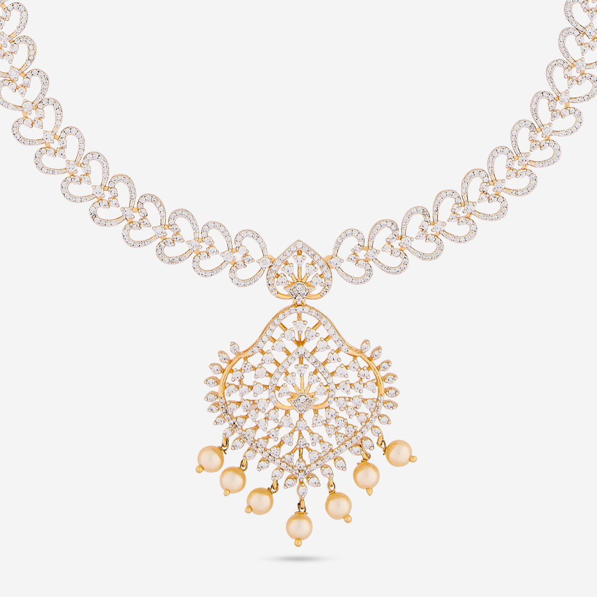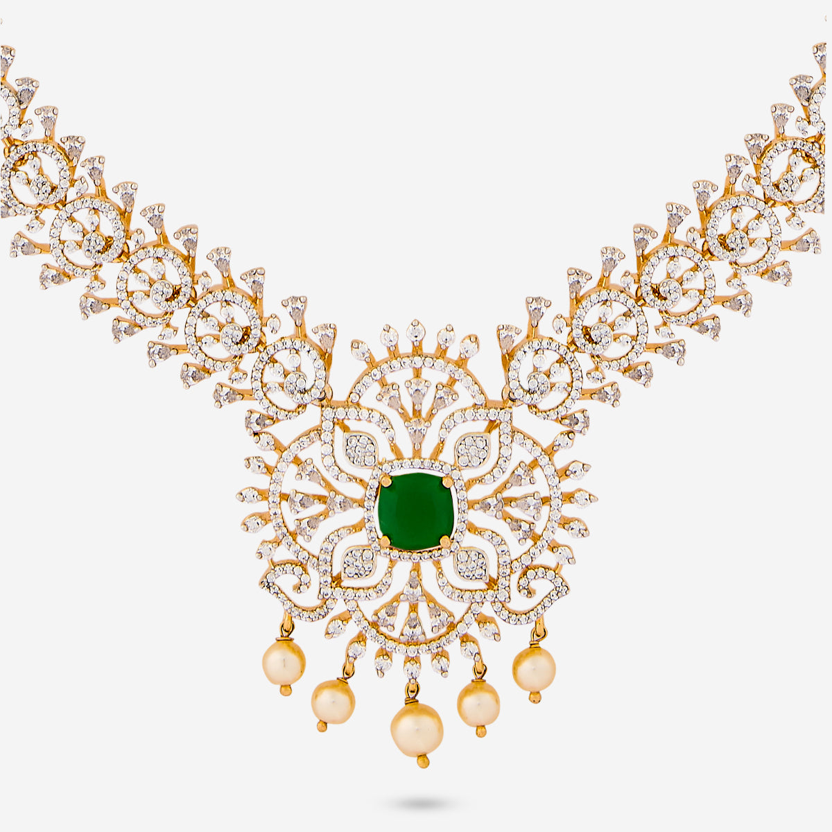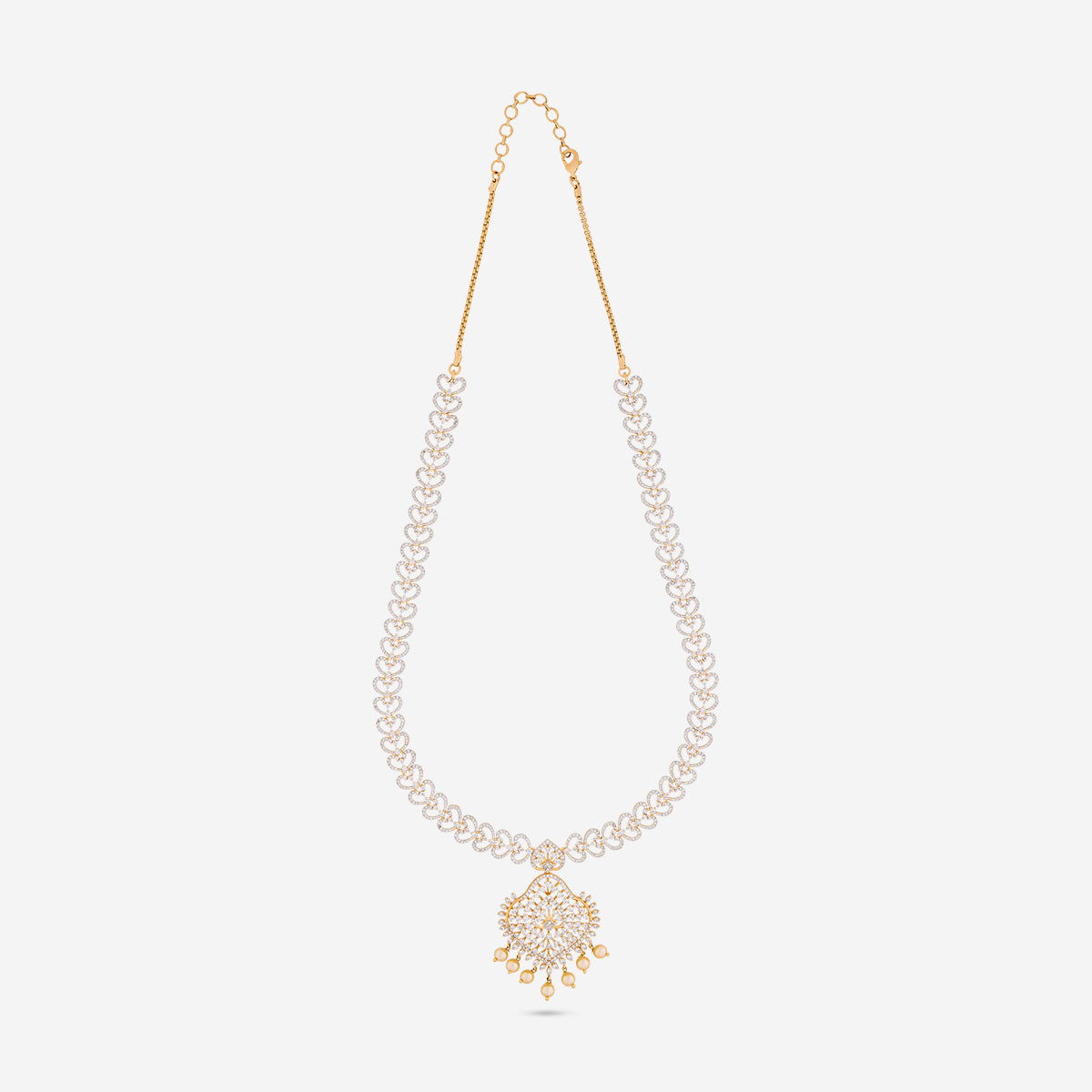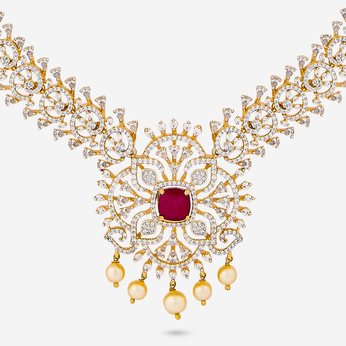 - For a bridal ensemble, go for elaborate zircon necklace designs that sparkle under the lights.