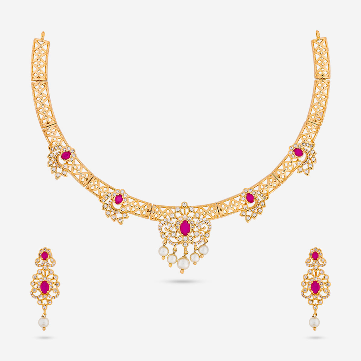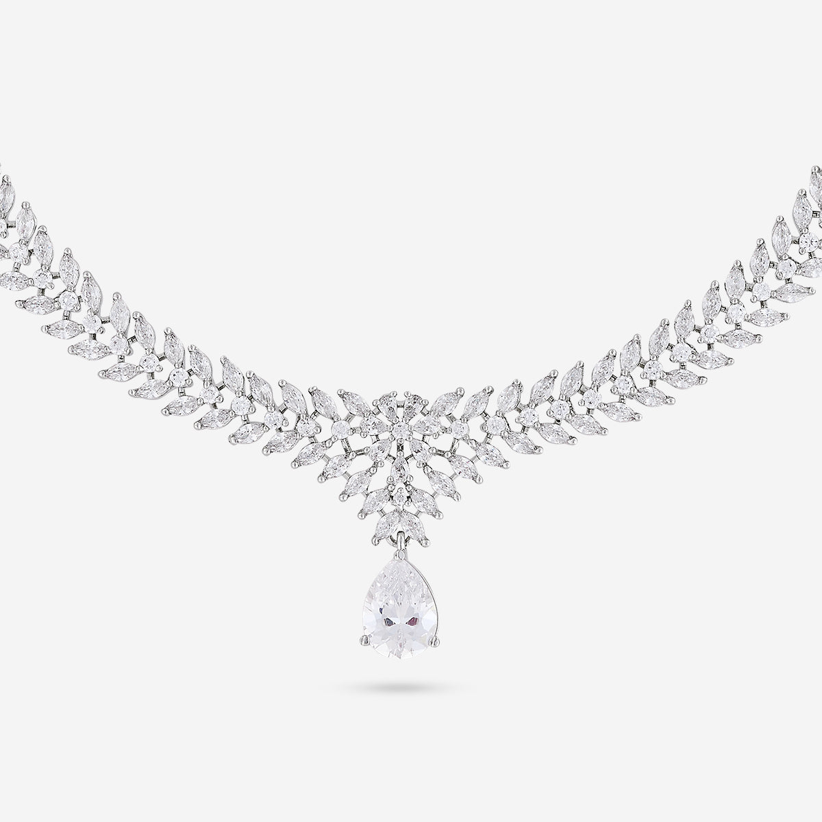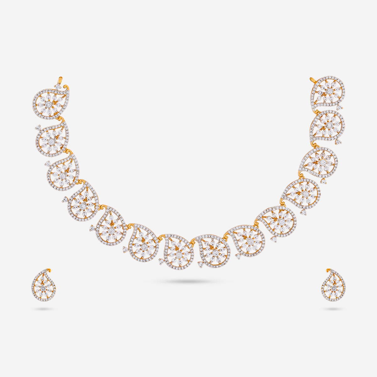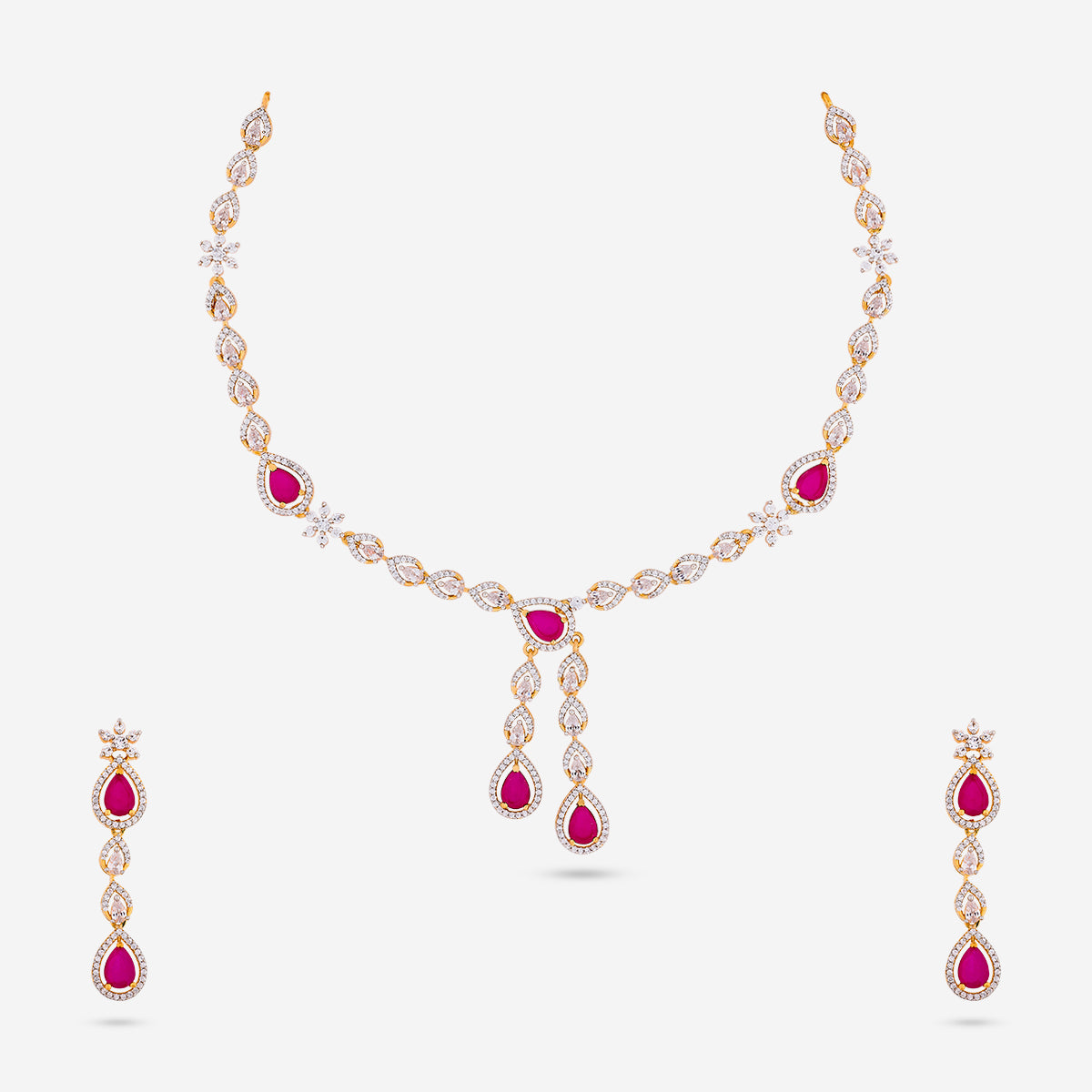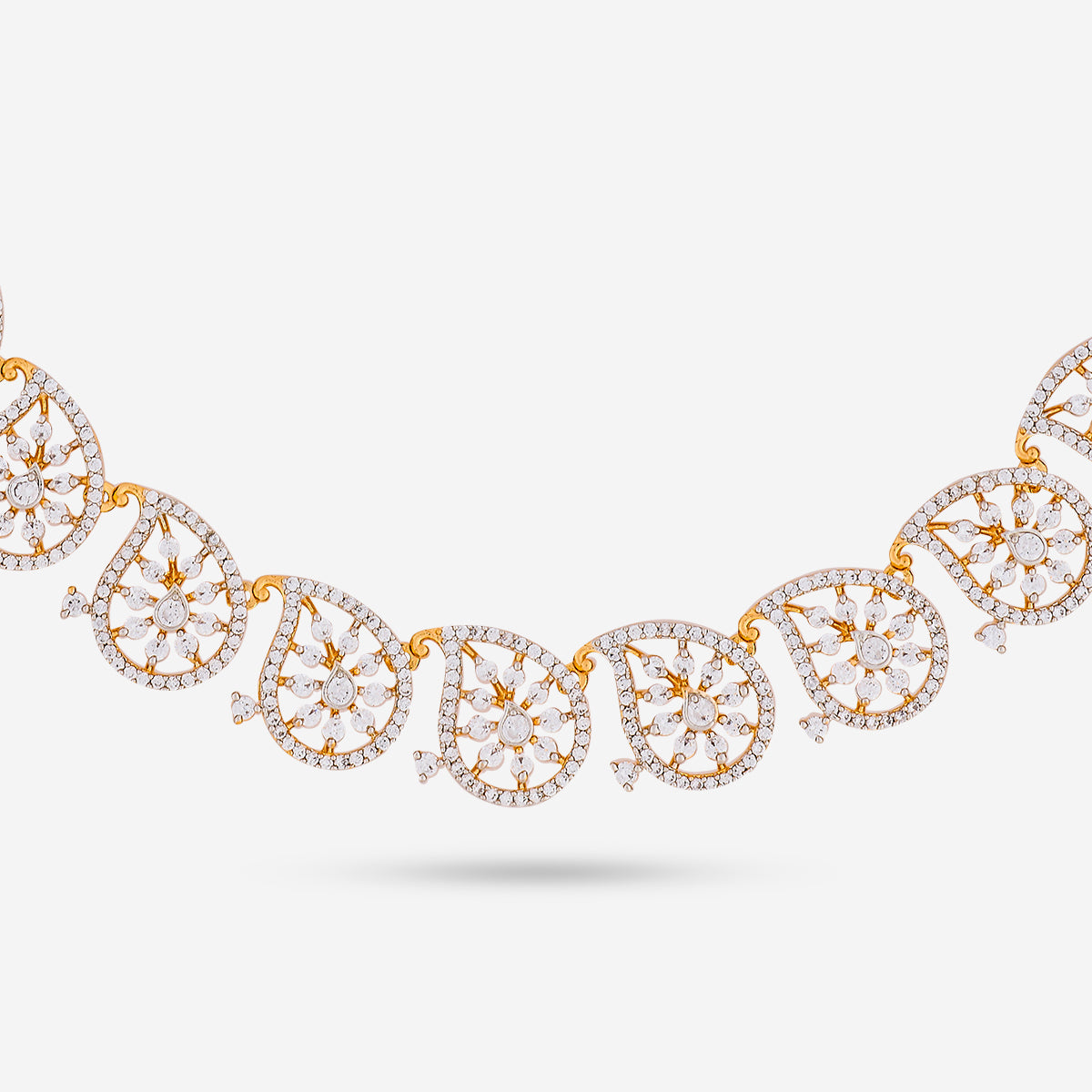 - For a bridal ensemble, go for elaborate zircon necklace designs that sparkle under the lights.