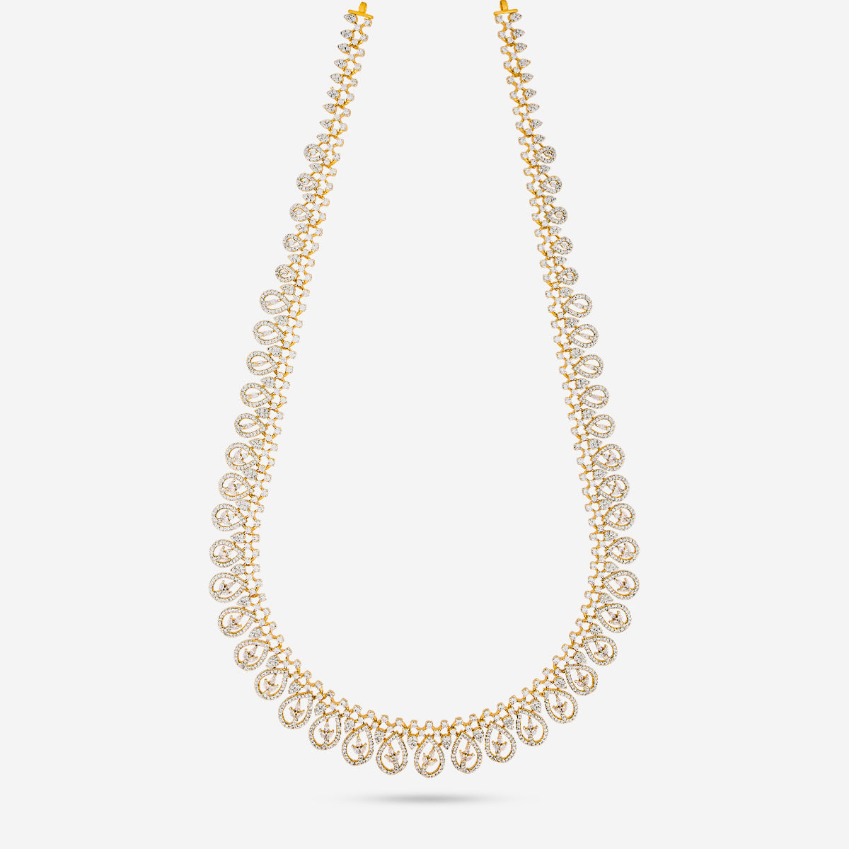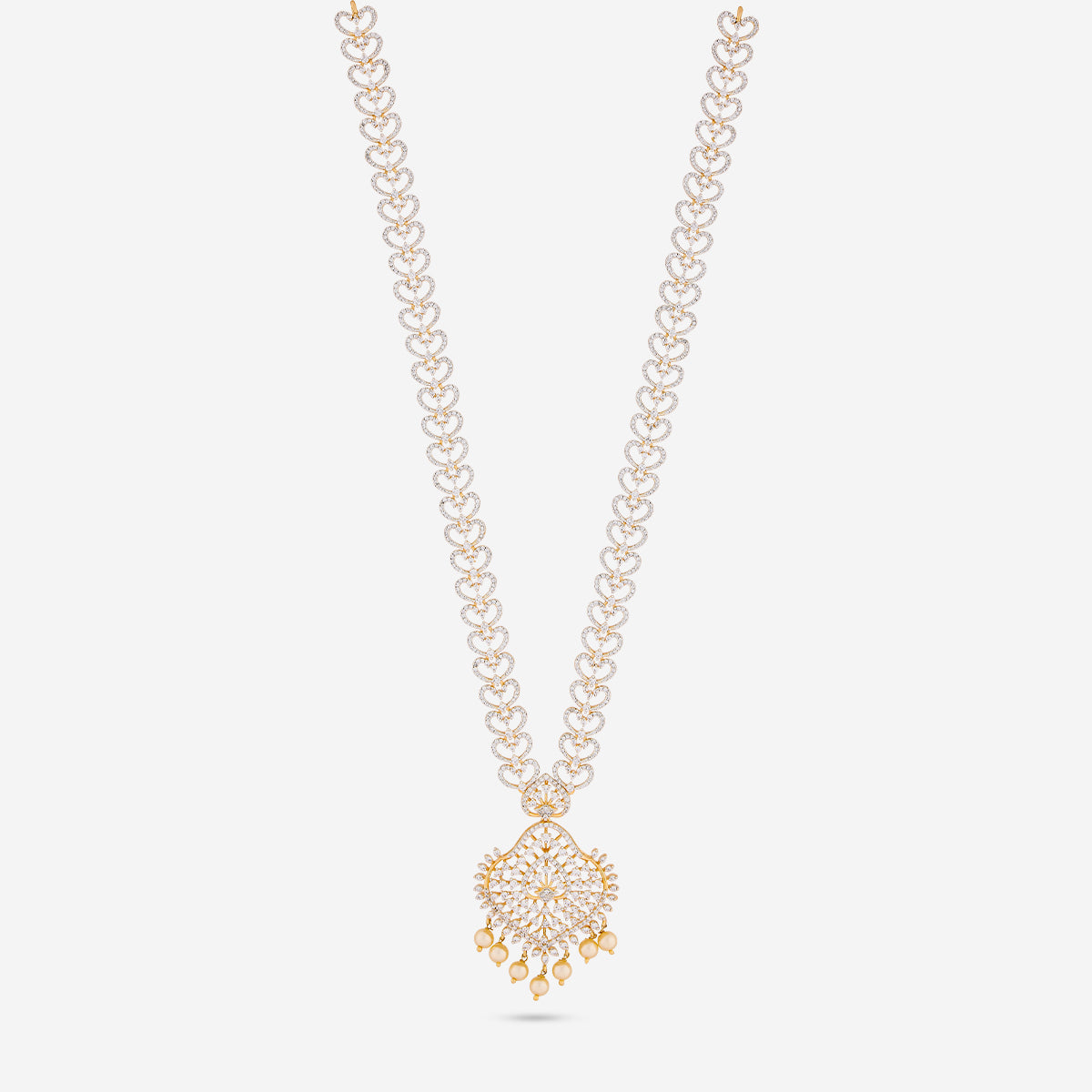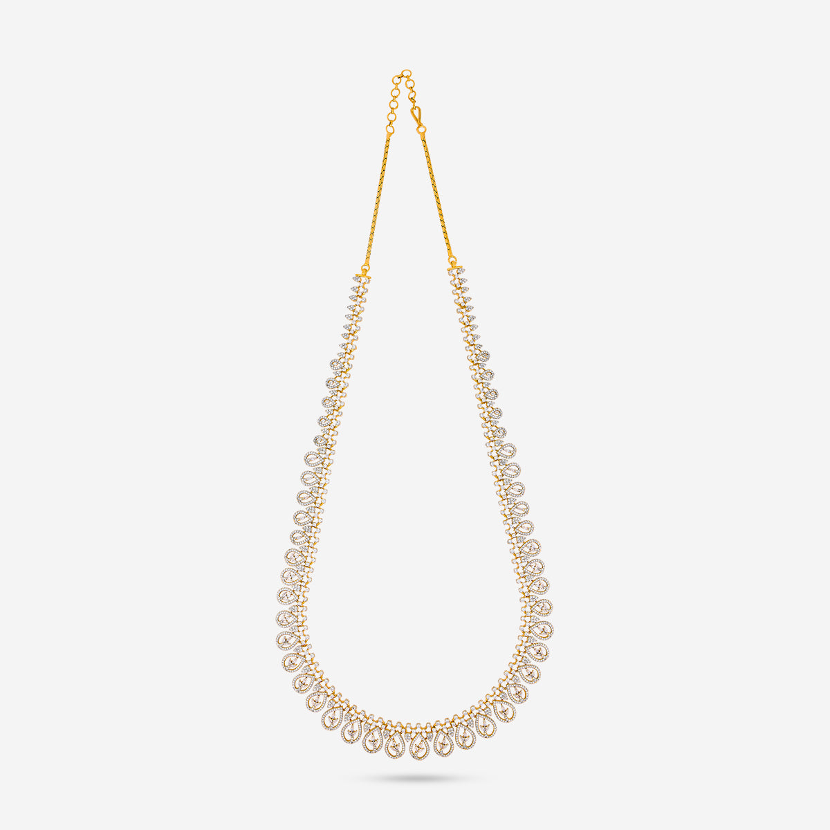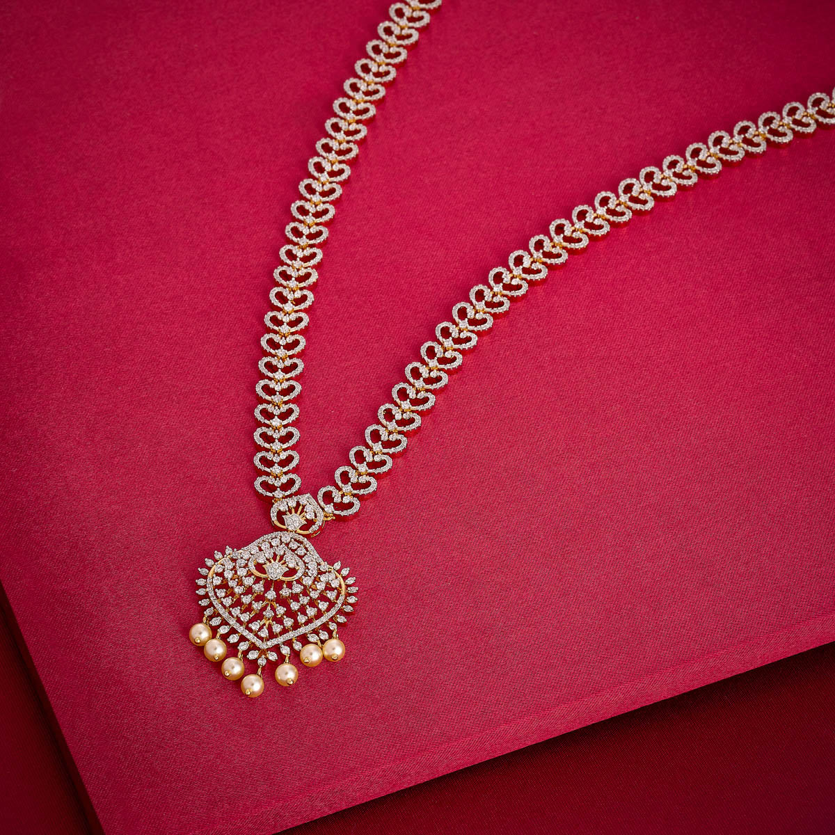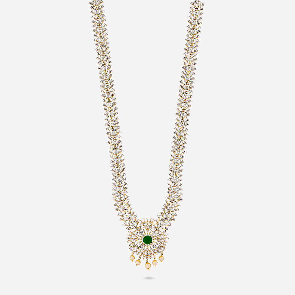 For those who adore grandeur, a zircon long necklace is the ultimate showstopper. These pieces gracefully elongate the neckline and add a luxurious layer of sparkle to your ensemble. Perfect for weddings, festive events, or traditional wear, a zircon long necklace pairs beautifully with both sarees and gowns.