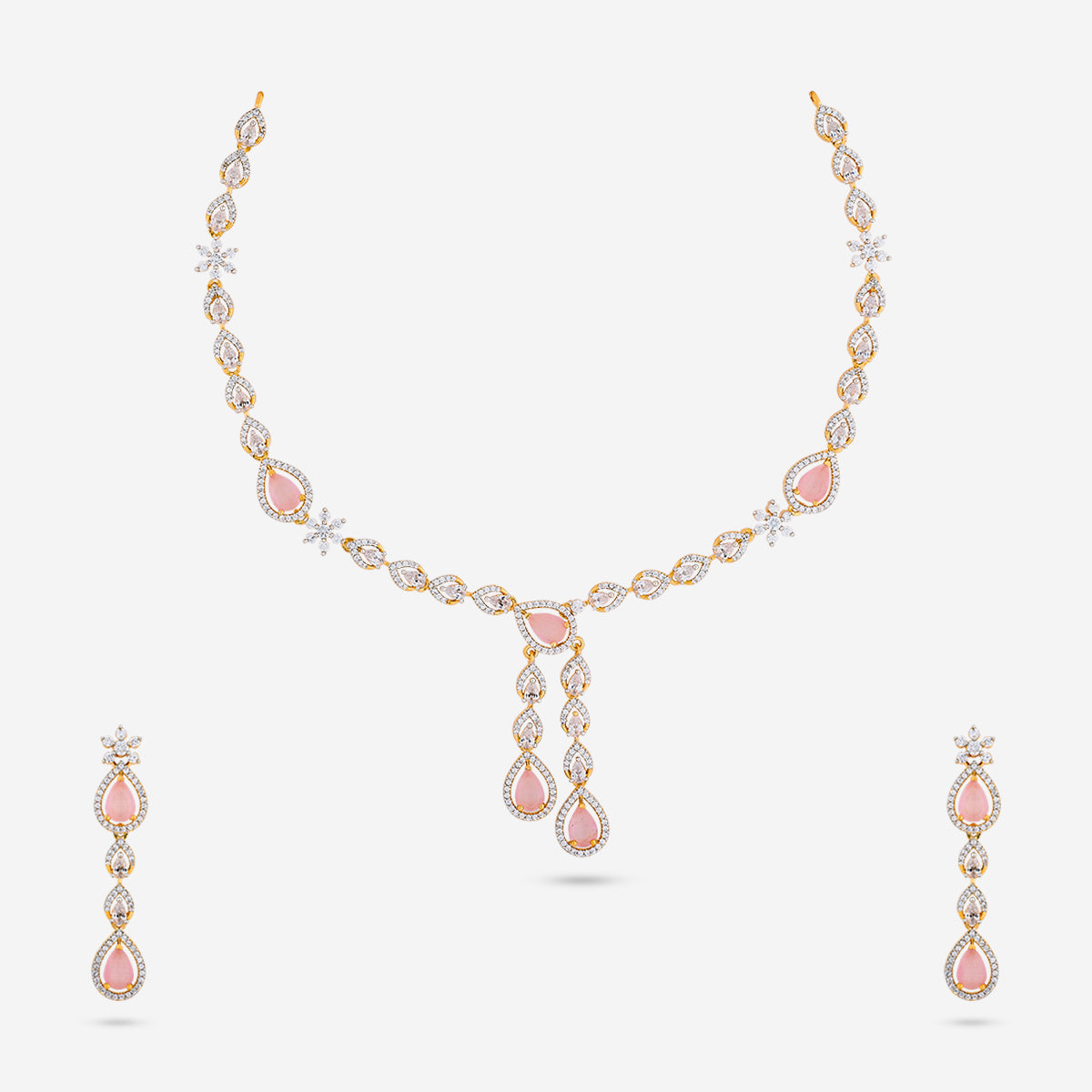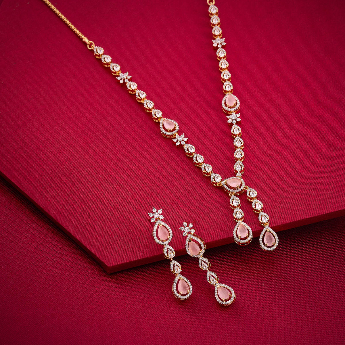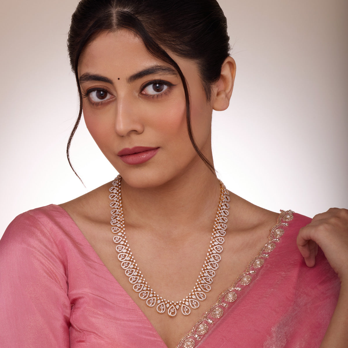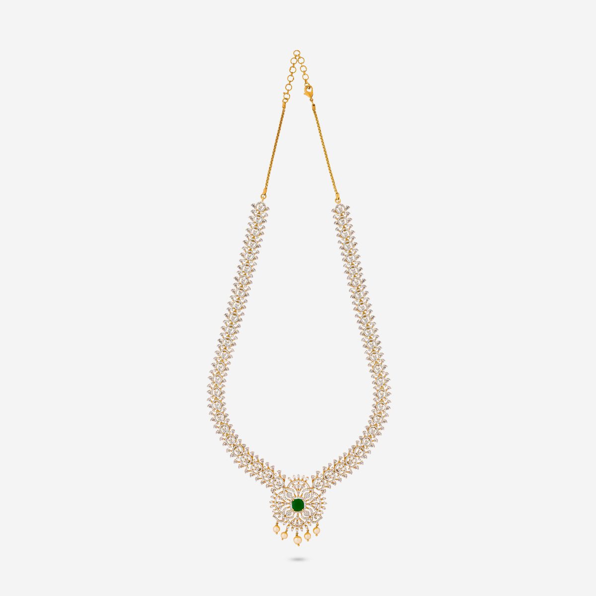 For those who adore grandeur, a zircon long necklace is the ultimate showstopper. These pieces gracefully elongate the neckline and add a luxurious layer of sparkle to your ensemble. Perfect for weddings, festive events, or traditional wear, a zircon long necklace pairs beautifully with both sarees and gowns.