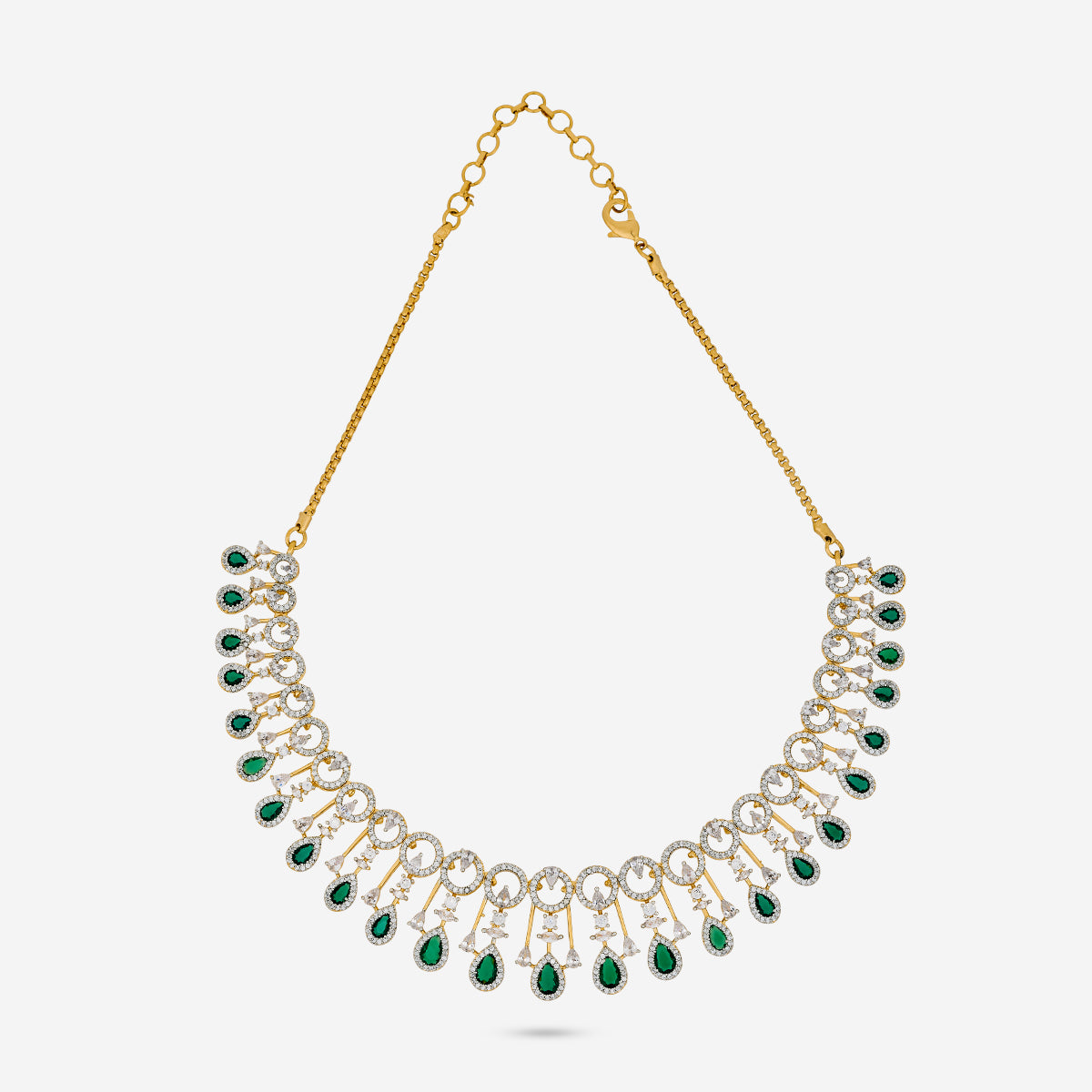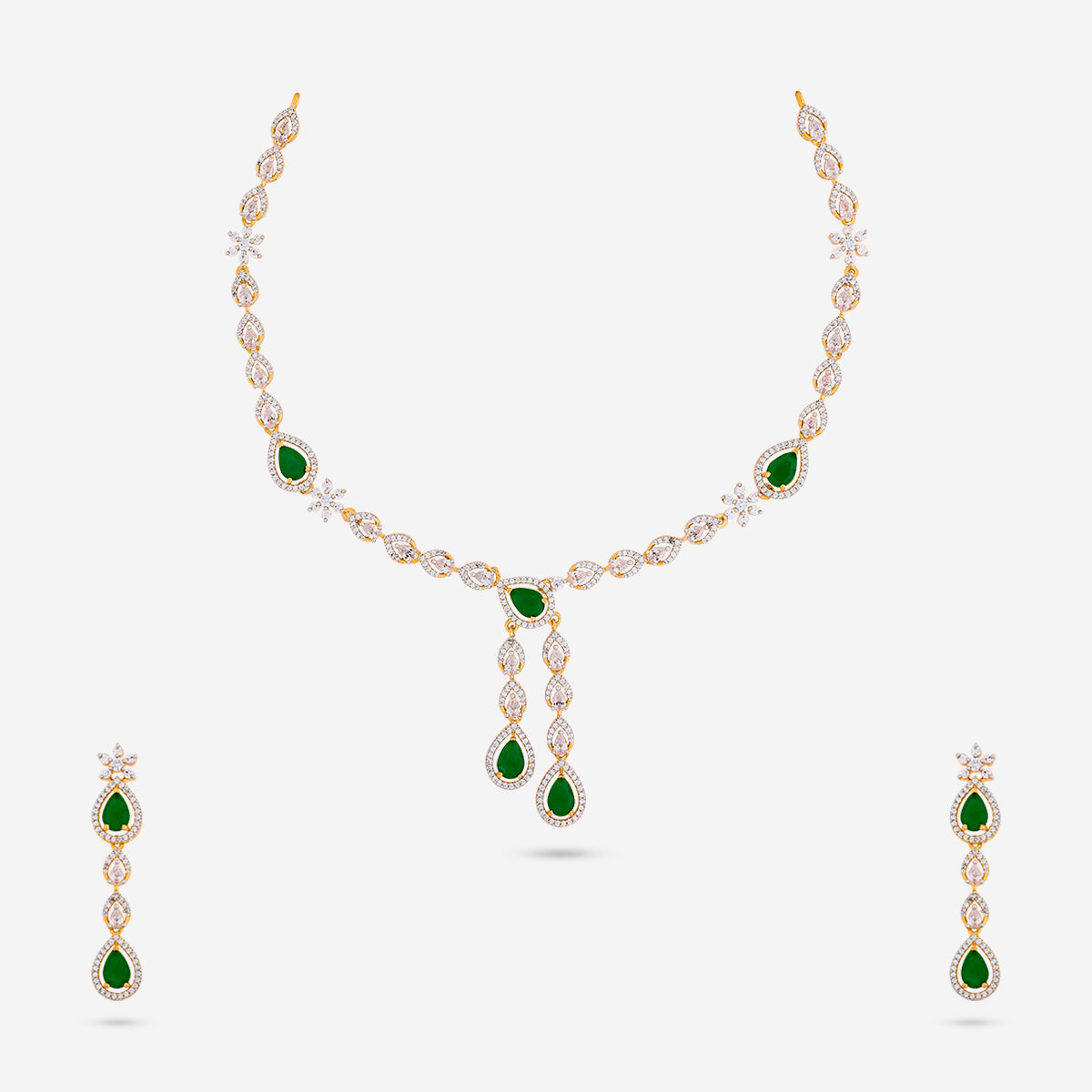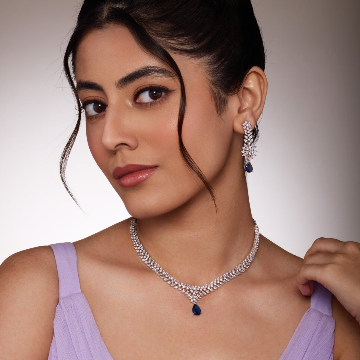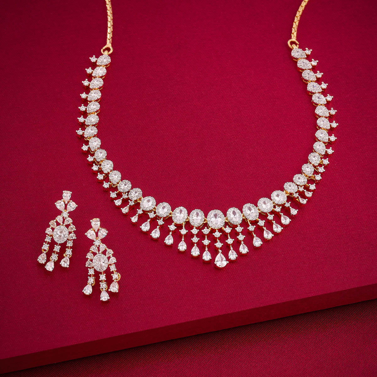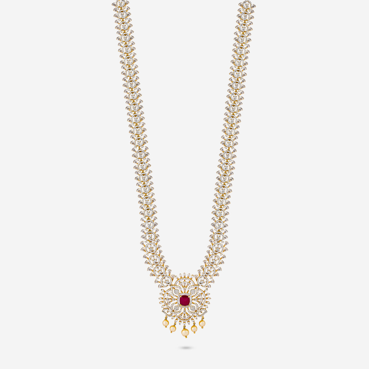 For those who adore grandeur, a zircon long necklace is the ultimate showstopper. These pieces gracefully elongate the neckline and add a luxurious layer of sparkle to your ensemble. Perfect for weddings, festive events, or traditional wear, a zircon long necklace pairs beautifully with both sarees and gowns.