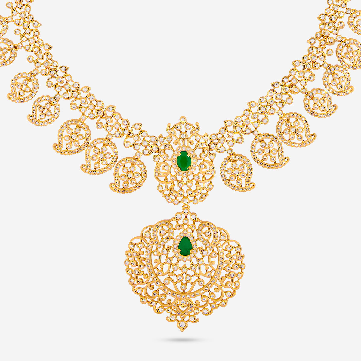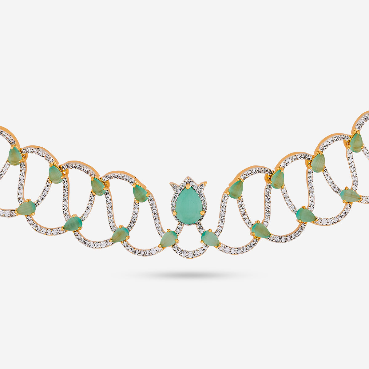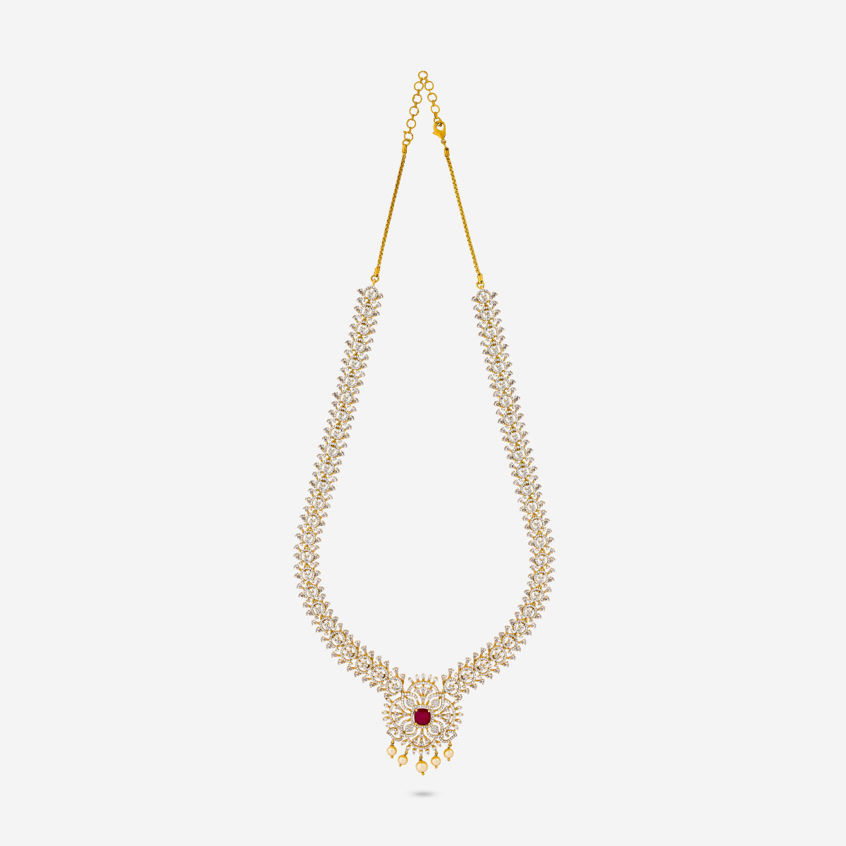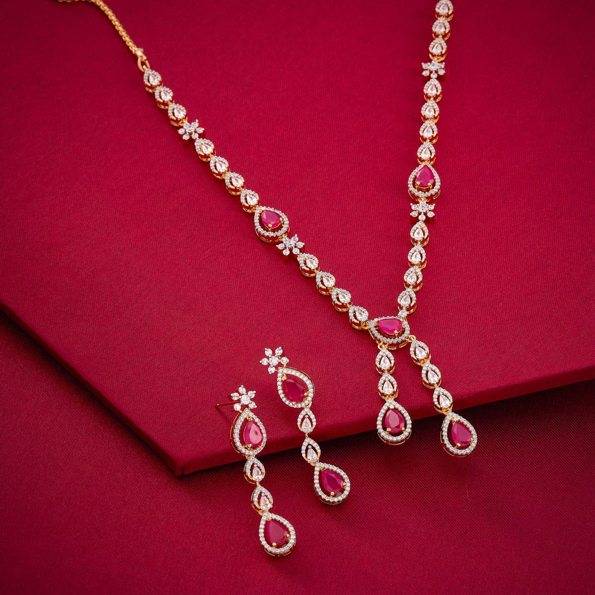 For those who adore grandeur, a zircon long necklace is the ultimate showstopper. These pieces gracefully elongate the neckline and add a luxurious layer of sparkle to your ensemble. Perfect for weddings, festive events, or traditional wear, a zircon long necklace pairs beautifully with both sarees and gowns.