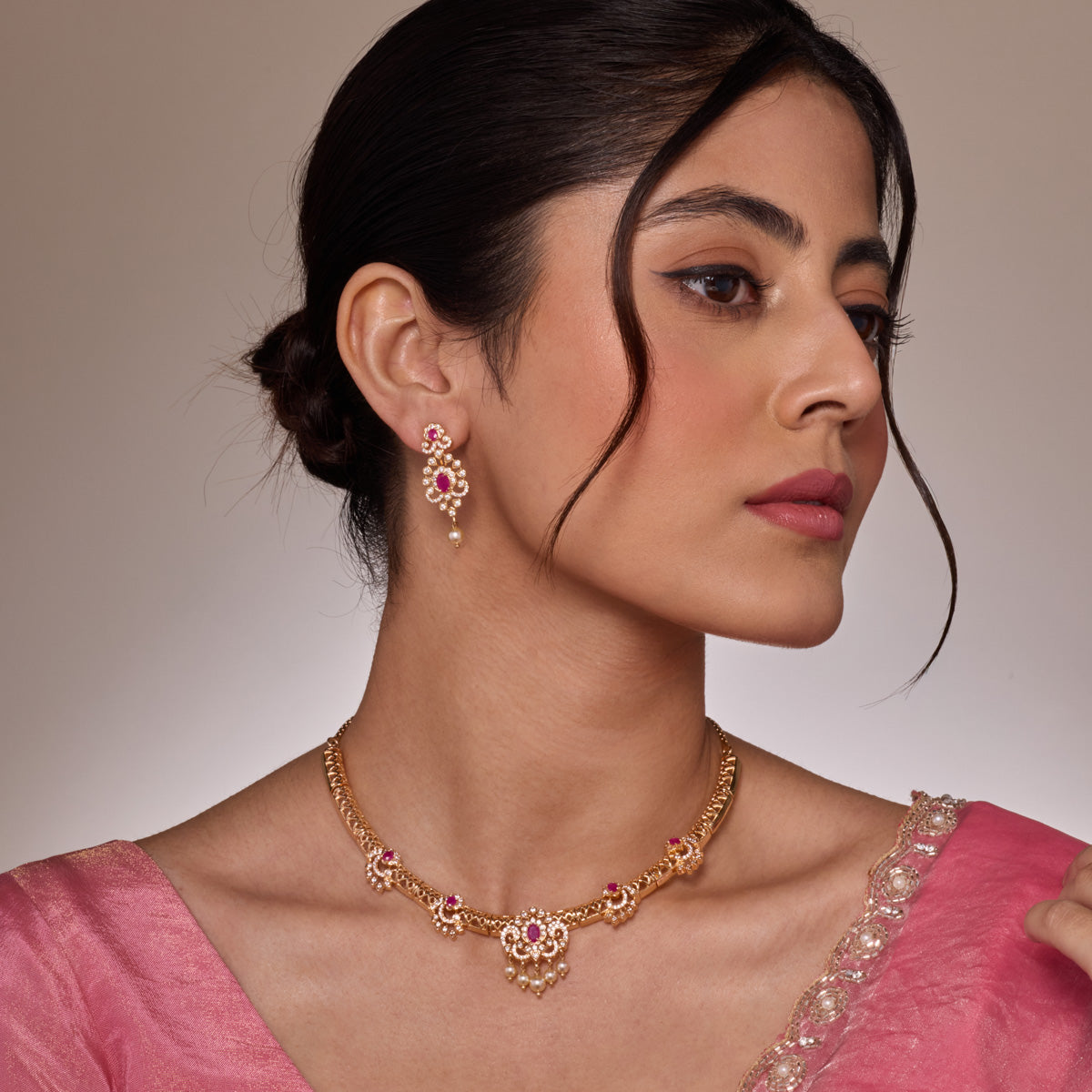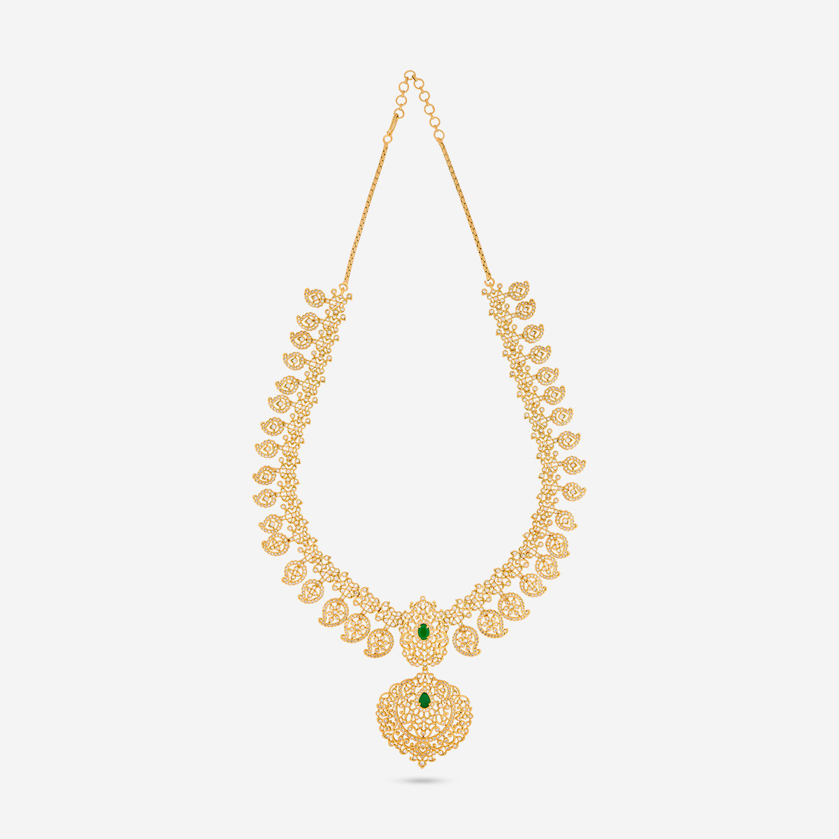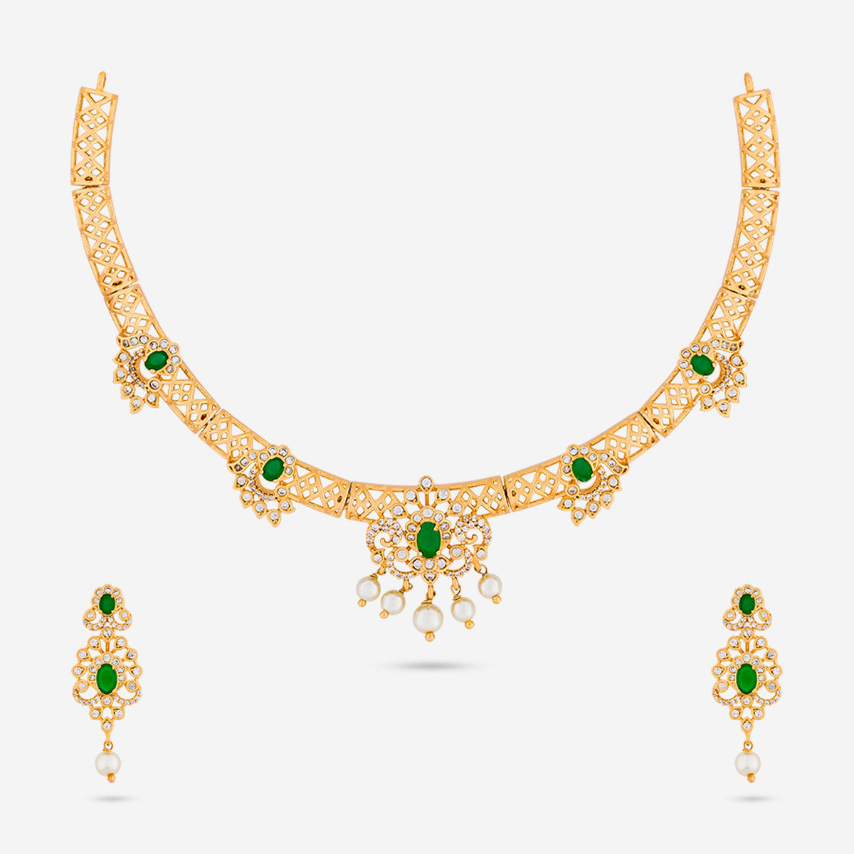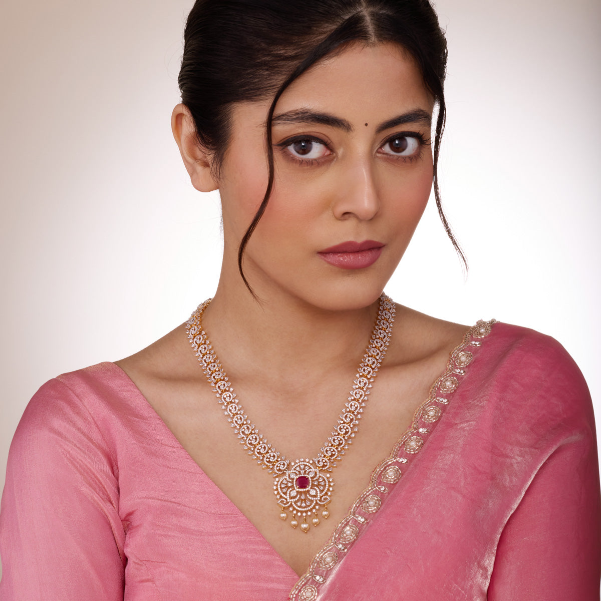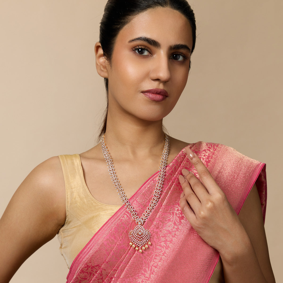 For those who adore grandeur, a zircon long necklace is the ultimate showstopper. These pieces gracefully elongate the neckline and add a luxurious layer of sparkle to your ensemble. Perfect for weddings, festive events, or traditional wear, a zircon long necklace pairs beautifully with both sarees and gowns.