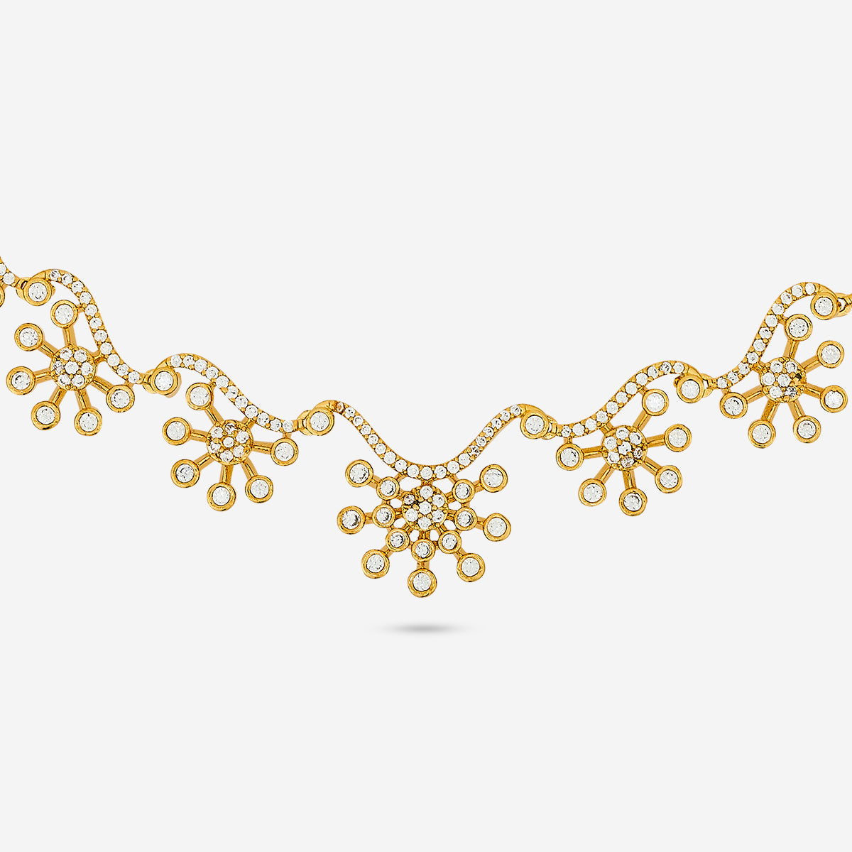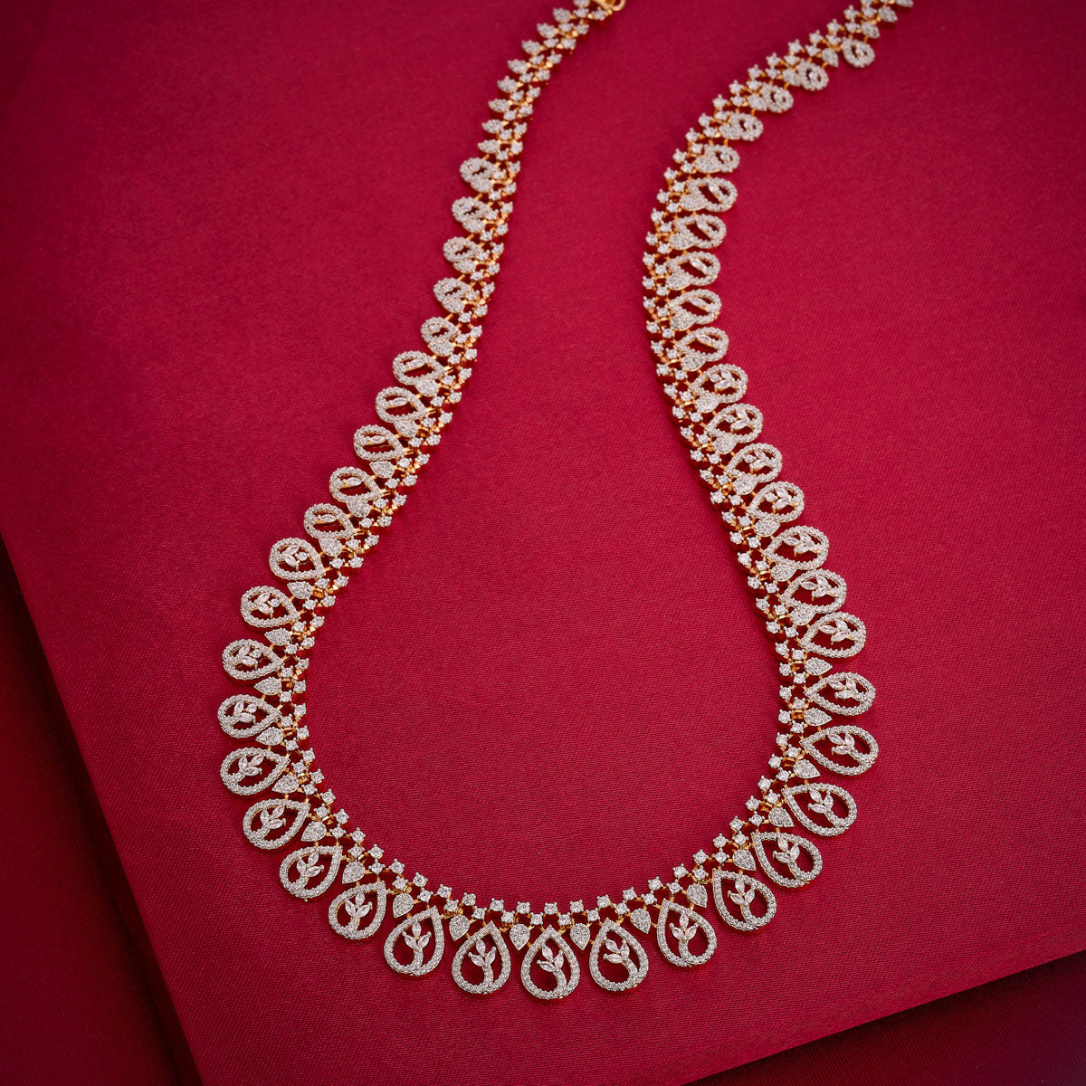 Our zircon long necklace designs come in a variety of patterns — from intricate floral arrangements to geometric marvels — ensuring there’s something for every aesthetic. The elegance of length combined with the brilliance of zircon makes these necklaces an indispensable part of any jewellery wardrobe.