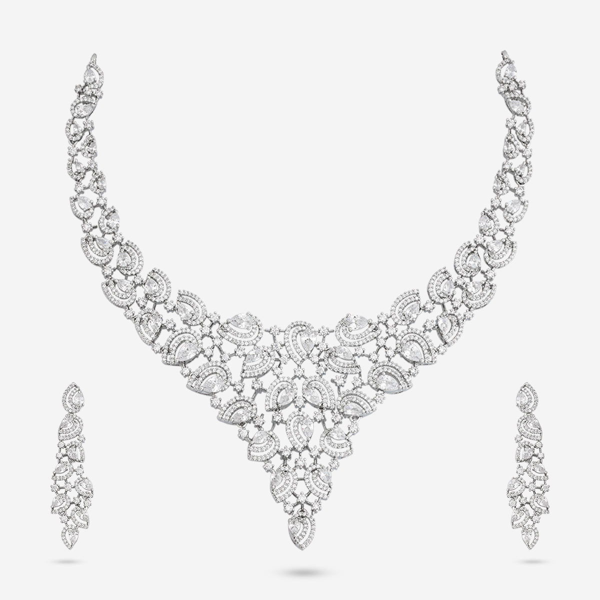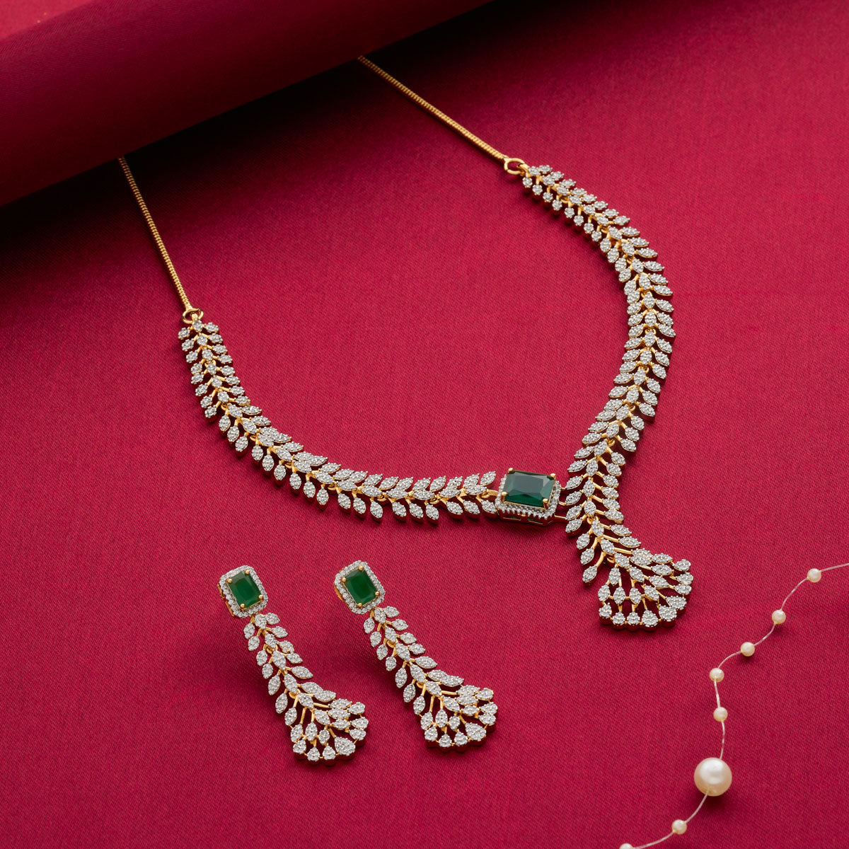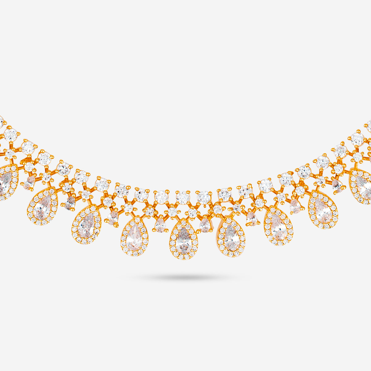 For those who adore grandeur, a zircon long necklace is the ultimate showstopper. These pieces gracefully elongate the neckline and add a luxurious layer of sparkle to your ensemble. Perfect for weddings, festive events, or traditional wear, a zircon long necklace pairs beautifully with both sarees and gowns.