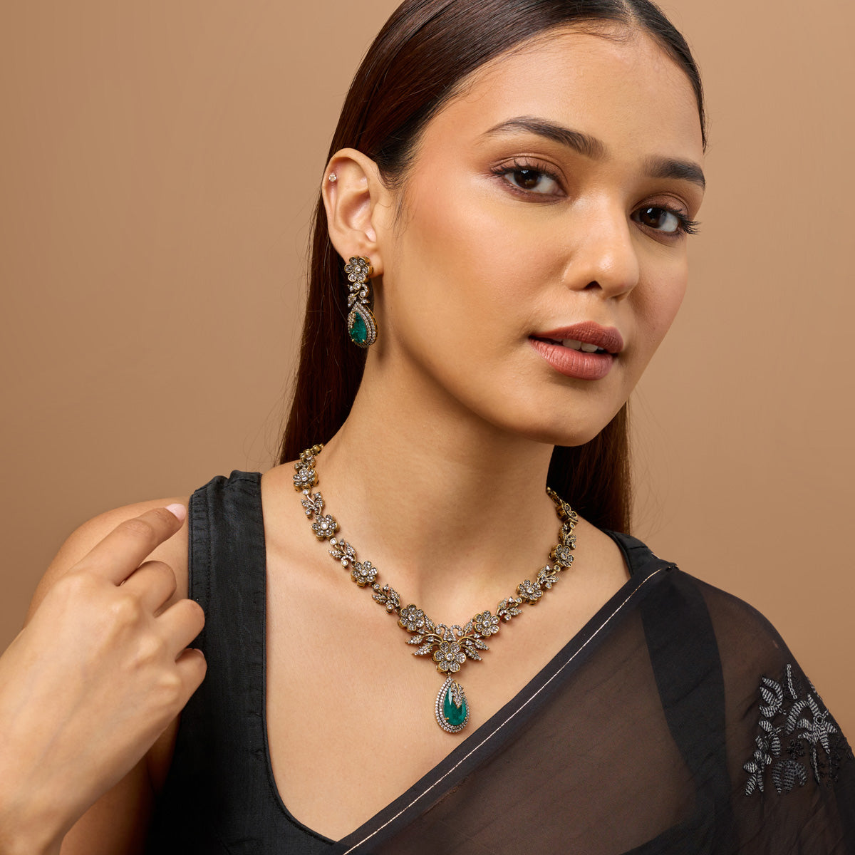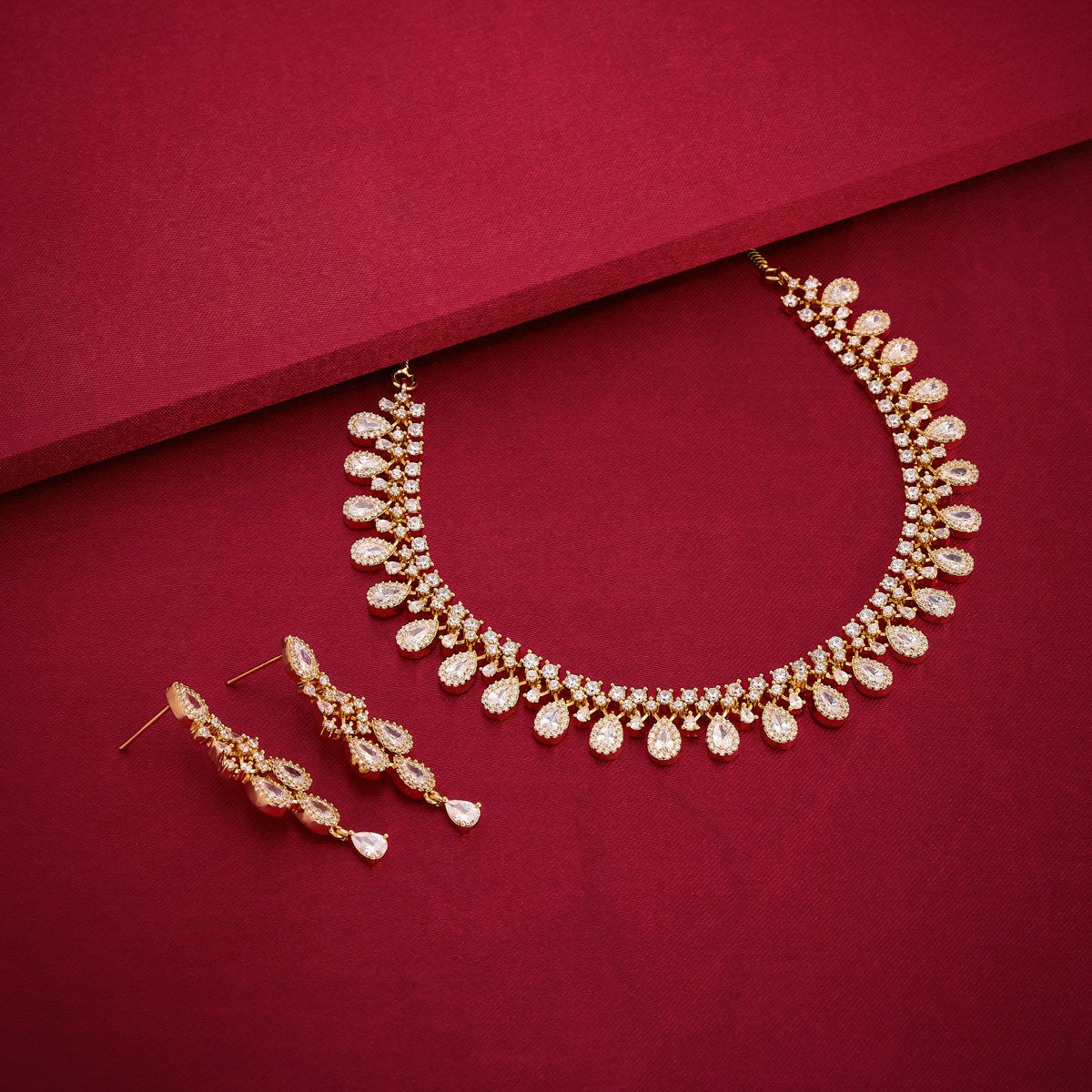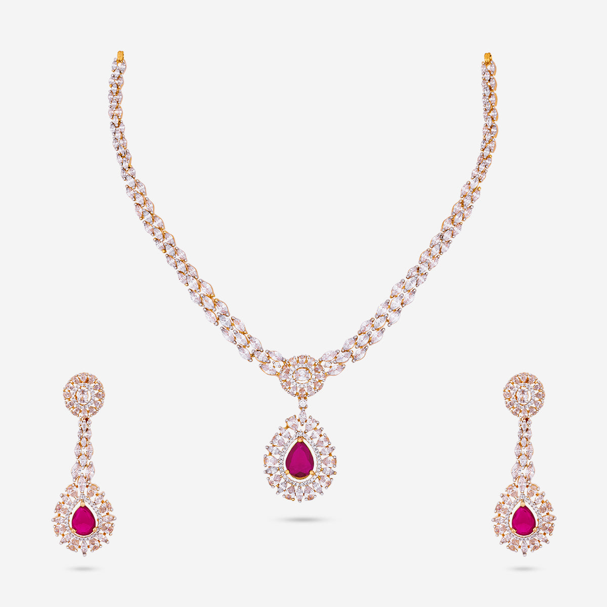 For those who adore grandeur, a zircon long necklace is the ultimate showstopper. These pieces gracefully elongate the neckline and add a luxurious layer of sparkle to your ensemble. Perfect for weddings, festive events, or traditional wear, a zircon long necklace pairs beautifully with both sarees and gowns.