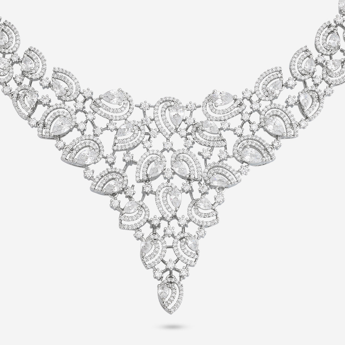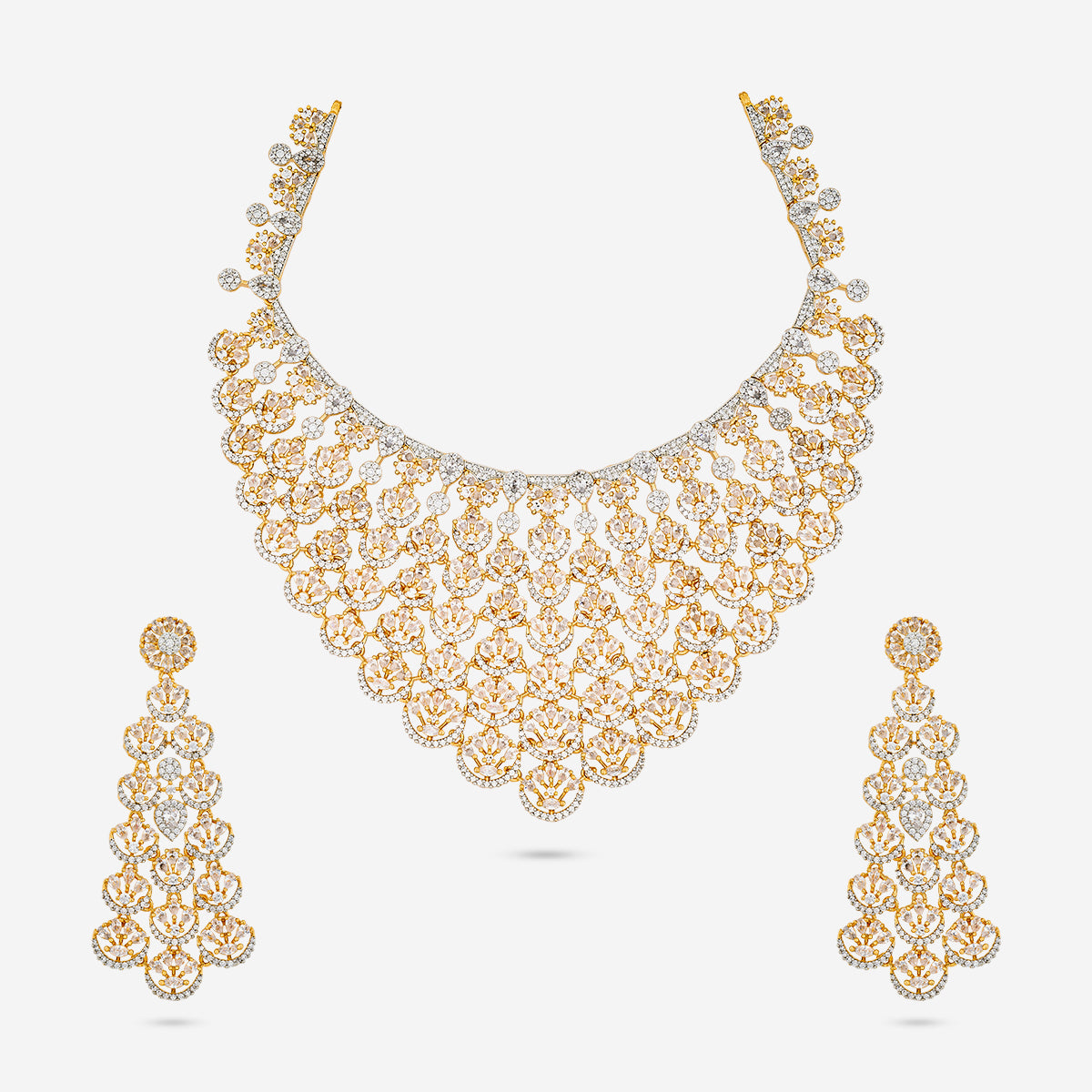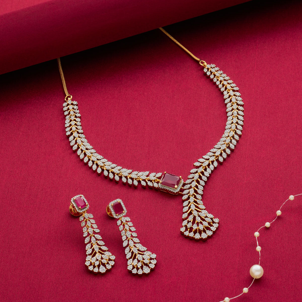 - For a bridal ensemble, go for elaborate zircon necklace designs that sparkle under the lights.