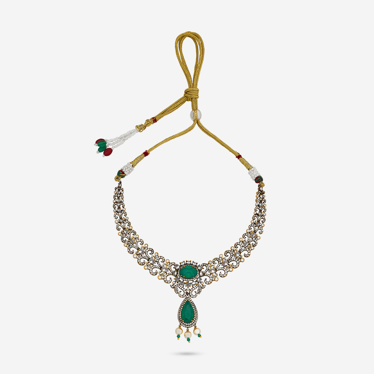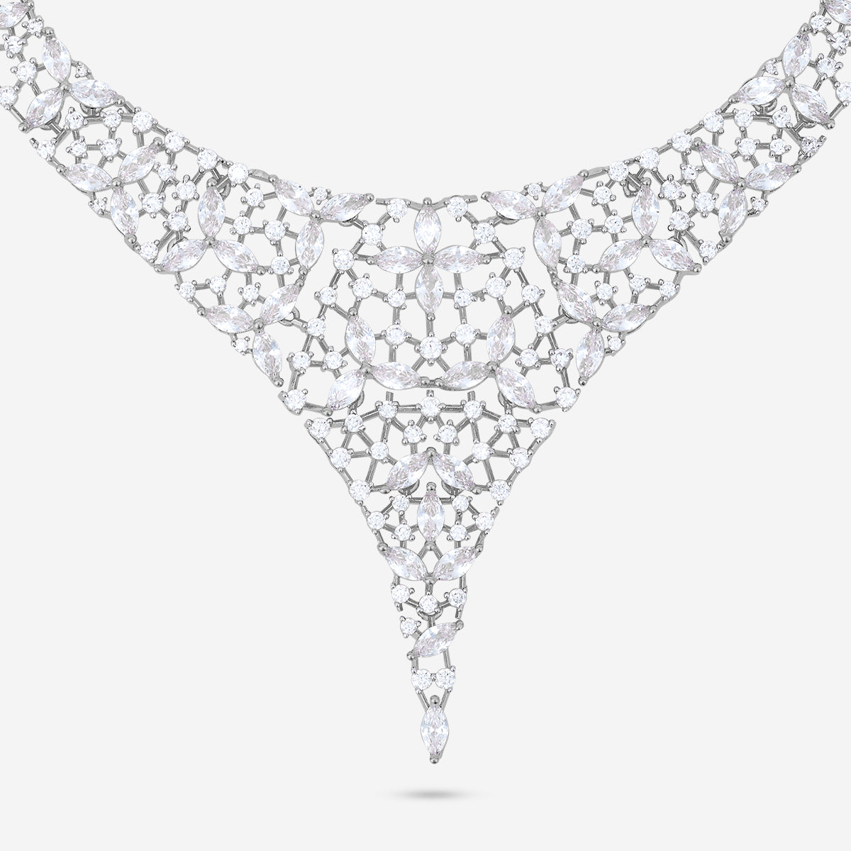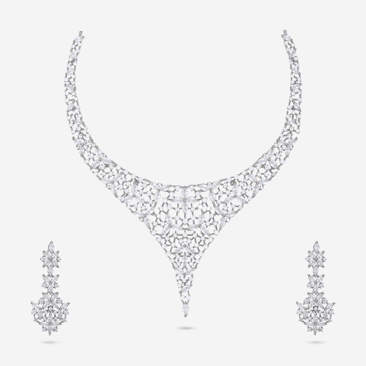 - For a bridal ensemble, go for elaborate zircon necklace designs that sparkle under the lights.