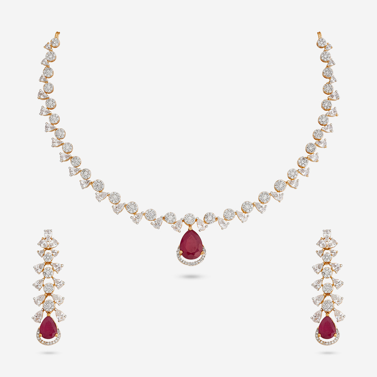- For a bridal ensemble, go for elaborate zircon necklace designs that sparkle under the lights.