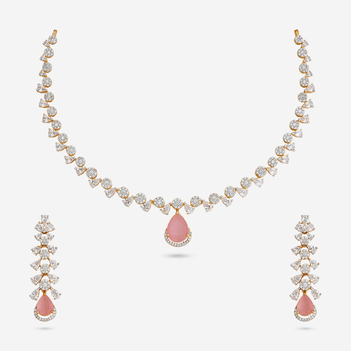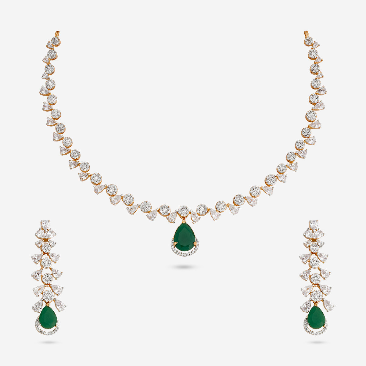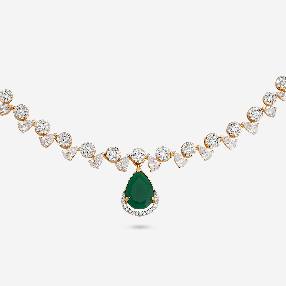 For those who adore grandeur, a zircon long necklace is the ultimate showstopper. These pieces gracefully elongate the neckline and add a luxurious layer of sparkle to your ensemble. Perfect for weddings, festive events, or traditional wear, a zircon long necklace pairs beautifully with both sarees and gowns.