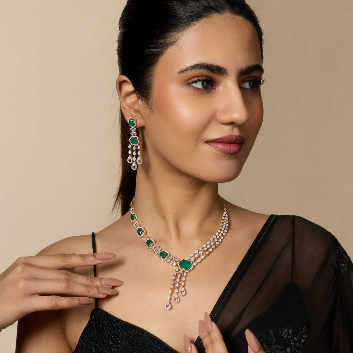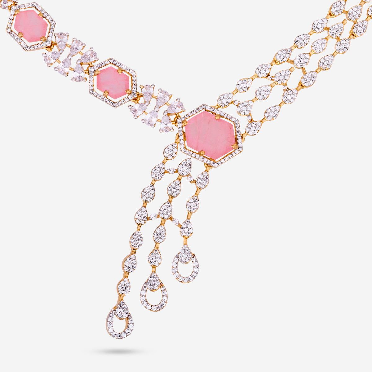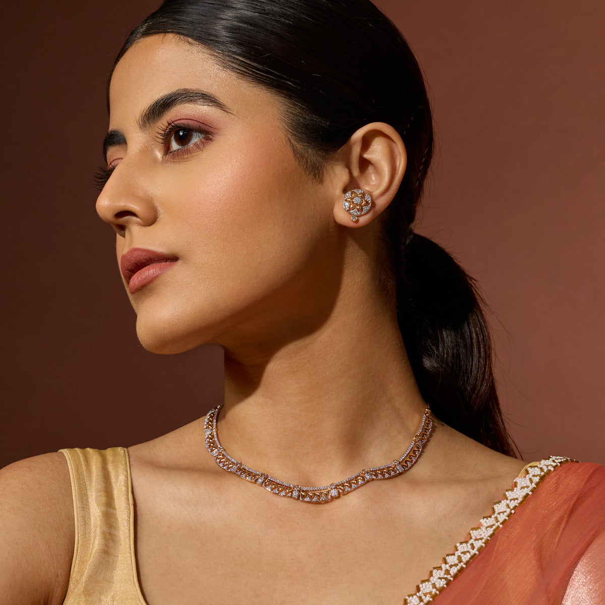 For those who adore grandeur, a zircon long necklace is the ultimate showstopper. These pieces gracefully elongate the neckline and add a luxurious layer of sparkle to your ensemble. Perfect for weddings, festive events, or traditional wear, a zircon long necklace pairs beautifully with both sarees and gowns.