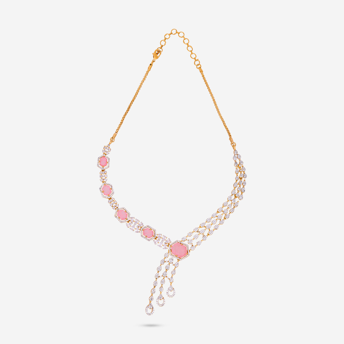 Our zircon long necklace designs come in a variety of patterns — from intricate floral arrangements to geometric marvels — ensuring there’s something for every aesthetic. The elegance of length combined with the brilliance of zircon makes these necklaces an indispensable part of any jewellery wardrobe.
