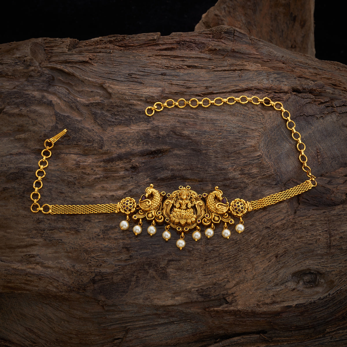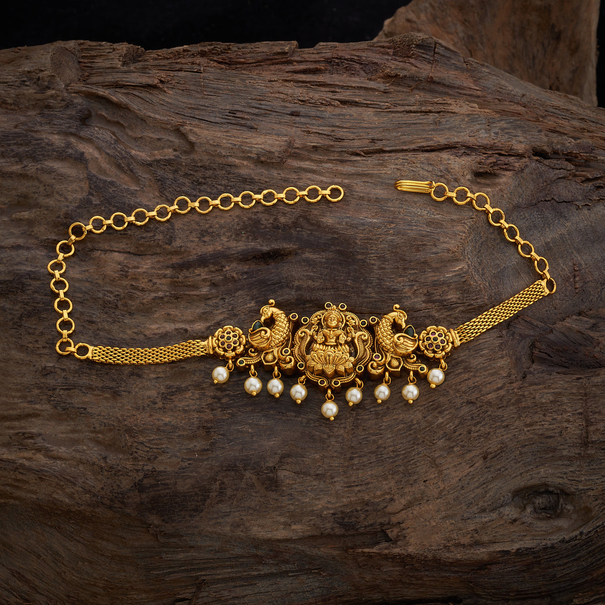 Add a royal look to your outfit with our antique bajuband. Polished in gold, this beautiful piece of jewellery features a Goddess Lakshmi motif and is available in ruby and ruby-green hues to choose from. It leaves a lasting impression and can be paired with any outfit, making it unique.