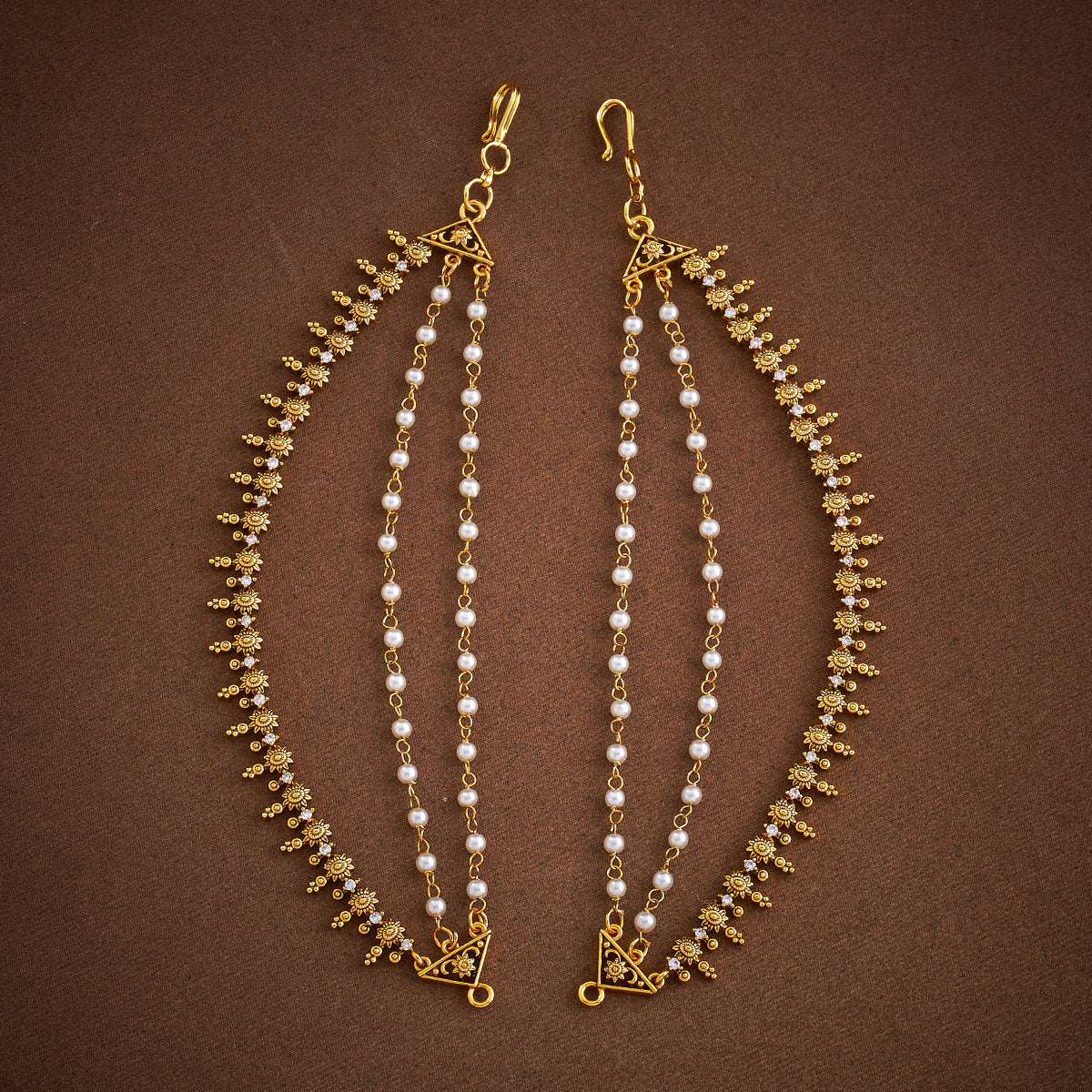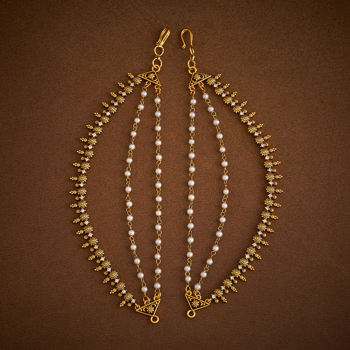 This enchanting antique matil is the perfect statement piece to elevate your traditional look! Adorned with white-coloured stones and a luxe gold polish, this matil can be best paired with ethnic outfits. The pair of matils is embellished with synthetic stones and beads. Its sturdy copper alloy base makes it a durable choice.