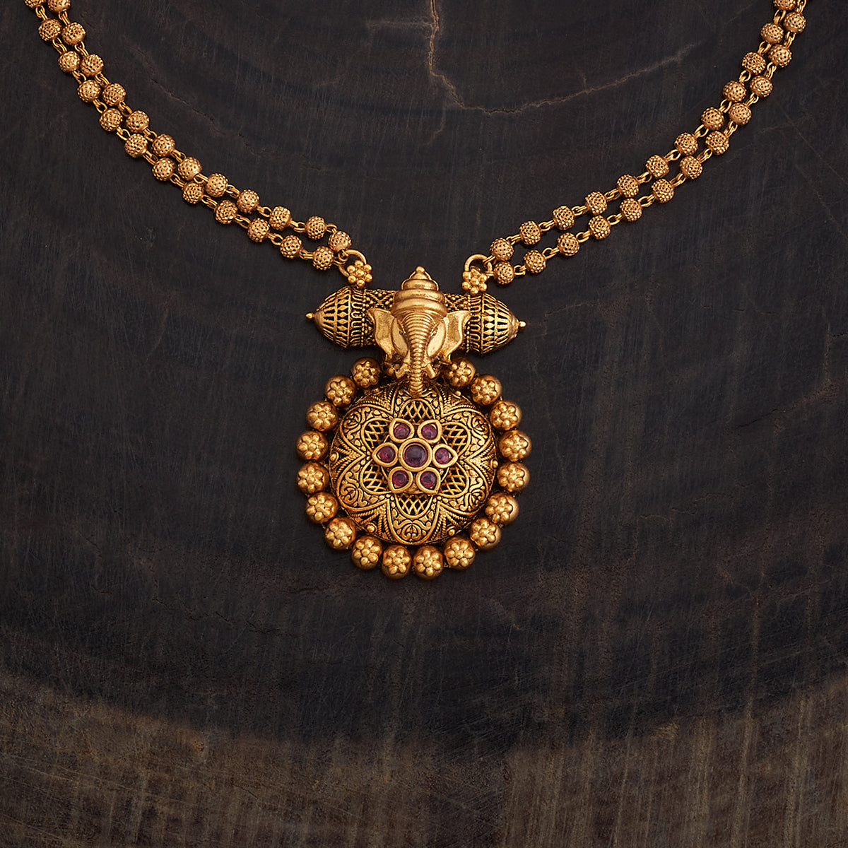 Elevate your traditional outfit with our antique necklace, a stunning piece that exudes vintage charm and timeless elegance. Crafted with intricate details and adorned with antique motifs, this gold-polished necklace adds a touch of sophistication to any outfit. Whether worn for weddings, parties, or special occasions, the ruby stones are sure to make a statement and captivate attention.