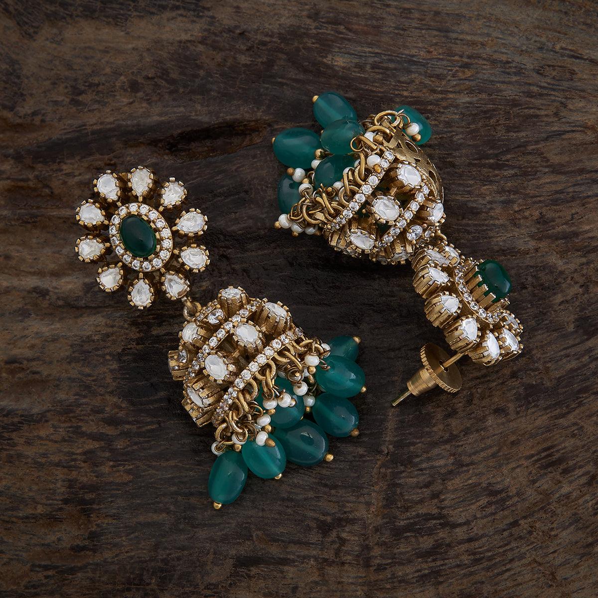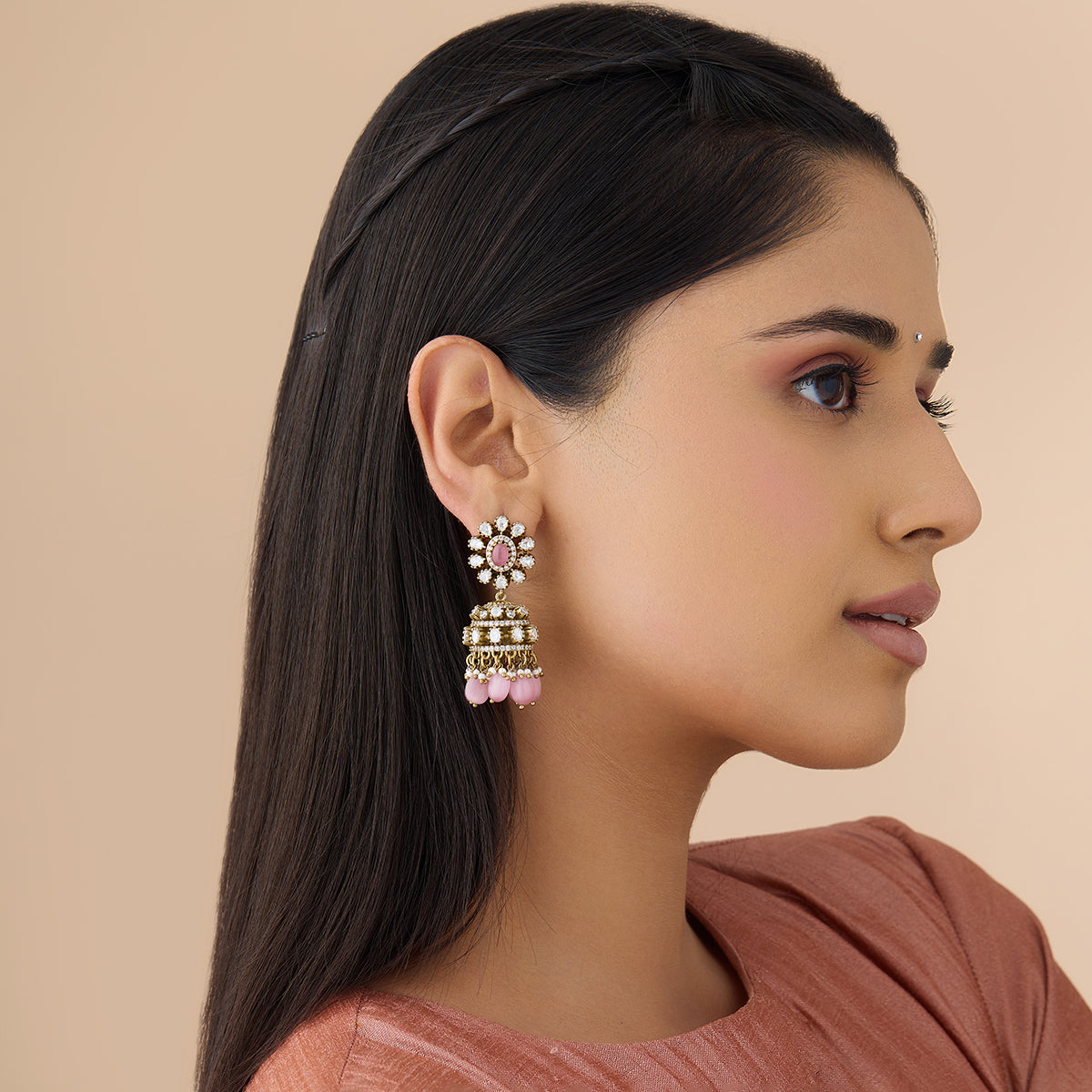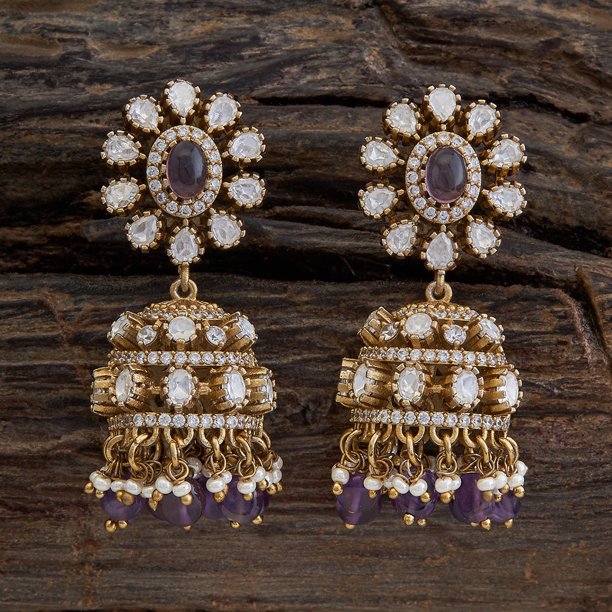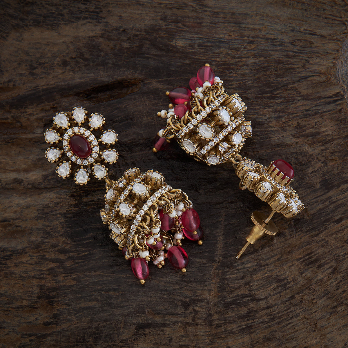 Amp up your style with Kushal�s Fashion Jewellery Kundan earrings! Featuring five stone colour options at the centre, surrounded by dazzling white zircon stones and white beads, these jhumkas perfectly complement your Indian outfit. Turn heads and dazzle with every move!