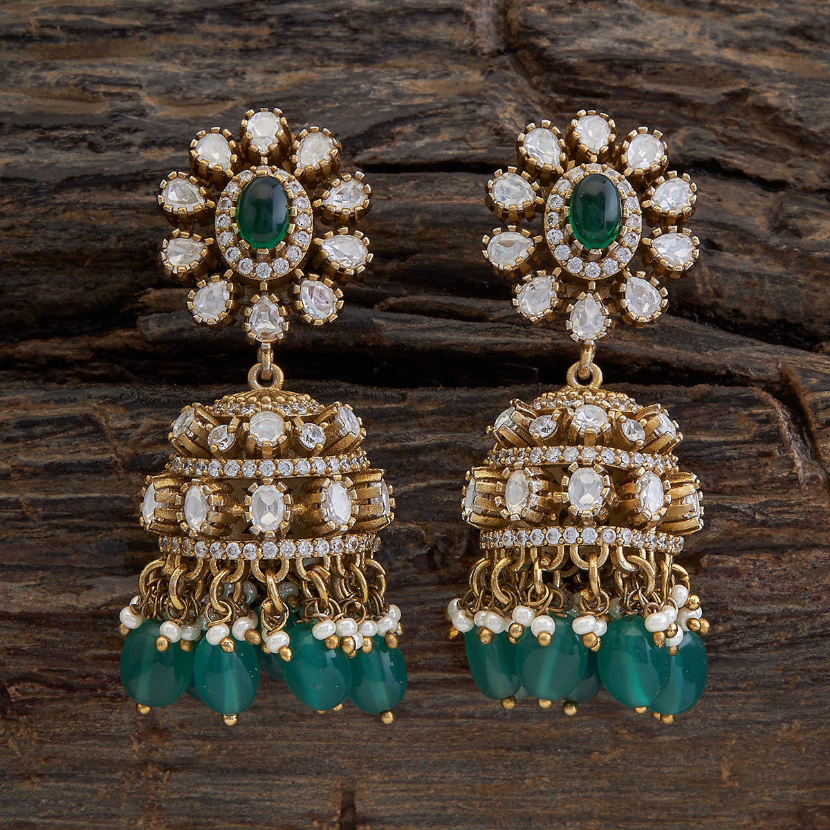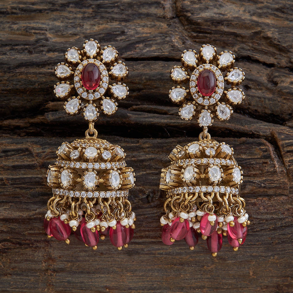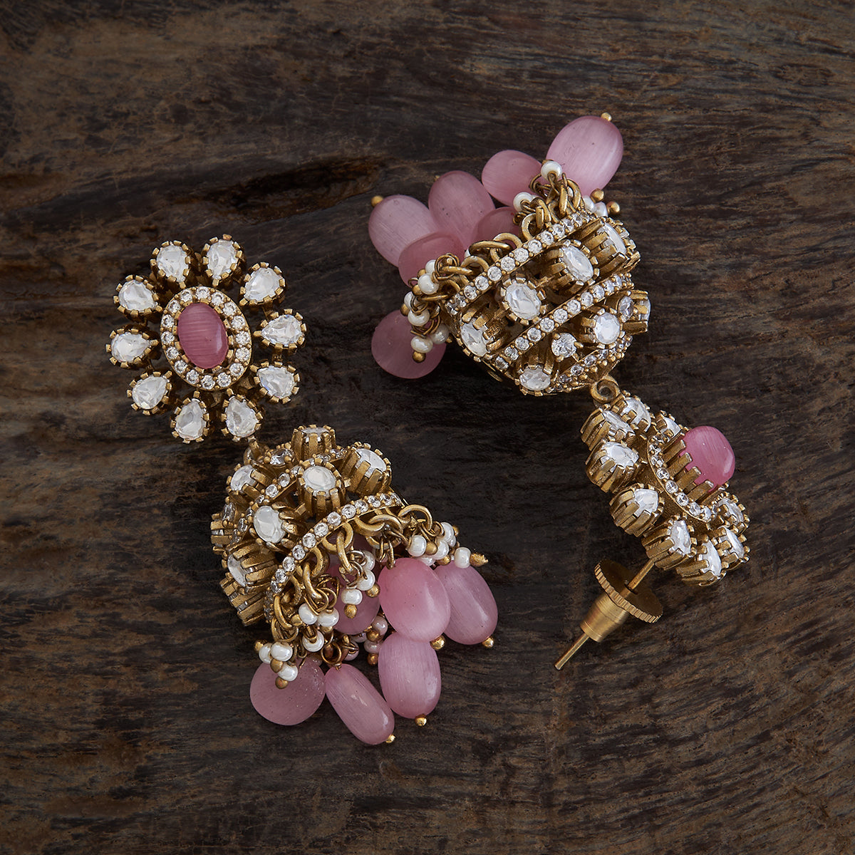 Amp up your style with Kushal�s Fashion Jewellery Kundan earrings! Featuring five stone colour options at the centre, surrounded by dazzling white zircon stones and white beads, these jhumkas perfectly complement your Indian outfit. Turn heads and dazzle with every move!