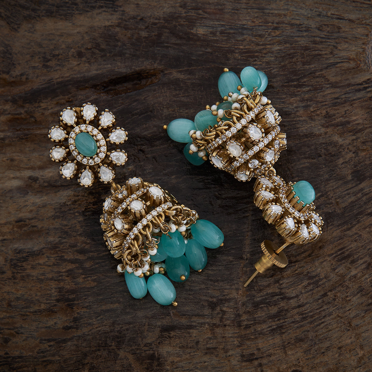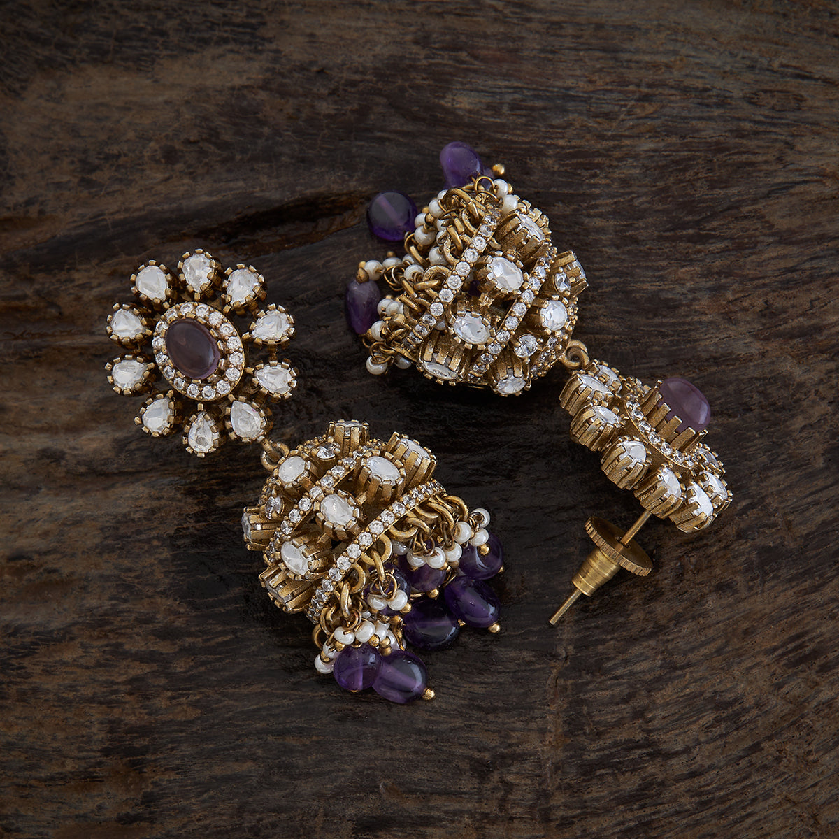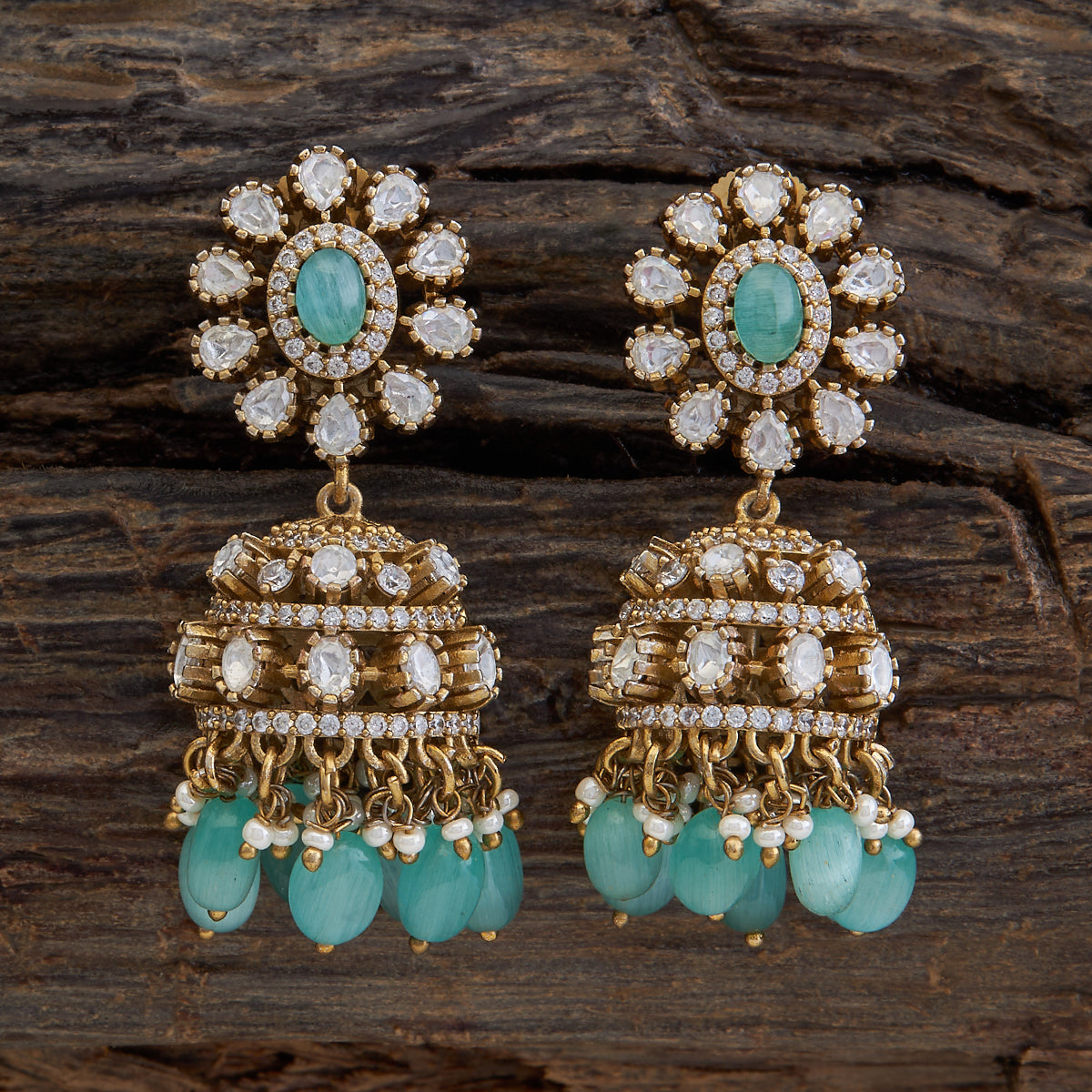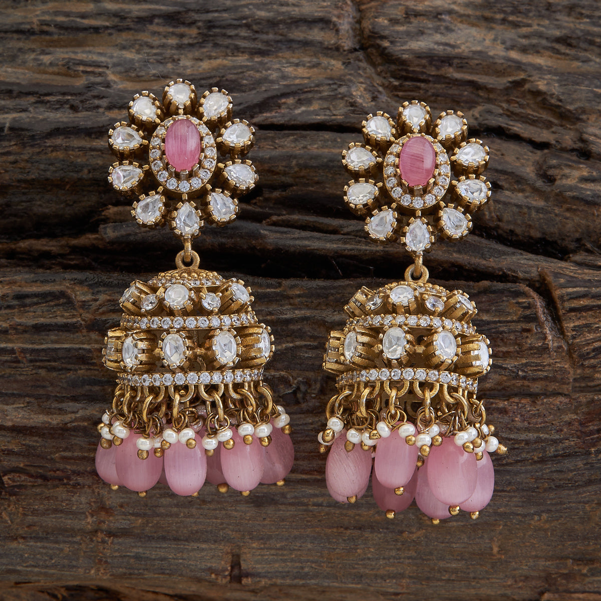 Amp up your style with Kushal�s Fashion Jewellery Kundan earrings! Featuring five stone colour options at the centre, surrounded by dazzling white zircon stones and white beads, these jhumkas perfectly complement your Indian outfit. Turn heads and dazzle with every move!