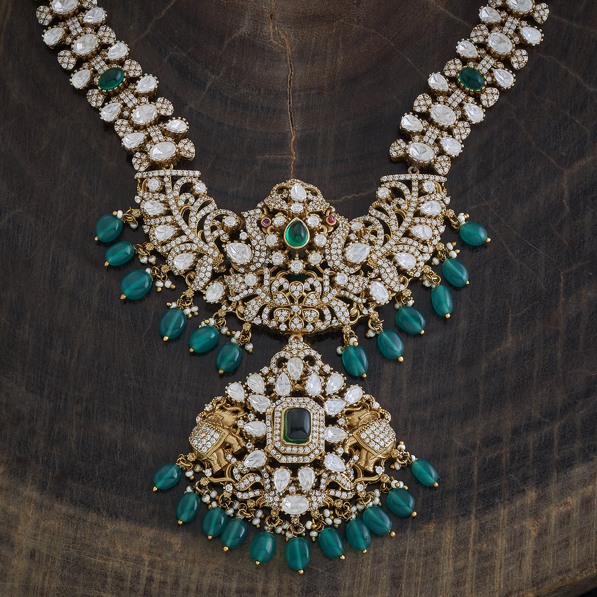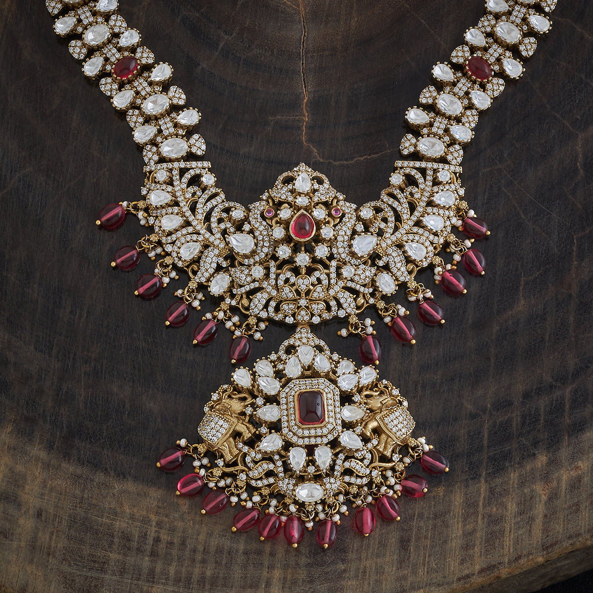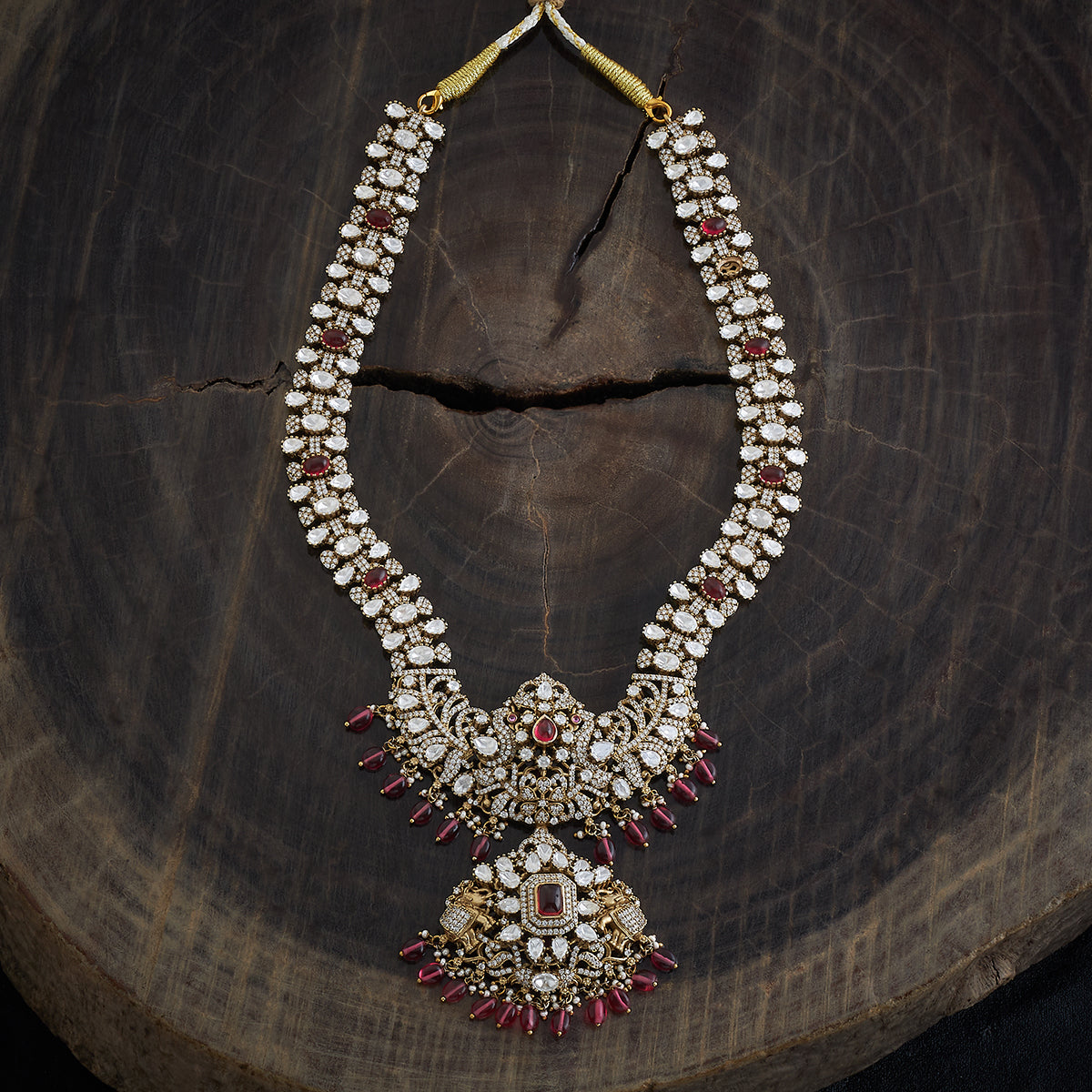 Subtle yet stylish, Kushal's kundan necklace is here to grace your neckline with its radiant charm. Crafted from copper alloy, this beautiful necklace is available in ruby or green hue to choose from and features shimmering kundan stones set on a regal Victorian finish that is sure to steal the spotlight.